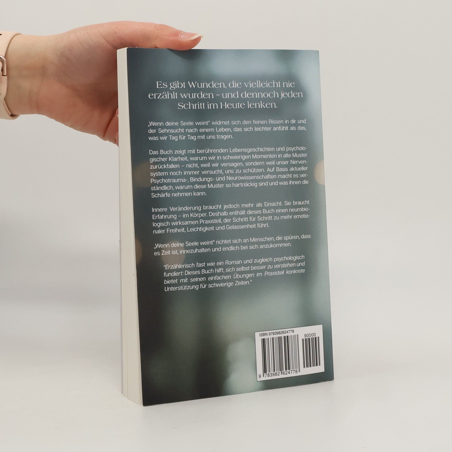 Es gibt Wunden, die vielleicht nie erzählt wurden – und dennoch jeden Schritt im Heute lenken. „Wenn deine Seele weint“ widmet sich den feinen Rissen in dir und der Sehnsucht nach einem Leben, das sich leichter anfühlt als das, was wir Tag für Tag mit uns tragen. Das Buch zeigt mit berührenden Lebensgeschichten und psychologischer Klarheit, warum wir in schwierigen Momenten in alte Muster zurückfallen – nicht, weil wir versagen, sondern weil unser Nervensystem noch immer versucht, uns zu schützen. Auf Basis aktueller Psychotrauma-, Bindungs- und Neurowissenschaften macht es verständlich, warum diese Muster so hartnäckig sind und was ihnen die Schärfe nehmen kann. Innere Veränderung braucht jedoch mehr als Einsicht. Sie braucht Erfahrung – im Körper. Deshalb enthält dieses Buch einen neurobiologisch wirksamen Praxisteil, der Schritt für Schritt zu mehr emotionaler Freiheit, Leichtigkeit und Gelassenheit führt. „Wenn deine Seele weint“ richtet sich an Menschen, die spüren, dass es Zeit ist, innezuhalten und endlich bei sich anzukommen. Erzählerisch fast wie ein Roman und zugleich psychologisch fundiert: Dieses Buch hilft, sich selbst besser zu verstehen und bietet mit seinen einfachen Übungen im Praxisteil konkrete Unterstützung für schwierige Zeiten.