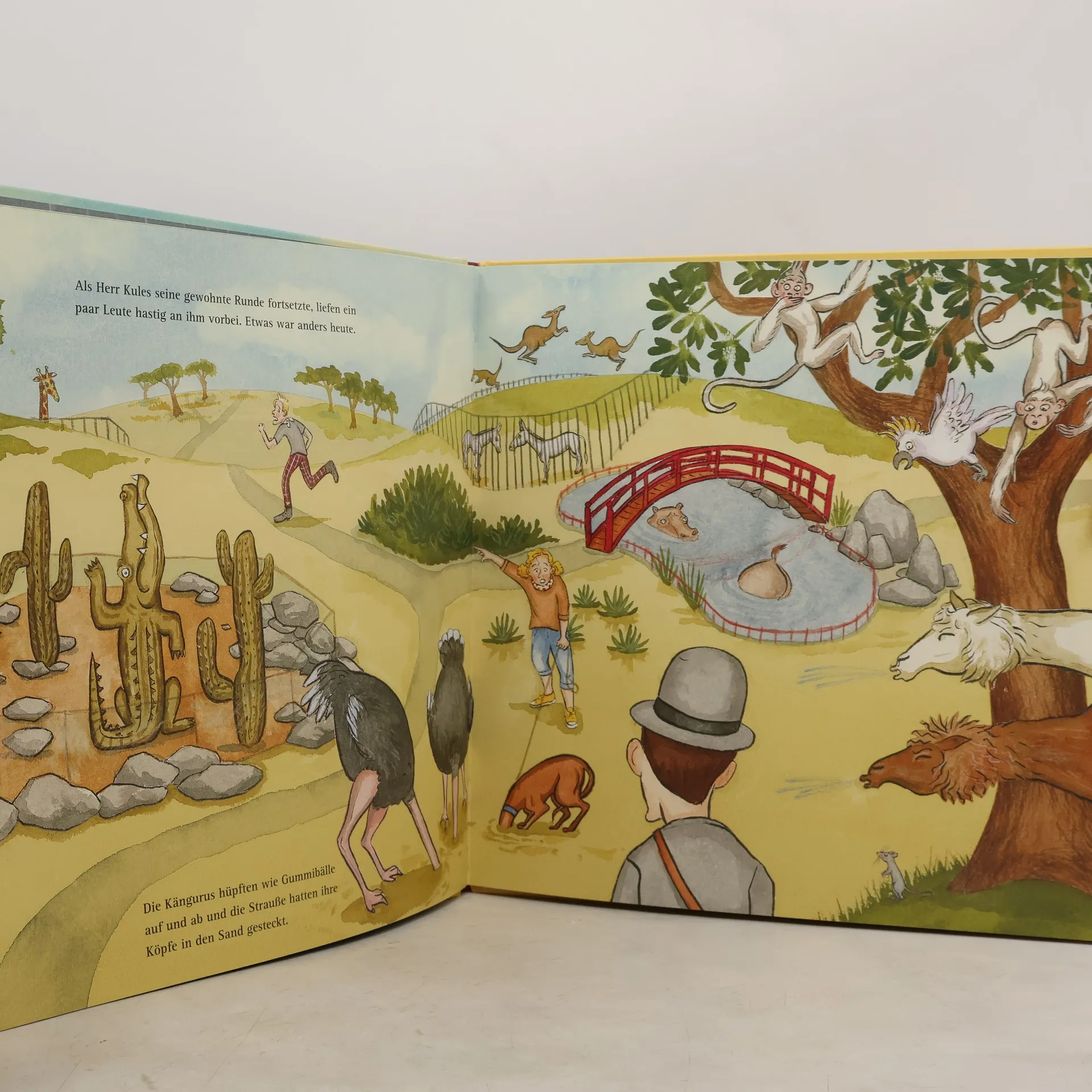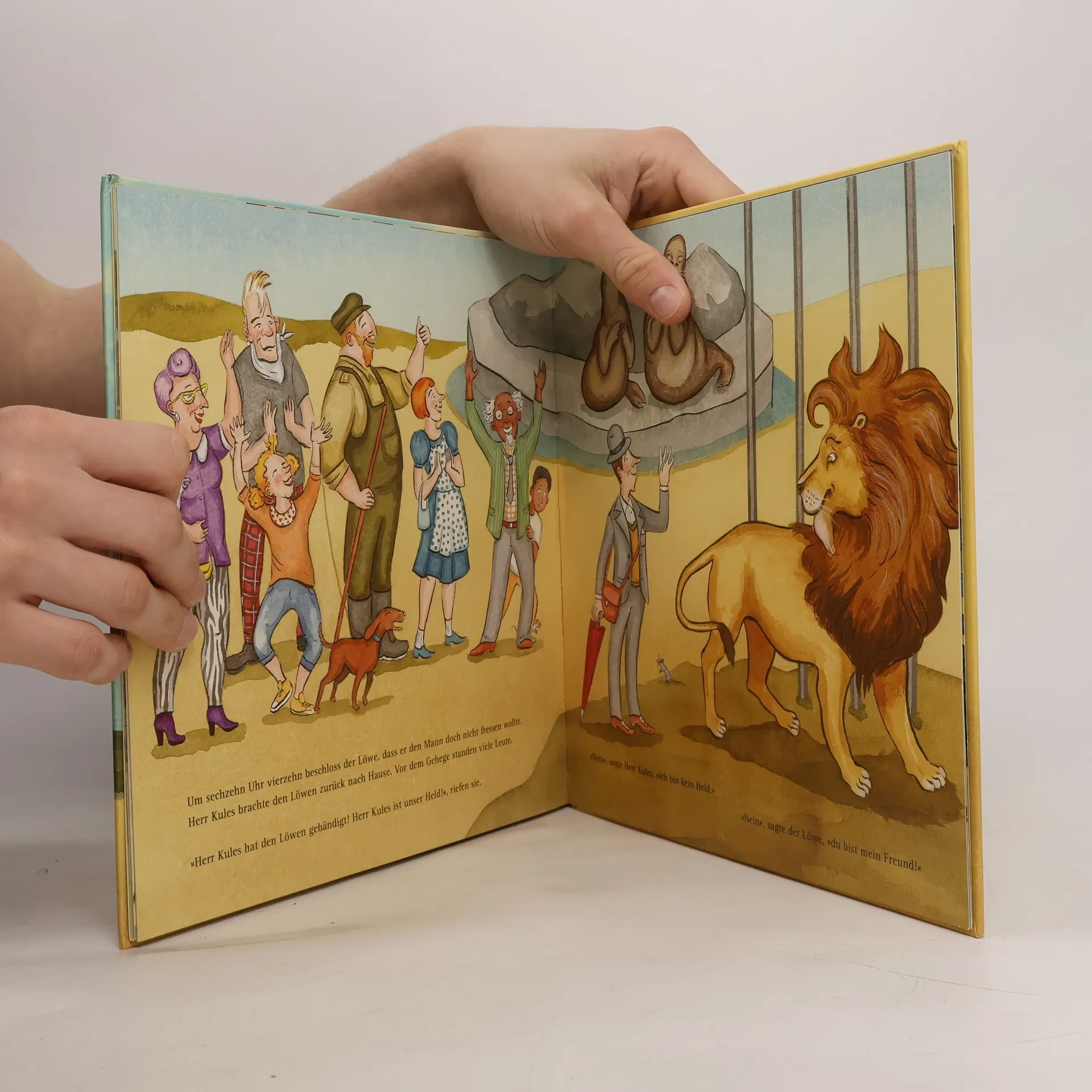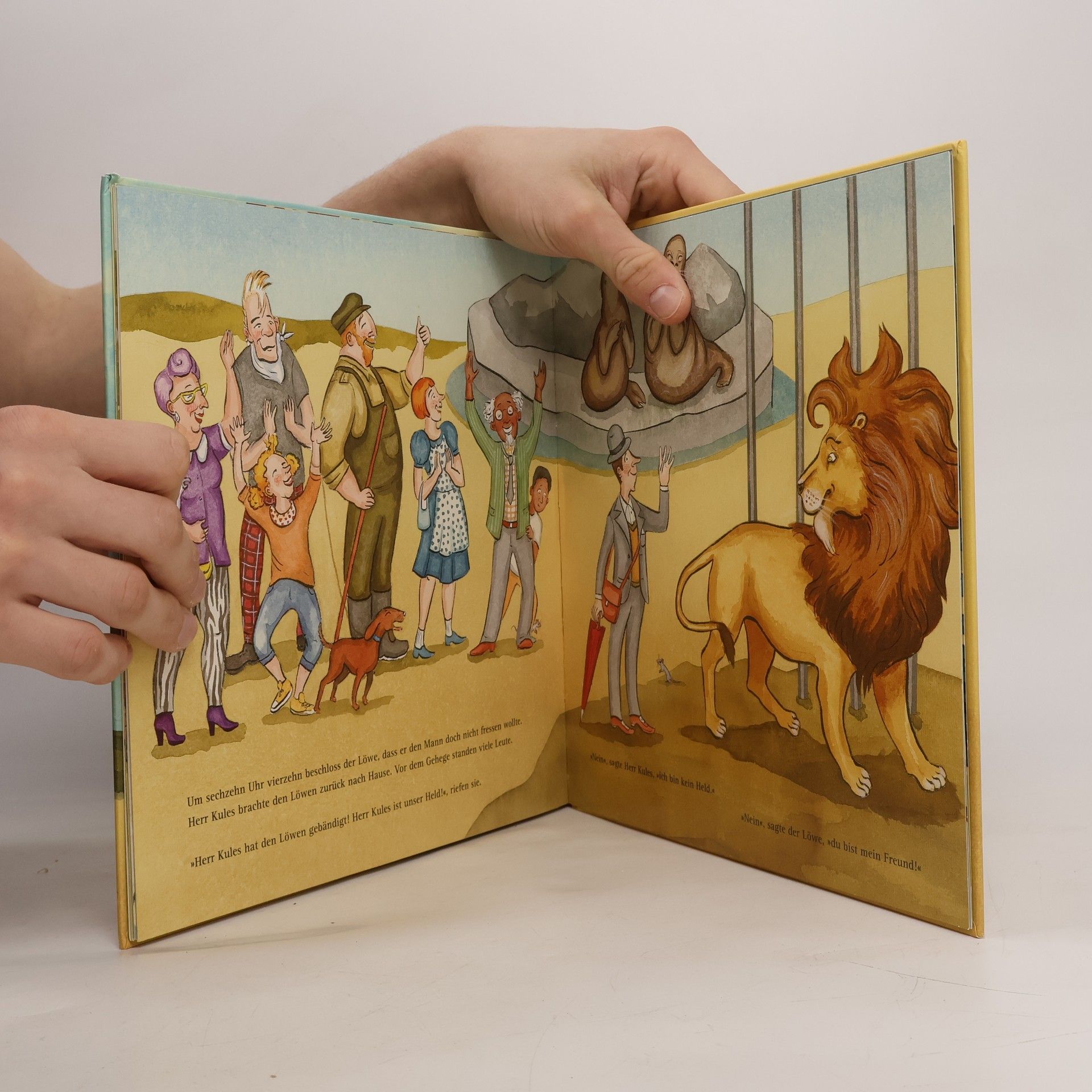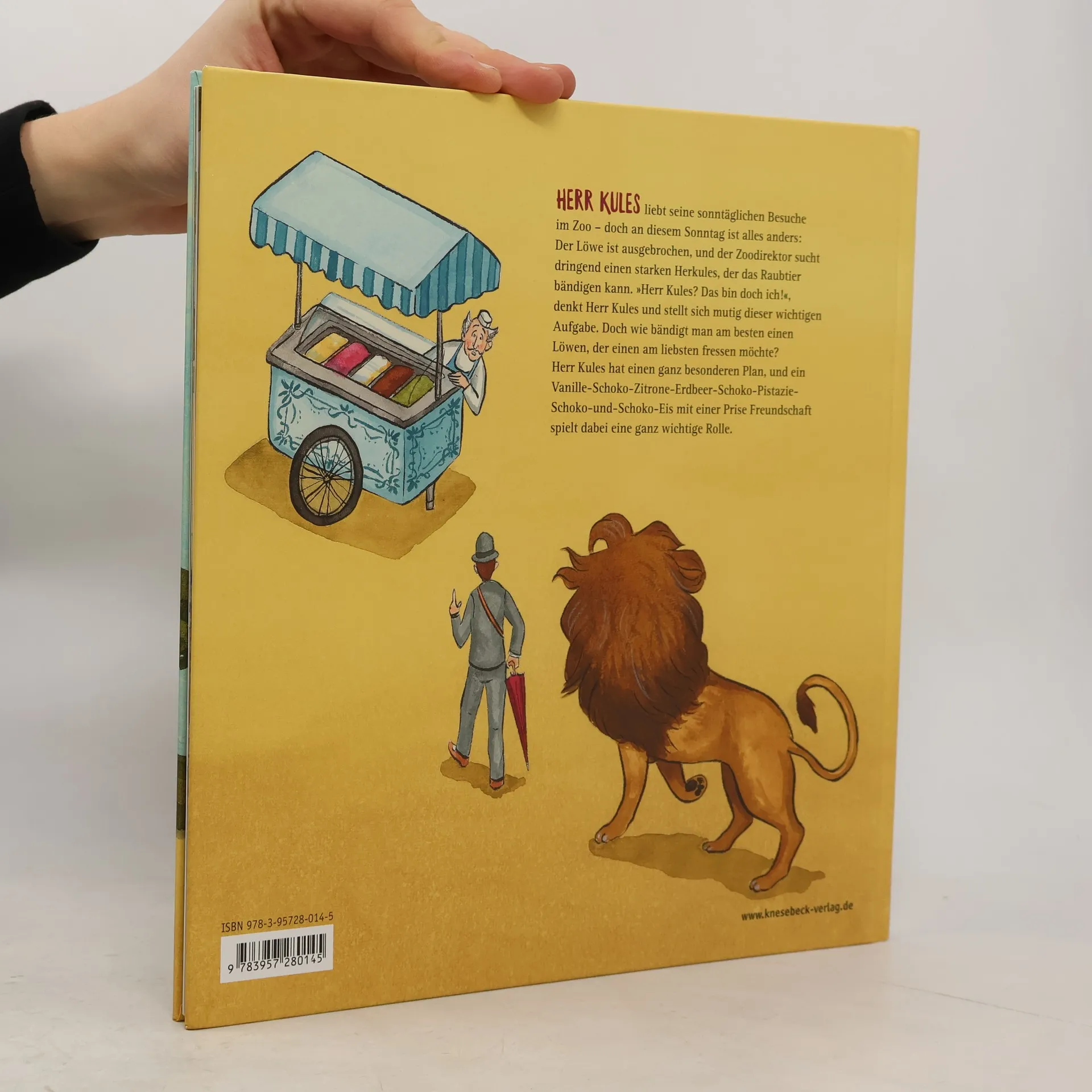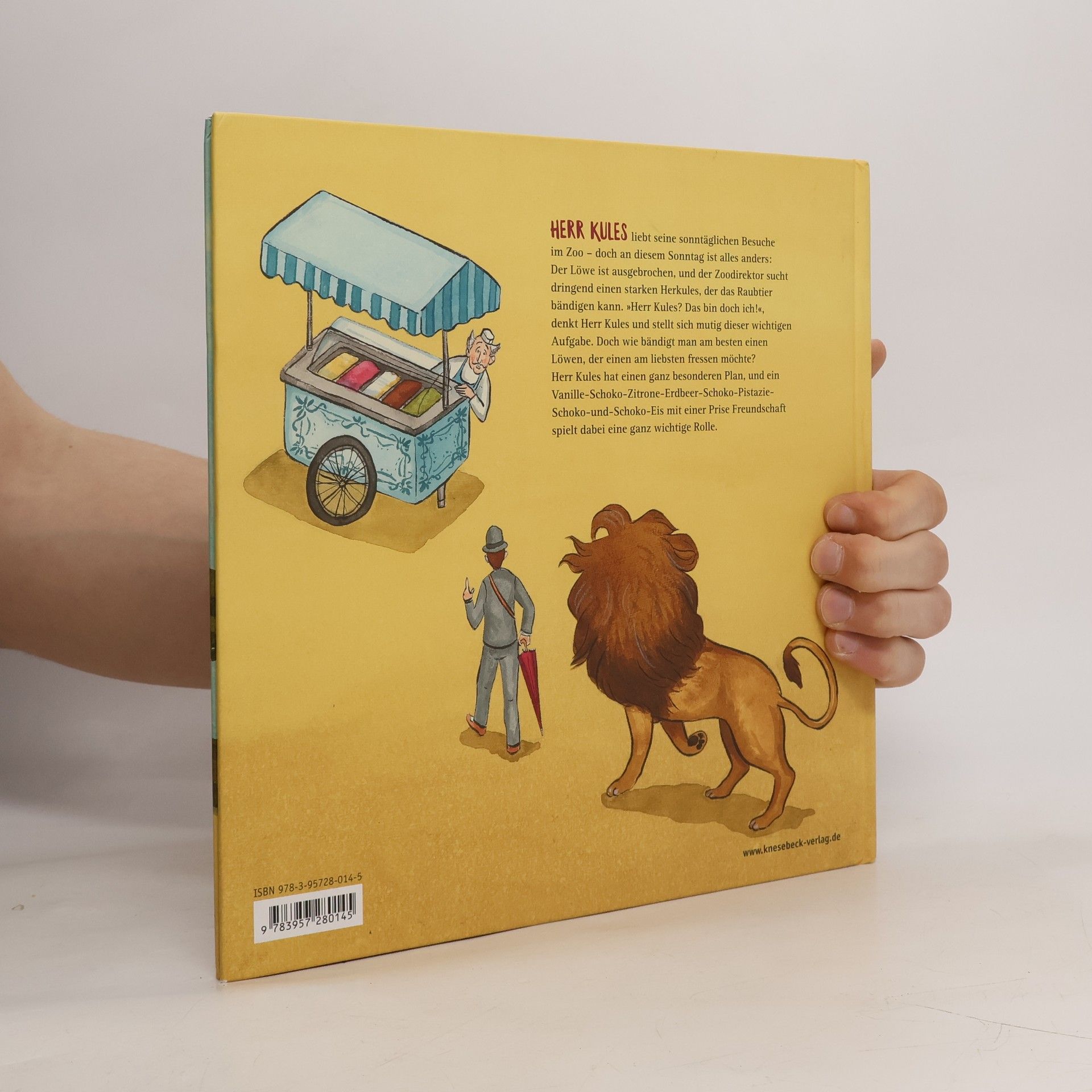 Herr Kules führt ein sehr geordnetes Leben, und sonntags geht er stets in den Zoo. Doch an diesem Sonntag ist alles anders: Der Löwe ist ausgebrochen, und der Zoodirektor braucht dringend einen starken Herkules, der das Raubtier bändigen kann. „Herr Kules? Das bin doch ich“, denkt Herr Kules und stellt sich mutig dieser wichtigen Aufgabe. Doch der Löwe möchte sich so gar nicht bändigen lassen. Viel lieber würde er Herrn Kules verspeisen – oder vielleicht doch eher ein Vanille-Schoko-Zitrone-Erdbeer-Schoko-Pistazie-Schoko-und-Schoko-Eis? Ein wunderschön illustriertes Bilderbuch über einen stillen Helden, in dem ungeahnte Kräfte stecken.