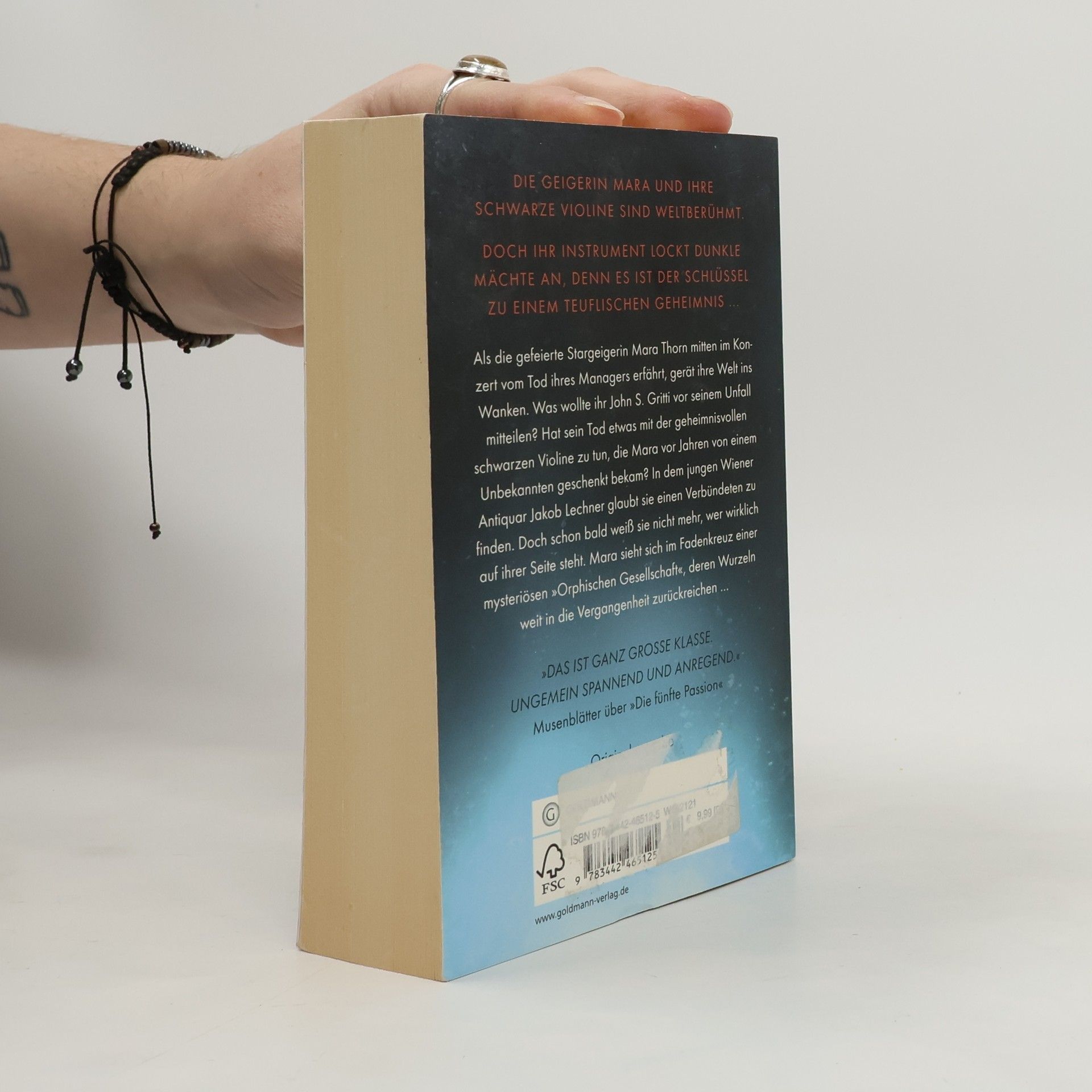 Ein alter Geheimbund, eine tödliche Verschwörung und die Suche nach einem verborgenen Ort Als die gefeierte Stargeigerin Mara Thorn mitten im Konzert vom Tod ihres Managers erfährt, gerät ihre Welt ins Wanken. Was wollte ihr John S. Gritti vor seinem Unfall mitteilen? Hat sein Tod etwas mit der geheimnisvollen schwarzen Violine zu tun, die Mara vor Jahren von einem Unbekannten geschenkt bekam? In dem jungen Wiener Antiquar Jakob Lechner glaubt sie einen Verbündeten zu finden. Doch schon bald weiß sie nicht mehr, wer wirklich auf ihrer Seite steht. Mara sieht sich im Fadenkreuz einer mysteriösen „Orphischen Gesellschaft“, deren Wurzeln weit in die Vergangenheit zurückreichen …