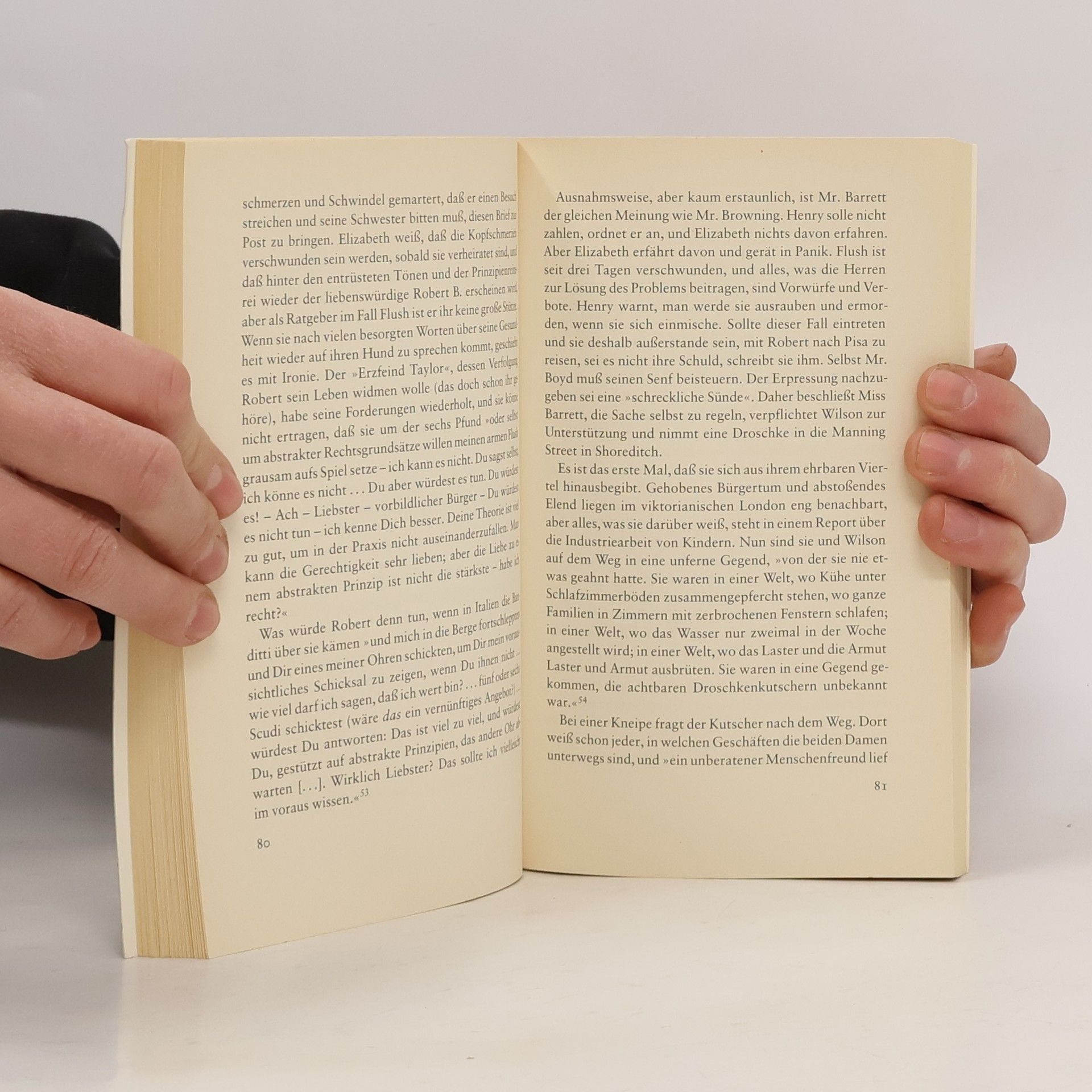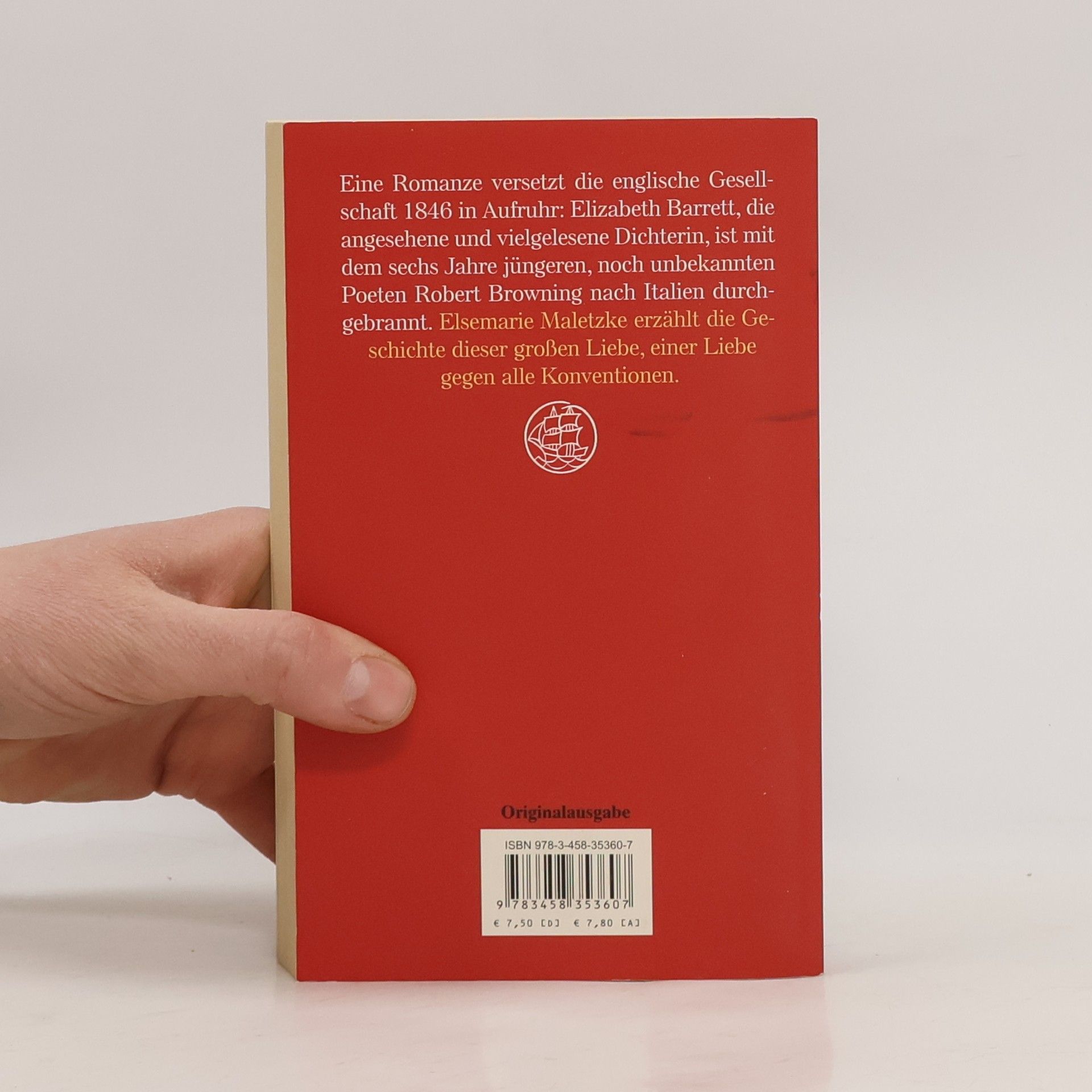 „Haben Sie gehört, daß Miss Barrett praktisch vom Totenbett aufgesprungen und mit Mr. Browning nach Italien geflohen ist?“ fragte eine Londoner Tratschtante ihre Freundin. Die Romanze der beiden Dichter Elizabeth Barrett und Robert Browning und ihre heimliche Hochzeit führten zum Eklat in England. Barrett war vierzig, eine vielgelesene Autorin, immer kränklich, die als die geheimnisvolle „Einsiedlerin aus der Wimpole Street Nr. 50“ ihr Zimmer kaum verließ und unter der Fuchtel eines tyrannischen Vaters stand. Browning war nicht nur sechs Jahre jünger, sondern auch mittellos und dem lesenden Publikum noch weitgehend unbekannt. Zwanzig Monate hatte er sie mit Briefen und Besuchen umworben, ehe sie Mut faßte, mit ihm zu fliehen. Elsemarie Maletzke erzählt die Geschichte dieser großen Liebe und des ungeheuren Skandals, den diese entfachte.