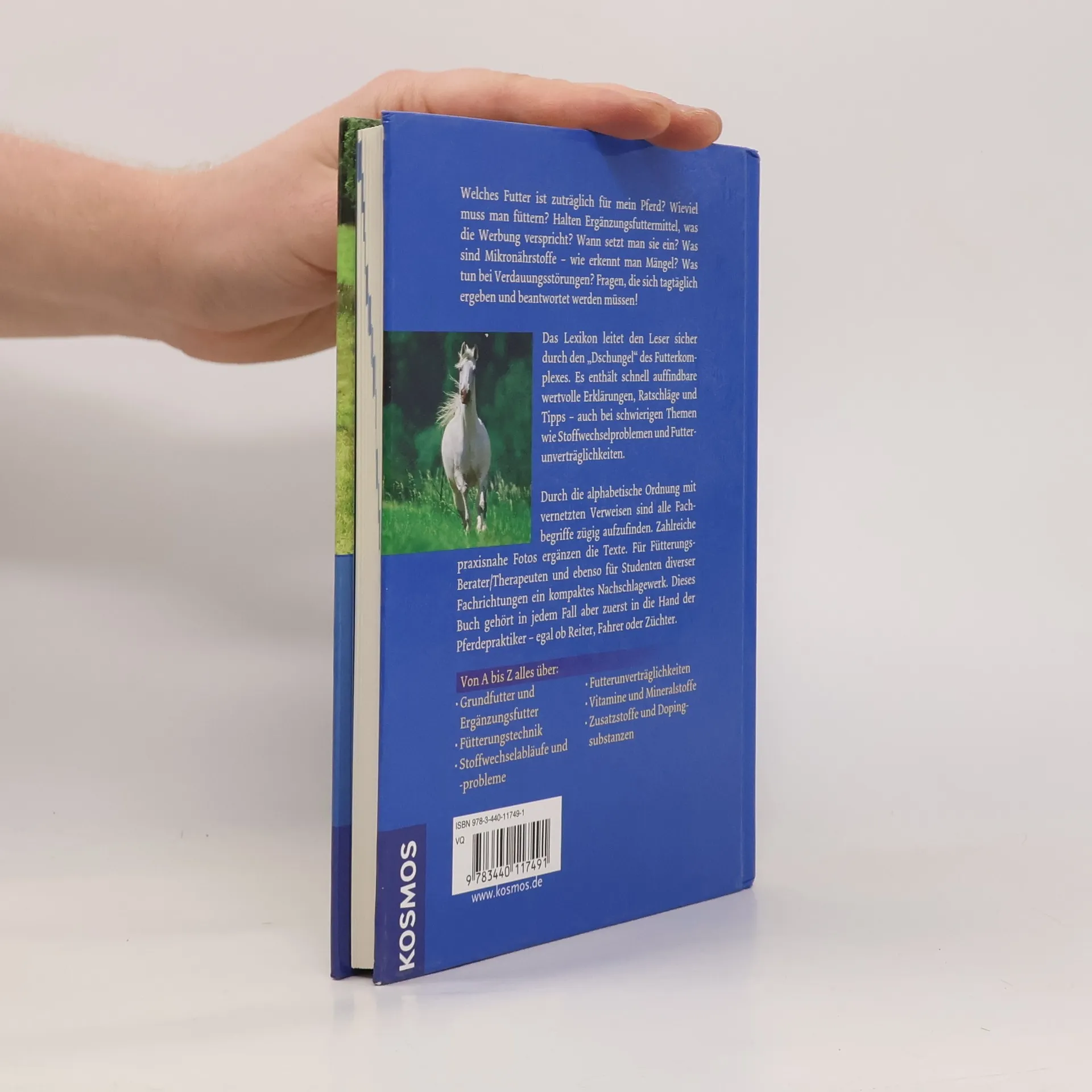 Welches Futter ist für mein Pferd geeignet? Wie viel sollte gefüttert werden? Halten Ergänzungsfuttermittel, was die Werbung verspricht? Was sind Mikronährstoffe und wie erkennt man Mängel? Diese Fragen stellen sich täglich und müssen beantwortet werden! Verantwortungsvolle Pferdehalter, Reiter und Fahrer müssen sich neuen Herausforderungen stellen. Die Vielzahl an Futtermitteln, Zusatzstoffen, modernen Mikronährstoff-Therapien und komplexen Stoffwechselabläufen erfordert umfangreiche Kenntnisse, um den unterschiedlichen Anforderungen im Sport- und Zuchtbereich gerecht zu werden. Unwissenheit kann zu Krankheiten und unnötigen Ausgaben führen. Das Lexikon bietet eine klare Orientierung im „Dschungel“ des Futterkomplexes mit schnell auffindbaren Erklärungen, Ratschlägen und Tipps, auch zu schwierigen Themen wie Stoffwechselproblemen und Futterunverträglichkeiten. Die alphabetische Ordnung und vernetzte Verweise ermöglichen eine zügige Auffindbarkeit aller Fachbegriffe. Praxisnahe Fotos ergänzen die Inhalte. Es ist ein kompaktes Nachschlagewerk für Studenten und Fütterungsberater/-therapeuten, sollte jedoch vor allem in die Hände von Pferdepraktikern gelangen – egal ob Reiter, Fahrer oder Züchter. Von A bis Z behandelt es alles über Grund- und Ergänzungsfutter, Fütterungstechnik, Stoffwechselprobleme, Futterunverträglichkeiten, Vitamine, Mineralstoffe sowie Zusatzstoffe und Dopingsubstanzen.
