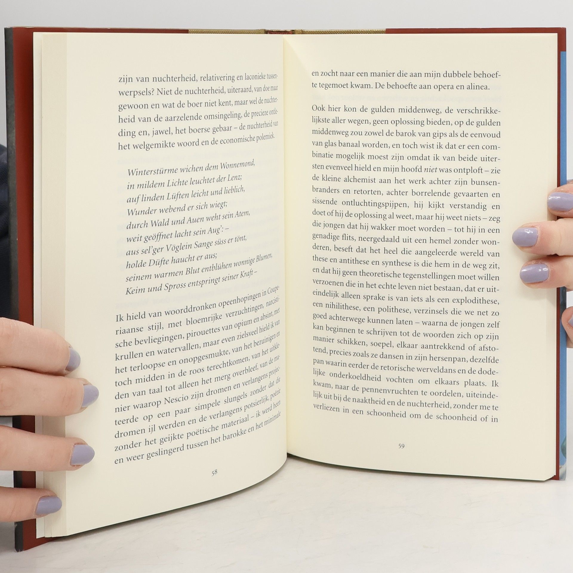 'Muziek zoekt mensen uit en vernietigt ze. Muziek boort zich in mensen en misbruikt ze. Muziek is oorlog. Dat de muziek bezit nam van een lichaam dat Wagner heette en niet van, zeg maar, de 'iuk' die ik in 1813 geweest had kunnen zijn is puur toeval. Het is de eenentwintigste eeuw geworden en ik sta op van mijn stoel, loop naar de deur van mijn kamer en laat Wagner binnen'. 'Wagner zou alleen muziek moeten zijn maar Wagner is altijd meer dan muzik alleen, het is psychologie, maatschappijkritiek, mythe, zelfaffichering, inkapseling, het is ok commentaar op muziek, en voor wie op dit moment leeft klinkt in de muziek het naleven door, de echo's van de muziek, het commentaar op het commentaar en, uiteindelijk weer, de gestruikelde maatschappijkritiek, de psychologie die de ogen werd uitgestoken, de aan de schandpaal genagelde zelfaffichering.'