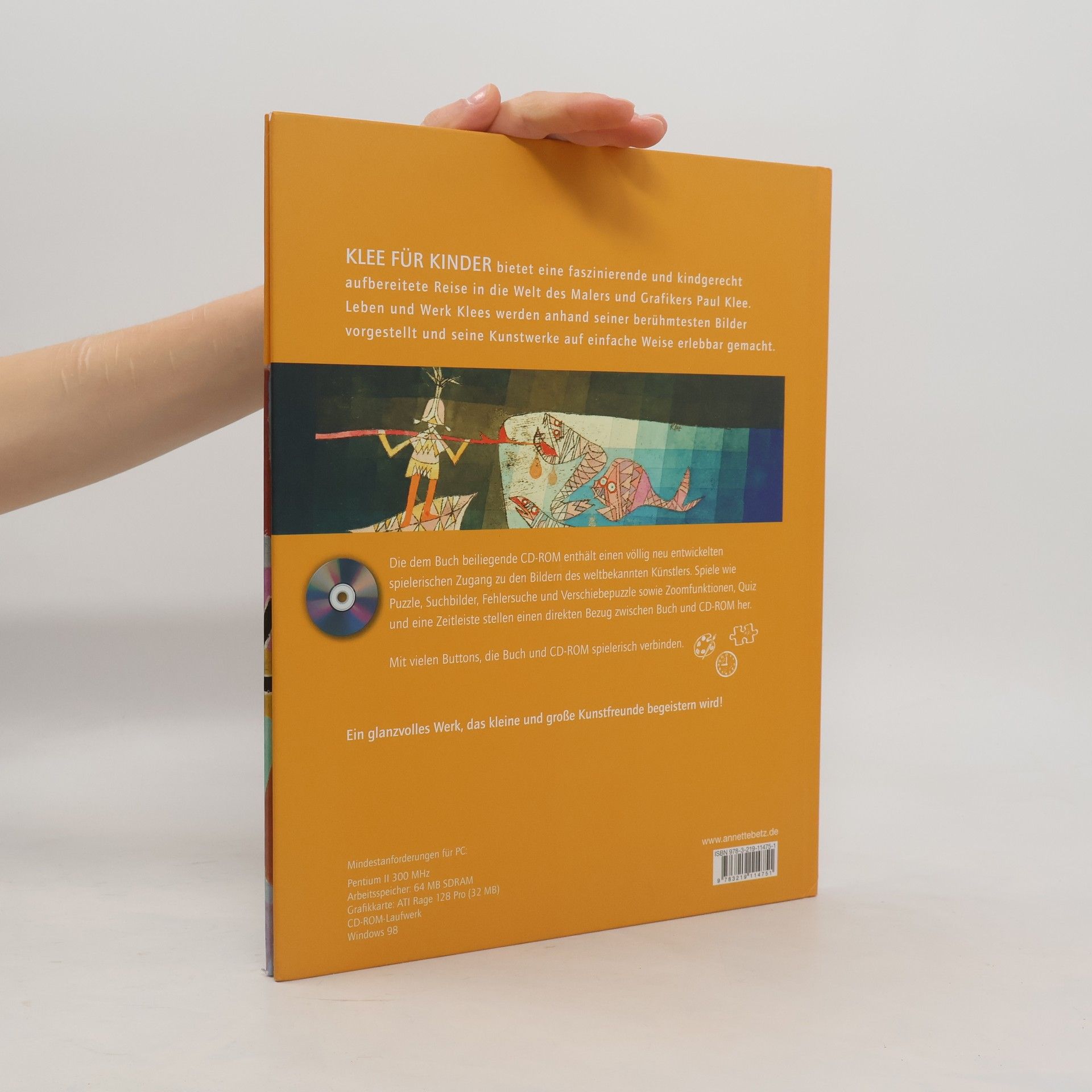 Klees Bilder: 13 berühmte Bilder von Paul Klee stellt Sylvia Rüttimann in diesem Buch vor und erzählt dabei viel Interessantes über sein Leben und Schaffen für Kinder. Wovon hat sich Klee bei seinen Bildern inspirieren lassen, wie hat er seine Farbwahl getroffen und wie und wo hat er seine Bilder gemalt? Indem die Autorin bei ihren Ausführungen immer wieder auf Details der Gemälde hinweist, Fragen darüber stellt oder auch Vermutungen anbringt, animiert sie Kinder zum genaueren Betrachten und gibt Anregung, sich vertieftere Gedanken darüber zu machen. Berühmte Bilder wie " Motiv aus Hammamet", " Der Bayerische Don Giovanni", oder" Zauberkunststücke" lernen Kinder dabei auf spannende Weise kennen. Auf einer beiliegenden CD-Rom können sie sich anhand vieler angebotener Aktivitäten, wie Puzzles oder Suchbilder, mit Klees Kunst ausseinandersetzten. Ein spannendes Buch mit einer CD-Rom, das Kindern einige Bilder Klees und seine Kunst auf spielerische Weise näherbringt und ihnen viel Wissenswertes über sein Leben vermittelt. Mit schönen Bildern und einer Kurzbiografie. Ab 7 Jahren, ****, Beatrice Balint.