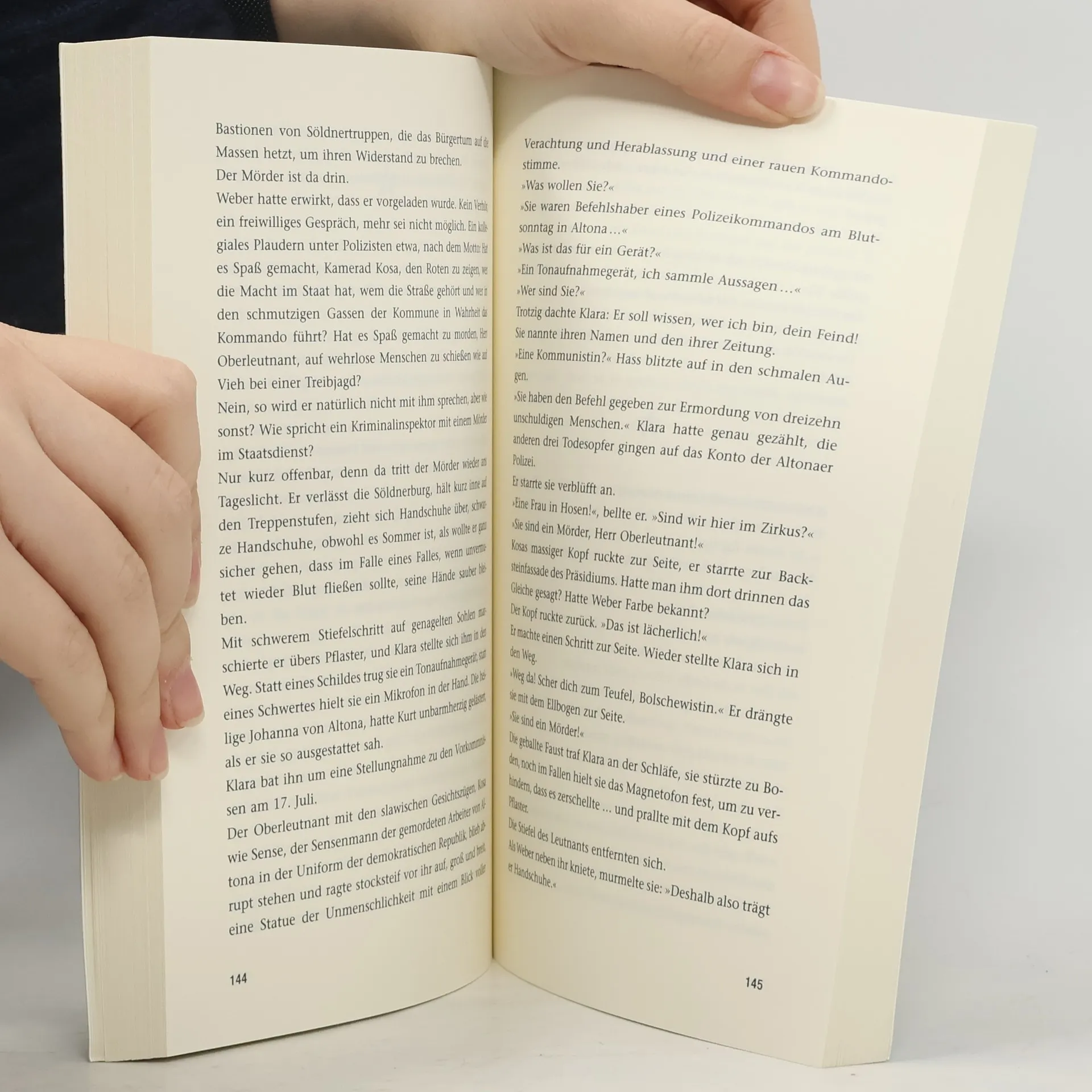 Am sogenannten Altonaer Blutsonntag, dem 17. Juli 1932, kam es bei einem großen nationalsozialistischen Propagandamarsch durch das traditionell rote Altona zu gewalttätigen Auseinandersetzungen mit 18 Toten. Klara Schindler, Reporterin und kämpferische Kommunistin, deckt mithilfe eines verkrachten Kabarettisten, eines Straßenmädchens und eines ehrenhaften Gauners die Vertuschungen der Polizei auf und entschließt sich zur Rache. Wer hat die 16 unschuldigen Opfer auf dem Gewissen, die am 17. Juli 1932 auf den Straßen und in den Wohnungen des Altonaer Arbeiterviertels erschossen wurden? Klara Schindler, selbstbewusste Reporterin der Hamburger Volkszeitung, befragt mit einer neuen technischen Errungenschaft aus der Sowjetunion, einem Magnetophon, Zeugen über die Geschehnisse am Blutsonntag. Sie will die Aussagen möglichst genau dokumentieren, um damit die Lügen der Hamburger Polizei, der preußischen Behörden und der Presse über die Straßenkämpfe zwischen der SA und den Kommunisten aufzudecken. Sie findet heraus, dass der angebliche Feuerüberfall der Kommunisten überhaupt nicht statt gefunden hat, und auf wessen Konto die 16 unschuldigen Toten gehen. Da niemand etwas gegen die deutliche sichtbaren Putschaktivitäten der Nazis und ihren wachsenden Einfluss in den staatlichen Institutionen unternimmt und ihre eigene Partei gelähmt zu sein scheint, entschließt Klara sich, ein Zeichen des Widerstands gegen den aufkommenden Nazismus zu setzen. "Mein Name ist Klara Schindler. Ich werde einen Menschen töten. Vorsätzlich, aber nicht aus niederen Beweggründen, es ist meine Pflicht." Wie schon in seinem vorherigen Buch verschränkt Robert Brack zeitgeschichtliche Fakten mit der fiktiven Romanhandlung, um die wahren Hintergründe und Zusammenhänge zu beschreiben.