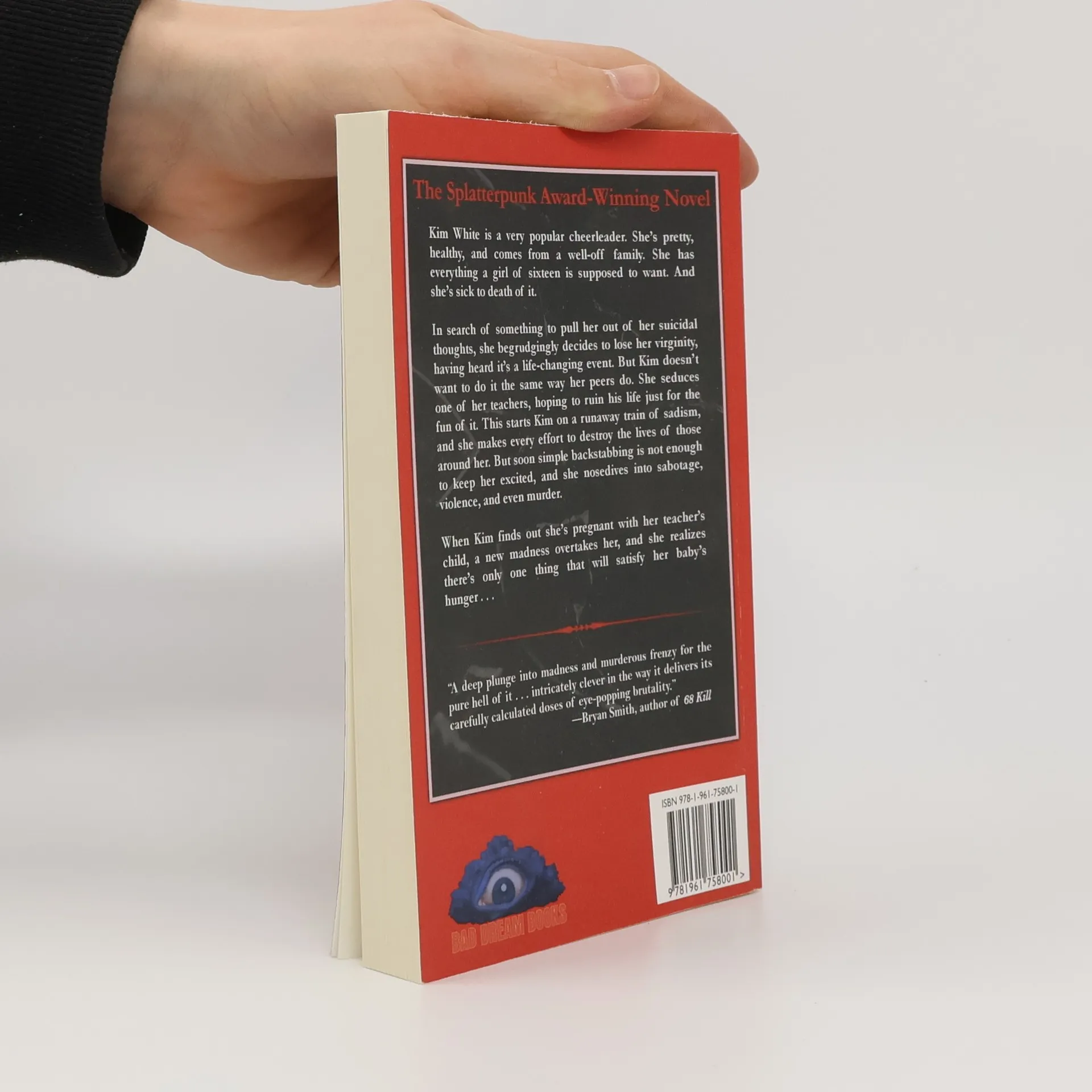 Winner of the Splatterpunk Award for Best Novel.Kim White is a very popular cheerleader. She's pretty, healthy, and comes from a well-off family. She has everything a girl of sixteen is supposed to want. And she's sick to death of it. In search of something to pull her out of her suicidal thoughts, she begrudgingly decides to lose her virginity, having heard it's a life-changing event. But Kim doesn't want to do it the same way her peers do. She seduces one of her teachers, hoping to ruin his life just for the fun of it. This starts Kim on a runaway train of sadism, and she makes every effort to destroy the lives of those around her. But soon simple backstabbing is not enough to keep her excited, and she nosedives into sabotage, violence, and even murder. When Kim finds out she's pregnant with her teacher's child, a new madness overtakes her, and she realizes there's only one thing that will satisfy her baby's hunger . . .
