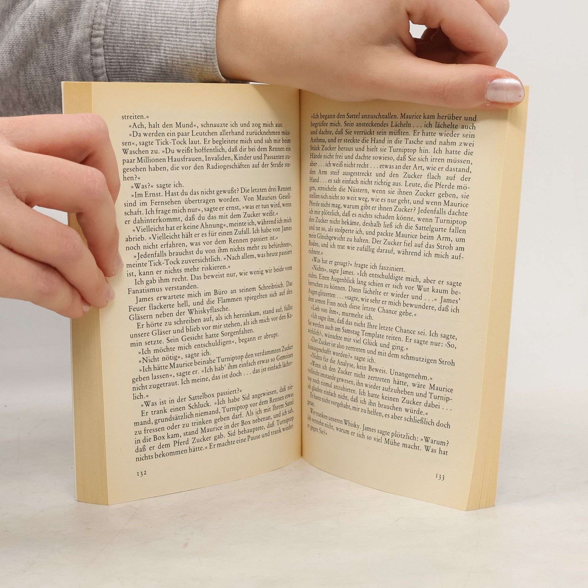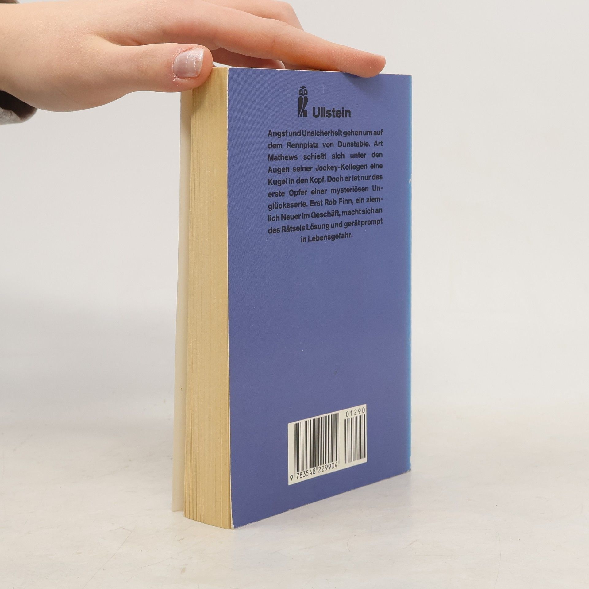 Angst und Unsicherheit gehen um auf dem Rennplatz von Dunstable. Art Mathews schießt sich unter den Augen seiner Jockey-Kollegen eine Kugel in den Kopf. Doch er ist nur das erste Opfer einer mysteriösen Unglücksserie. Erst Rob Finn, ein ziemlich Neuer im Geschäft, macht sich an des Rätsels Lösung und gerät prompt in Lebensgefahr. (Umschlagtext Ullstein) Finanzielle und gesundheitliche Probleme, sogar Selbstmord: zu viele Jockeys stecken in der Krise, als daß es nur Zufall sein könnte. Was treibt Art Mathews dazu, sich in aller Öffentlichkeit zu erschießen? Wer hat Grant Oldfield derart zugesetzt, dass er dringend die Hilfe eines Psychiaters benötigt? Und warum droht Peter Cloony von einem Berg von Schulden erdrückt zu werden? Viele gute Jockeys stecken in der Krise – auffällig viele. Robert Finn bekommt unerwartet seine große Chance, als sich auch noch der Vorjahreschampion ein Bein bricht. Als Ersatzmann kann er endlich beweisen, was in ihm steckt. Alles läuft glänzend, bis auch für ihn eine Pechsträhne beginnt... Ein fessender Thriller über ein gefährliches psychologisches Phänomen, über die Macht der Medien und die falschen Tatsachen – mit einem Helden, wie er Dick-Francis-typischer nicht sein könnte: lakonisch, unerschrocken und von frappierender Menschenkenntnis.