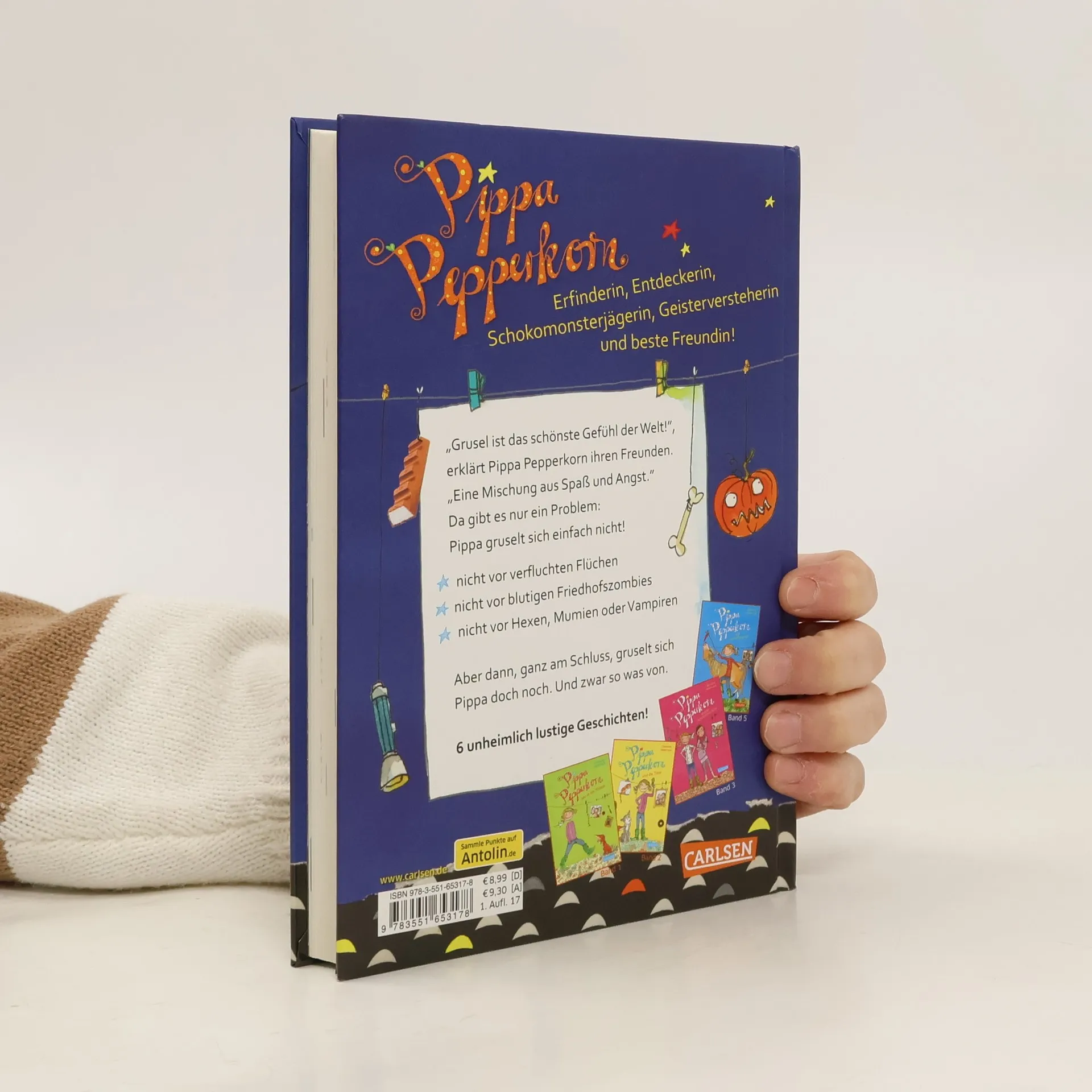 6 grandiose Grusel-Abenteuer in einem Band mit der liebenswerten, einzigartigen Pippa Pepperkorn und ihren Freunden! Pippas Freunde gruseln sich so richtig: Vor bandagierten Zombies, die nachts über den Friedhof humpeln. Vor ekligen Monstern, die sich ins Zimmer schleichen. Vor Hexen, Mumien, Kellerasseln und Kakerlaken. Aber Pippa? Die findet eigentlich nur: „Grusel ist das schönste Gefühl der Welt! Eine Mischung aus Spaß und Angst!“ Aber dann, ganz am Schluss, gruselt Pippa sich doch. Aber so was von ... Pippa hat 1000 Ideen und ist immer für ihre Freunde da! Lachen oder gruseln - das ist hier die Frage! Zum Vorlesen, selbst lesen, laut lesen und immer wieder lesen! Ein Riesenspaß für Groß und Klein mit vielen lustigen Bildern und kurzen Kapiteln!