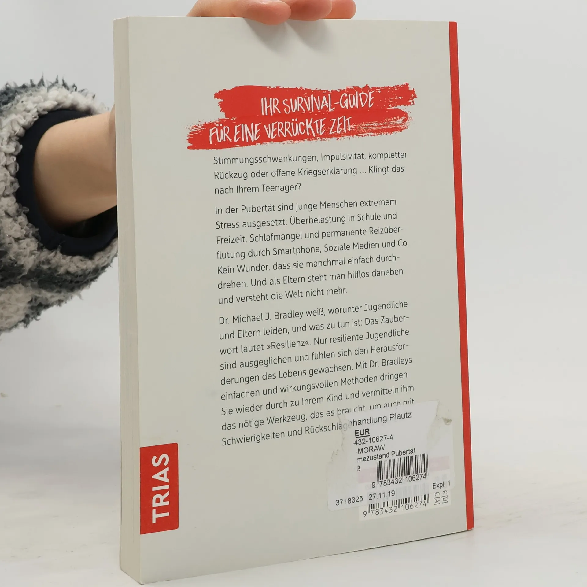 Ihr Survival-Guide für eine verrückte ZeitStimmungsschwankungen, Impulsivität, kompletter Rückzug oder offene Kriegserklärung... Klingt das nach Ihrem Teenager?In der Pubertät sind junge Menschen extremem Stress Überbelastung in Schule und Freizeit, Schlafmangel und permanente Reizüberflutung durch Smartphone, Soziale Medien und Co. Kein Wunder, dass sie manchmal einfach durchdrehen. Und als Eltern steht man hilflos daneben und versteht die Welt nicht mehr.Dr. Michael J. Bradley weiß, worunter Jugendliche und Eltern leiden, und was zu tun Das Zauberwort lautet "Resilienz". Nur resiliente Jugendliche sind ausgeglichen und fühlen sich den Herausforderungen des Lebens gewachsen. Mit Dr. Bradleys einfachen und wirkungsvollen Methoden dringen Sie wieder durch zu Ihrem Kind und vermitteln ihm das nötige Werkzeug, das es braucht, um auch mit Schwierigkeiten und Rückschlägen umzugehen.