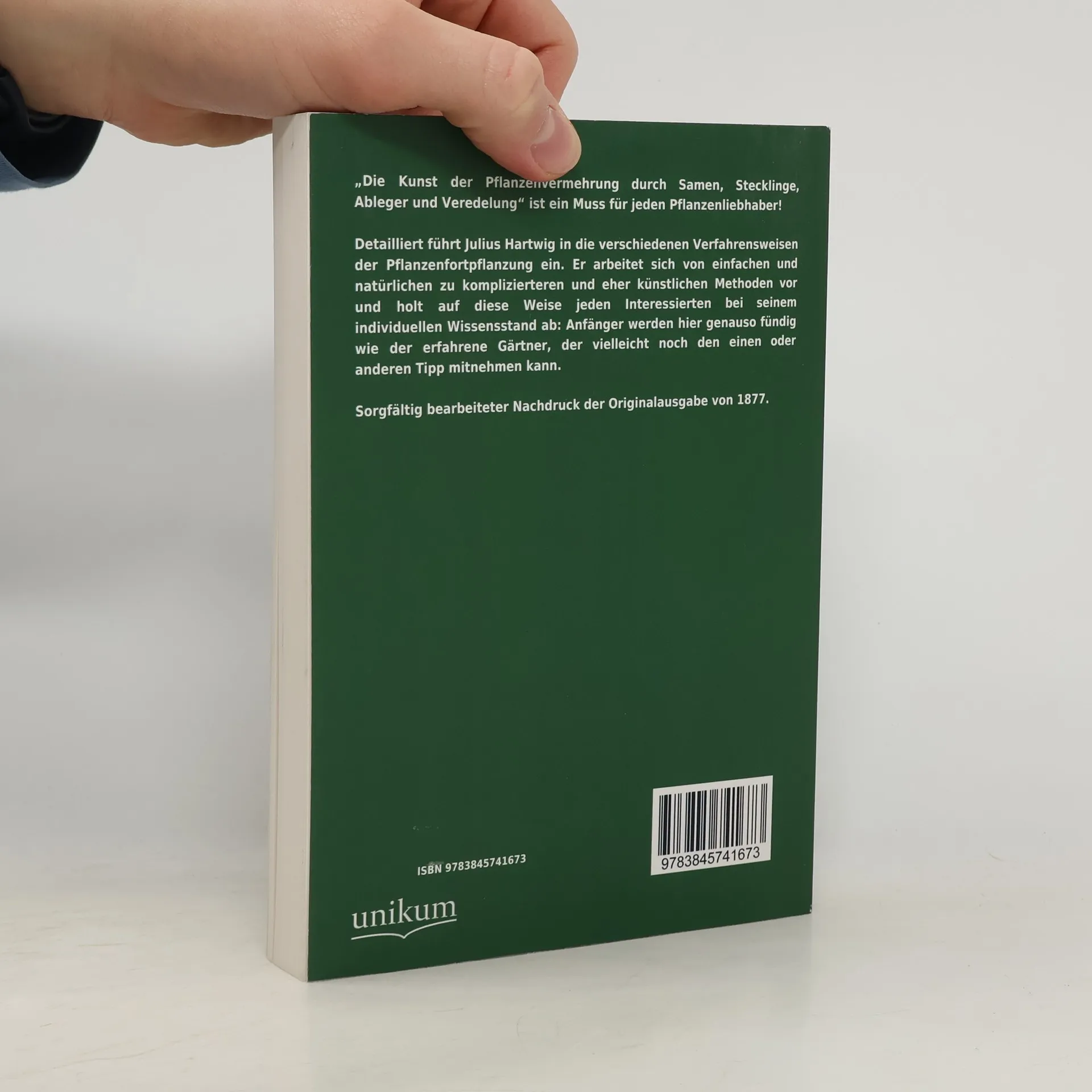 "Die Kunst der Pflanzenvermehrung durch Samen, Stecklinge, Ableger und Veredelung" ist ein Muss für jeden Pflanzenliebhaber! Detailliert führt Julius Hartwig in die verschiedenen Verfahrensweisen der Pflanzenfortpflanzung ein. Er arbeitet sich von einfachen und natürlichen zu komplizierteren und eher künstlichen Methoden vor und holt auf diese Weise jeden Interessierten bei seinem individuellen Wissensstand Anfänger werden hier genauso fündig wie der erfahrene Gärtner, der vielleicht noch den einen oder anderen Tipp mitnehmen kann. Sorgfältig bearbeiteter Nachdruck der Originalausgabe von 1877.
