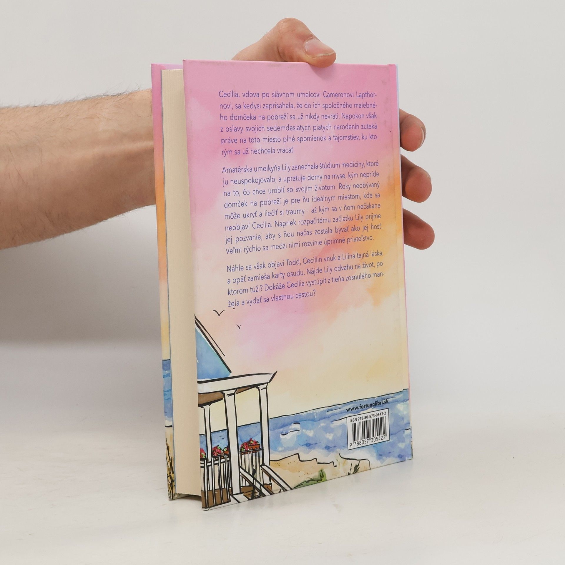 Nikdy nie je neskoro začať odznova Cecilia, vdova po slávnom umelcovi Cameronovi Lapthornovi, sa kedysi zaprisahala, že do ich spoločného malebného domčeka na pobreží sa už nikdy nevráti. Napokon však z oslavy svojich sedemdesiatych piatych narodenín zuteká práve na toto miesto plné spomienok a tajomstiev, ku ktorým sa už vracať nechcela. Amatérska umelkyňa Lily zanechala štúdium medicíny, ktoré ju neuspokojovalo, a upratuje domy na myse, kým nepríde na to, čo chce urobiť so svojím životom. Roky neobývaný domček na pobreží je pre ňu ideálnym miestom, kde sa môže ukryť a liečiť si traumy – až kým sa v ňom nečakane neobjaví Cecilia. Napriek rozpačitému začiatku Lily prijme jej pozvanie, aby s ňou načas zostala bývať ako jej hosť. Veľmi rýchlo sa medzi nimi rozvinie úprimné priateľstvo. Náhle sa však objaví Todd, Ceciliin vnuk a Lilina tajná láska, a opäť zamieša karty osudu. Nájde Lily odvahu na život, po ktorom túži? Dokáže Cecilia vystúpiť z tieňa zosnulého manžela a vydať sa vlastnou cestou?