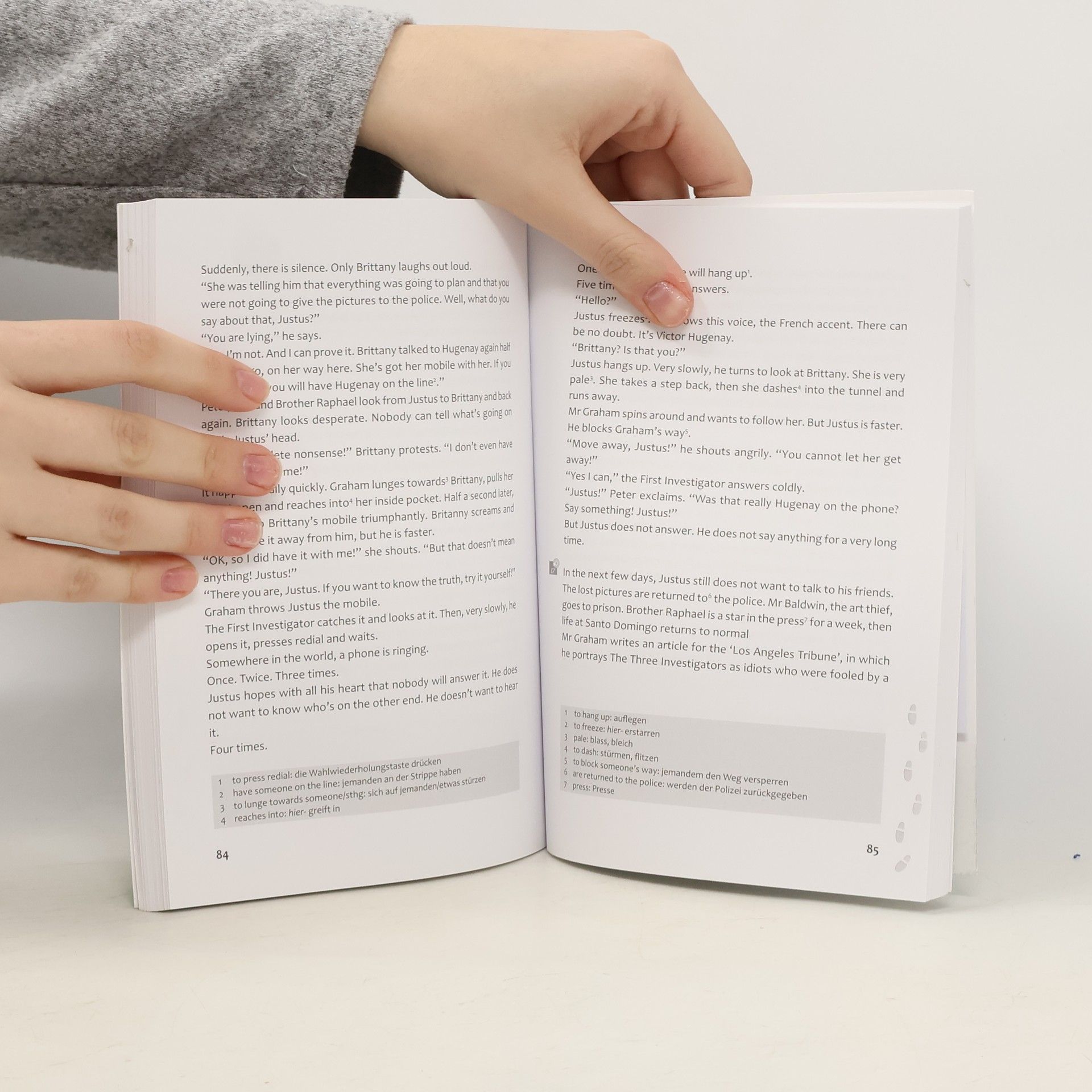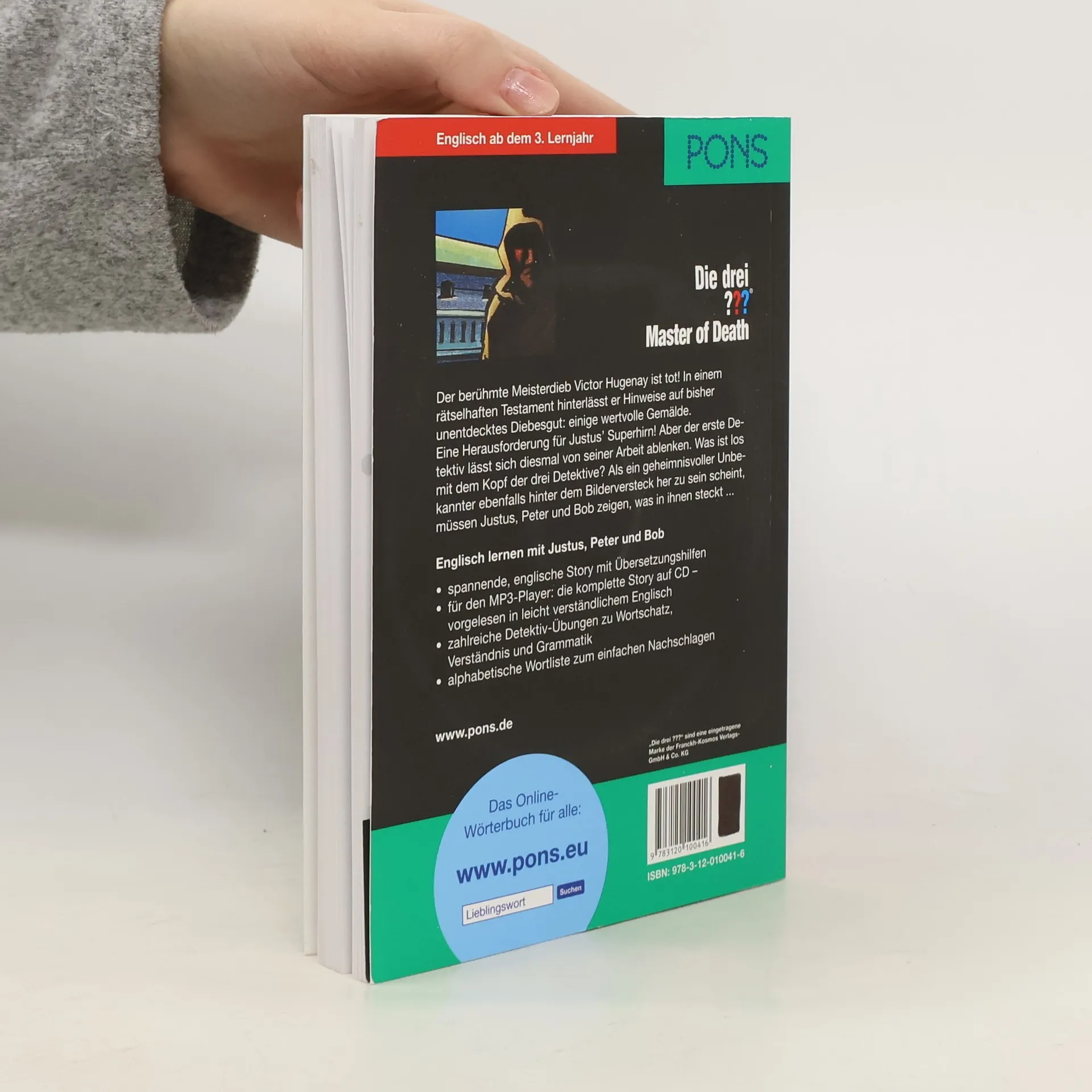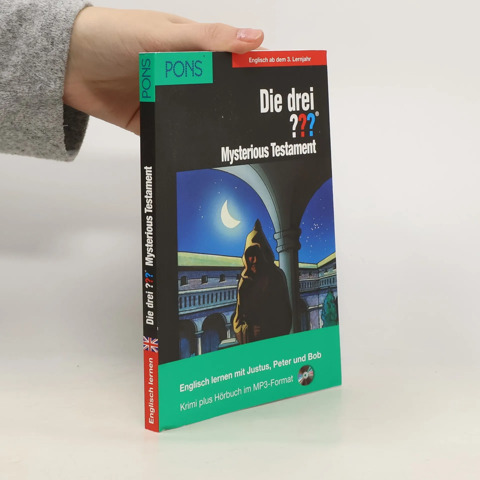 Die neue Reihe bei Pons "Englisch lernen mit Justus, Peter und Bob" präsentiert für Englischlernende ab dem 3. Lernjahr zunächst 6 der beliebtesten Fälle der 3 Fragezeichen. Das "Mysterious Testament" (basierend auf "Das Erbe des Meisterdiebs", BA 4/02) kündigt den 3 Freunden eine millionenschwere Erbschaft an. Sie sollen nach dem Tod eines bekannten Kunstdiebs 6 seiner gestohlenen Bilder bekommen - falls sie diese finden. Für die Suche müssen sie nicht nur vertrackte Rätsel lösen, sondern v.a. auch den Wettlauf gegen Mitkonkurrenten um die Jagd nach den Kunstwerken gewinnen. Die spannende Story liest sich auch auf Englisch mithilfe der Vokabelangaben auf jeder Seite ohne größere Probleme, außerdem gibt es eine alphabetische Wortliste am Ende des Texts. Zusätzlich wird die gesamte Story auf der beigelegten CD in leicht verständlichem Englisch vorgelesen. Zahlreiche Übungen im Anhang zu Wortschatz, Grammatik und Inhalt verstärken allerdings den Schullektürecharakter - was dem freiwilligen Lesen manchmal in die Quere kommt. Gut gemacht und zur Erweiterung des Lektürebestandes gern empfohlen.