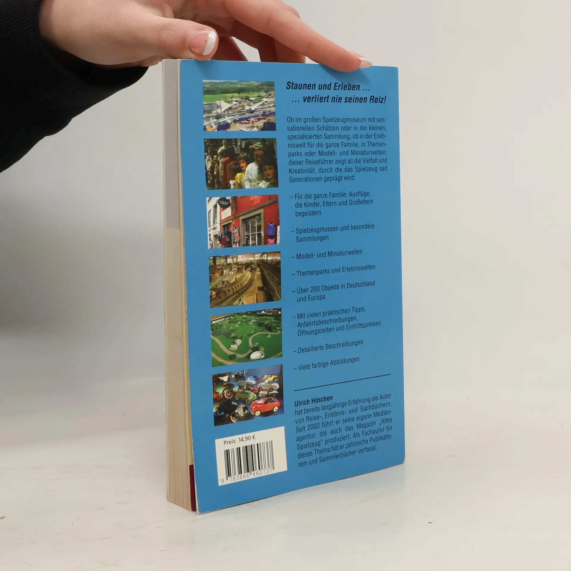 Staunen und Erleben. verliert nie seinen Reiz! Deshalb entwickelt manch Erwachsener oft nostalgische Gefühle, wenn ihm Spielzeug aus seiner Kindheit begegnet, deshalb sind Kinder so verrückt danach. Spielen macht Spaß und Spielzeug fasziniert Groß wie Klein, beides sind elementare Bestandteile des Lebens und die Gemeinde derer, die Spielzeug als Erwachsene sammeln, ist groß. Kaum verwunderlich also, dass es wie selbstverständlich zu unserer Kulturgeschichte gehört und das auch seit Generationen so gehandhabt wird. Zahlreiche Stadt- und Heimatmuseen haben eigene Abteilungen für Spielzeug und/oder Volkskunst, wo sie sich jenem Phänomen der Alltagsgeschichte widmen. Jene aufzuspüren, zu zeigen, welche Schätze sich dort verbergen, das möchte Autor Ulrich Höschen mit diesem praktischen Reiseführer. Da die Ansprüche auch immer höher werden, viele nach Spektakulärem verlangen, werden nicht nur Spielzeugmuseen und –ausstellungen vorgestellt, sondern auch weitere Erlebniswelten gezeigt, die sich nicht nur als Ziele für Spielzeugfans, sondern für einen Ausflug für die ganze Familie eignen. Beschreibungen, Bilder, Tipps, Anfahrtswege, Öffnungszeiten, Eintrittspreise und viele weitere Informationen zu den schönsten Adressen dieser Art in Deutschland und seinen Nachbarländern – Familien mit Kindern, Spielzeugfans und Ausflügler, die gerne das Besondere suchen, werden ihre wahre Freude mit diesem Buch haben.