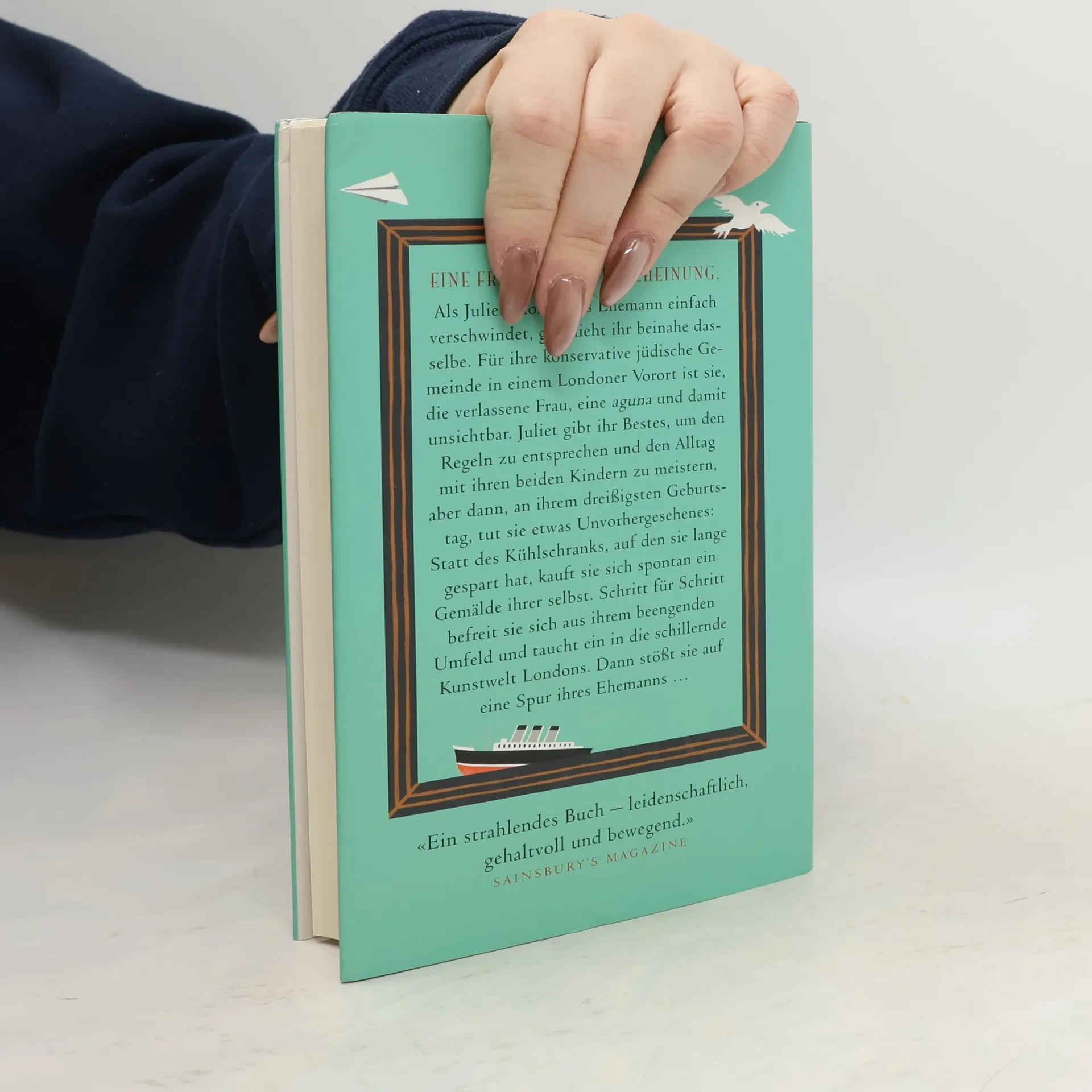 Als Juliet Montagues Ehemann einfach verschwindet, geschieht ihr beinahe dasselbe. Für ihre konservative jüdische Gemeinde in einem Londoner Vorort ist sie, die verlassene Frau, eine aguna und damit unsichtbar. Juliet gibt ihr Bestes, um den Regeln zu entsprechen und den Alltag mit ihren beiden Kindern zu meistern, aber dann, an ihrem dreißigsten Geburtstag, tut sie etwas Unvorhergesehenes: Statt des Kühlschranks, auf den sie lange gespart hat, kauft sie sich spontan ein Gemälde ihrer selbst. Schritt für Schritt befreit sie sich aus ihrem beengenden Umfeld und taucht ein in die schillernde Kunstwelt Londons. Dann stößt sie auf eine Spur ihres Ehemanns …