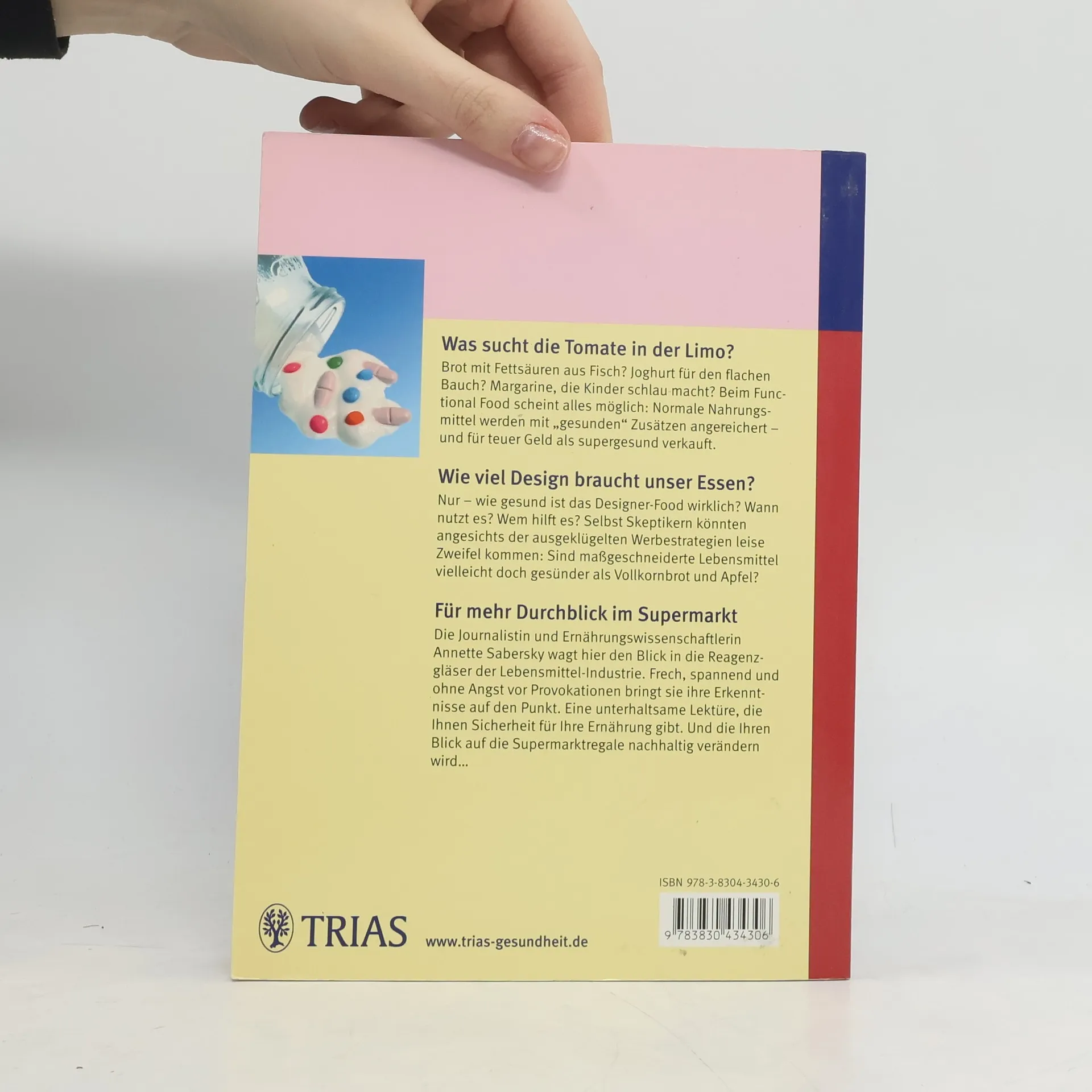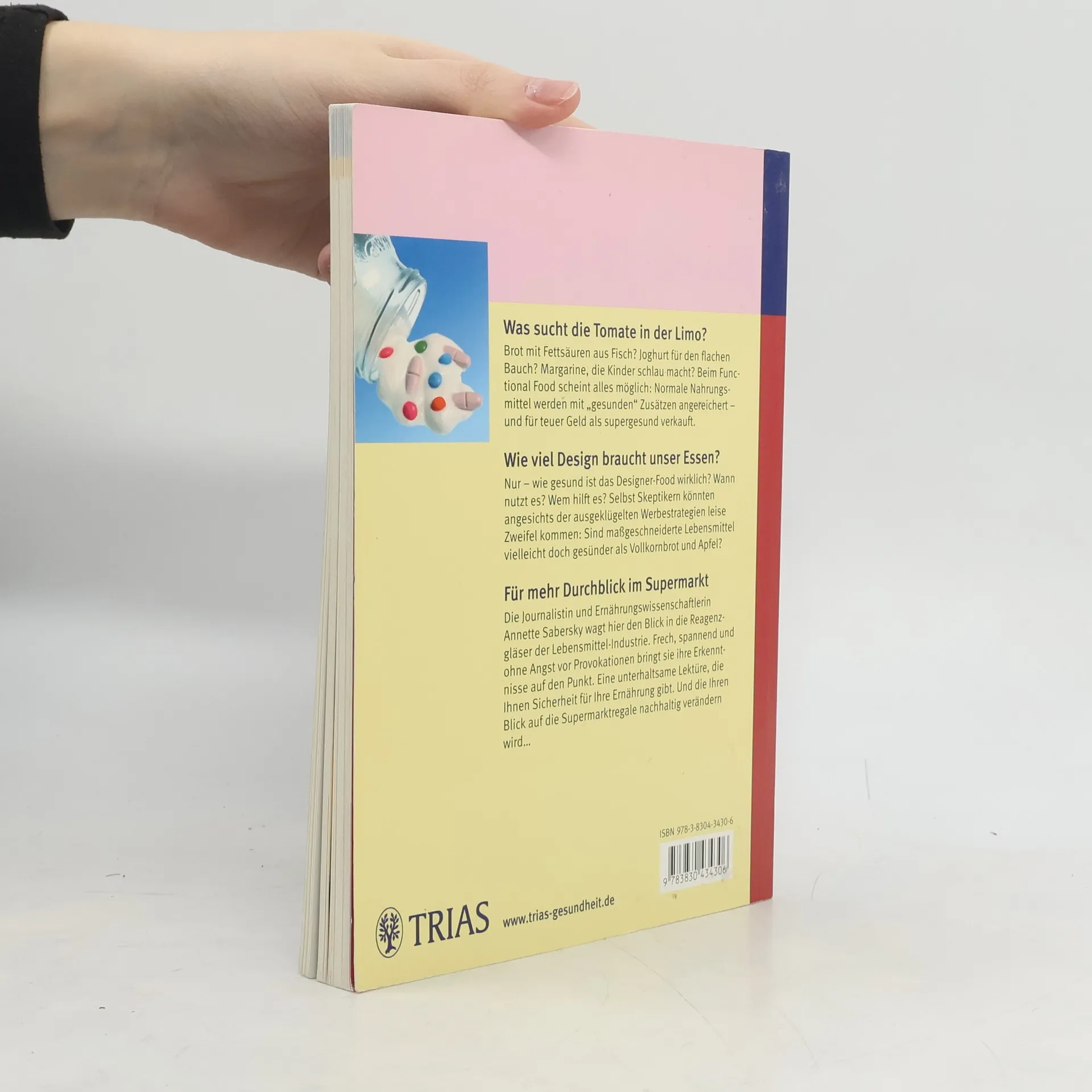 „Dieser Joghurt stärkt Ihr Immunsystem“. So liest man in der Werbung. Doch stimmt auch, was „Functional Food“ verspricht? Dieses Buch dient dem Leser als Orientierungshilfe. Zum einen erklärt es, was Vitamine, Mineralstoffe, Fettsäuren, Pflanzenstoffe, lebende Bakterienkulturen etc. wirklich können. Mehr noch: Es zeigt auf, woran man die Ernsthaftigkeit von „wissenschaftlichen Studien“ erkennen kann. Außerdem wird das Ernährungswissen auf den neuesten Stand gebracht. So erfährt der Leser, wie der tatsächliche Vitaminbedarf durch normales Essen abgedeckt wird, wo ergänzt werden muss und welche Präparate sinnvoll sind. Annette Sabersky ist Ernährungswissenschaftlerin. Als Journalistin schreibt sie für zahlreiche Publikumszeitschriften zu ihrem Schwerpunktthema „Ernährung und Diät“. Sie ist zudem bekannt als Autorin zahlreicher Sachbücher u. a. bei TRIAS „Diät! 99 verblüffende Tatsachen“.