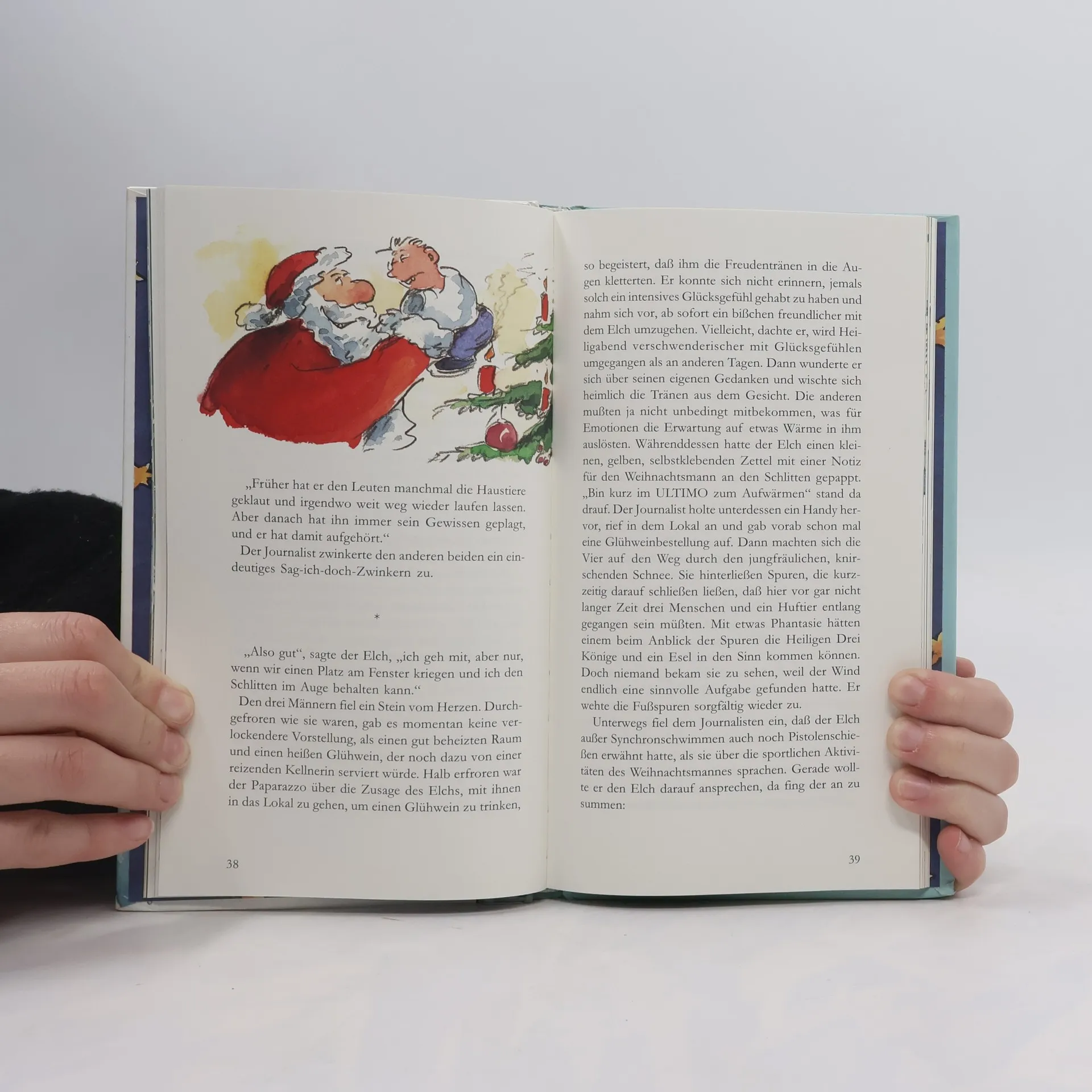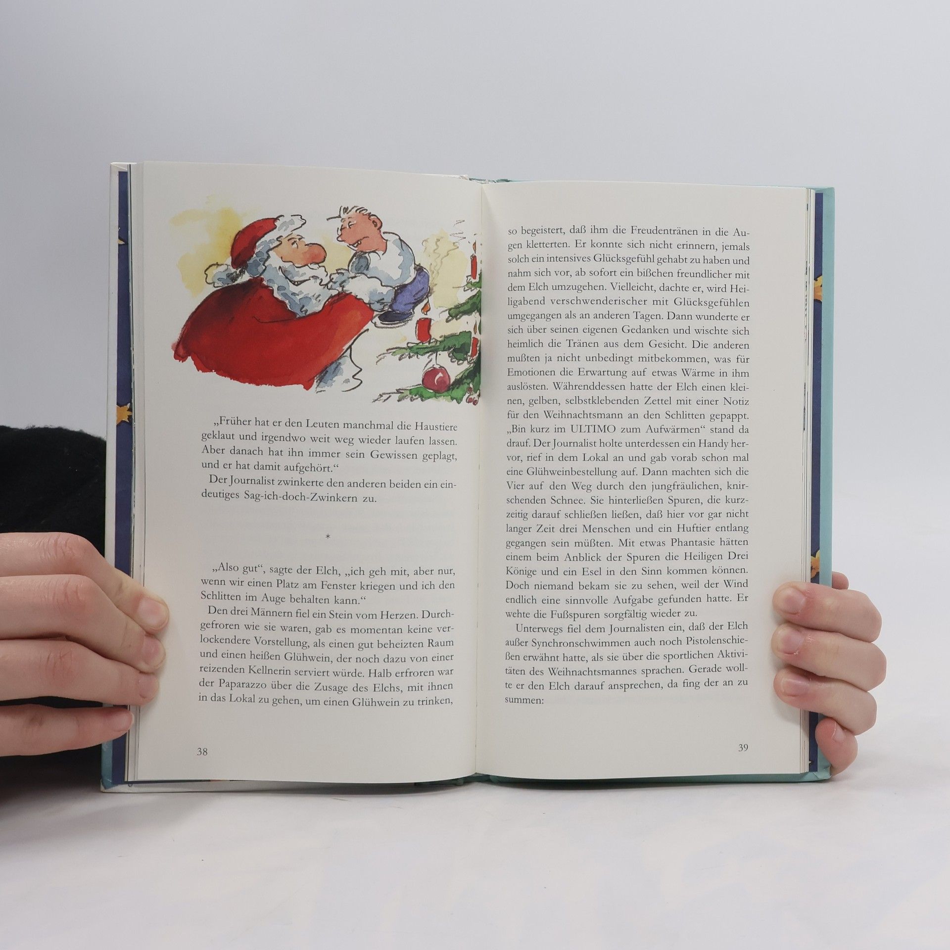 Was eigentlich macht der Weihnachtsmann, wenn die Feiertage vorbei sind? Auf der Suche nach einer Sensationsstory machen drei Reporter eine Bauchlandung. - Weihnachtssatire mit Illustrationen von Peter Gaymann.