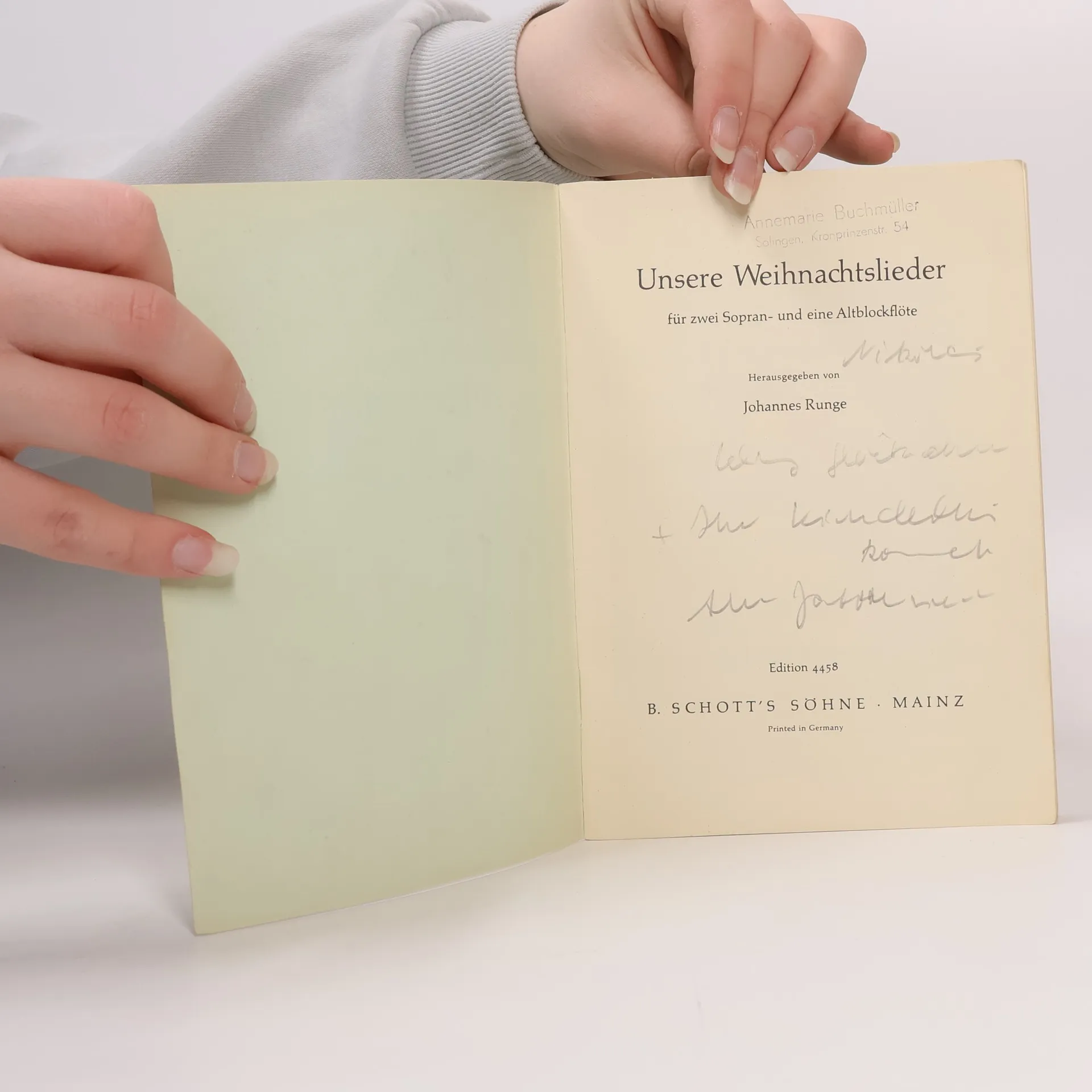 Unsere Weihnachtslieder für zwei Sopran und eine Altblockflöte, Johannes Runge