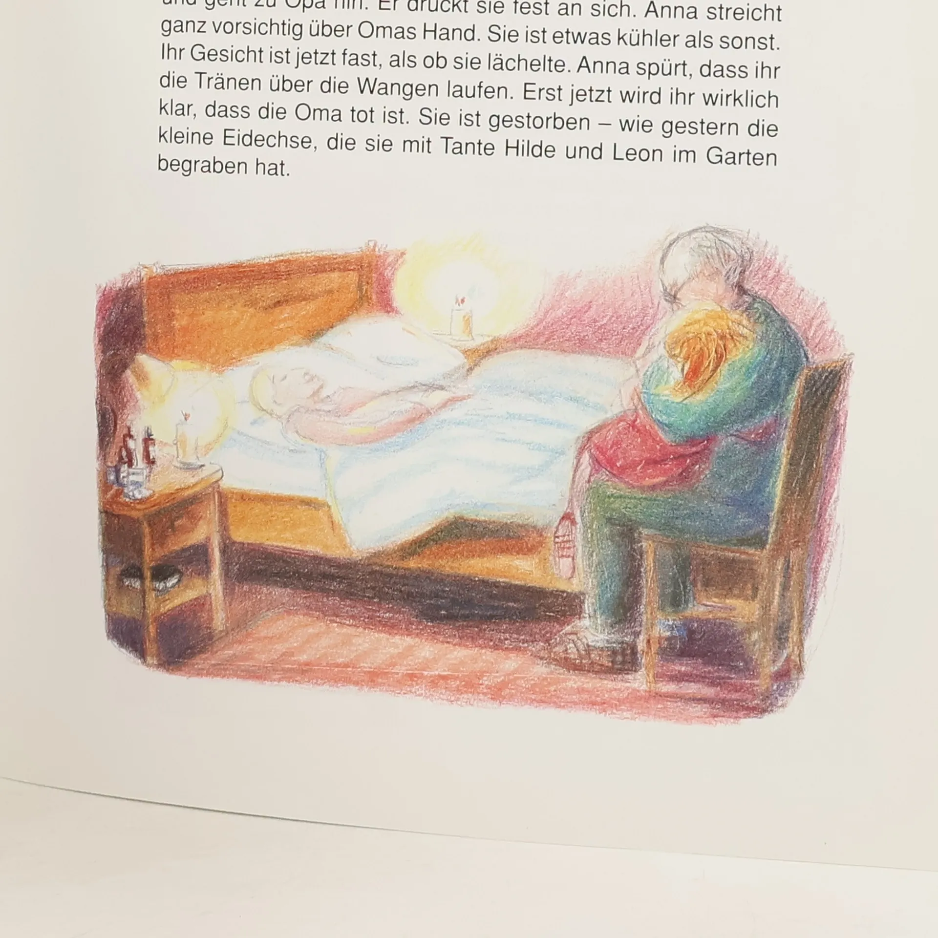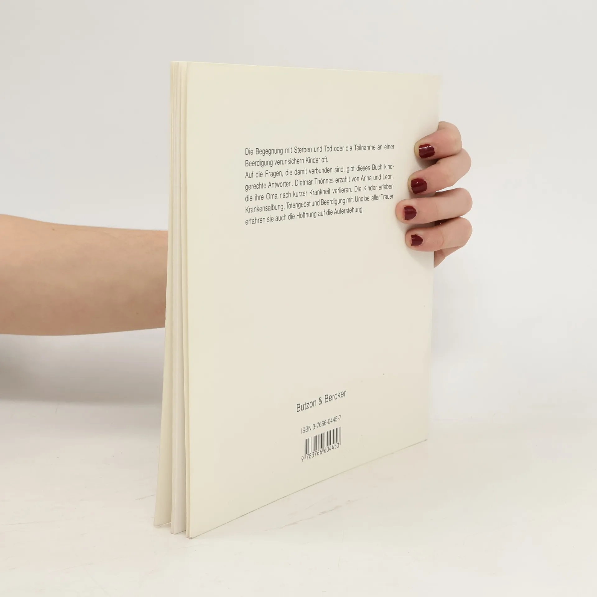 Kinder werden fast täglich über die Medien mit dem Thema „Sterben und Tod“ konfrontiert. Auch im eigenen Umfeld kann jederzeit der Tod einbrechen, wenn etwa die Oma stirbt oder ein Freund verunglückt. Solche Erfahrungen mit Sterben und Tod sowie die Teilnahme an einem Begräbnis verunsichern Kinder und werfen viele Fragen auf. Dietmar Thönnes setzt sich in diesem Buch behutsam mit den Themen Tod und Abschiednehmen auseinander und versucht, kindgerechte Antworten anzubieten. Er erzählt von Anna und Leon, die nach kurzer Krankheit ihre Oma verlieren. Die beiden Kinder erleben Krankensalbung, Totengebet und Beerdigung und erfahren dabei inmitten aller Trauer auch von der Hoffnung auf die Auferstehung. Im Rahmen der Geschichte werden die christlichen Zeichen und Bräuche verständlich, die in der Trauer Hilfe sind und Hoffnung schenken. Die einfühlsamen Bilder von Cornelia Kurtz eröffnen einen weiteren, ganz eigenen Zugang zum Thema und laden zum stillen Betrachten ein.