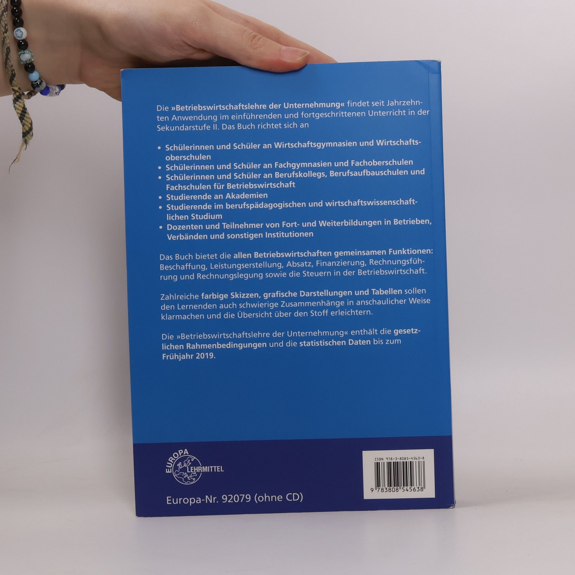 Lehr- und Übungsbuch für den vertiefenden betriebswirtschaftlichen Unterricht. Es umfasst u. a. Beschaffung, Leistungserstellung, Marketing, Logistik, Finanzierung und Investition, Jahresabschluss sowie Grundzüge der Rechtsordnung und Steuern des Unternehmens. Die 32. Auflage der Betriebswirtschaftslehre der Unternehmung wurde inhaltlich überarbeitet und aktualisiert. Neue Erkenntnisse der Betriebswirtschaftslehre sind eingearbeitet. Der Leser erhält durch die Gestaltung des Buches eine übersichtliche und strukturierte Darstellung der Inhalte. Umfangreiche Aufgaben und Probleme unterstützen die Stoffsicherung. Durch die anschauliche Darstellung, eine klare Strukturierung einschließlich zusammenfassender Übersichten und wegen der komprimierten Inhalte eignet es sich sowohl für den schulischen Bereich als auch für die eigenständige Erarbeitung von betriebswirtschaftlichen Sachverhalten. Dies gilt z. B. für das Studium an Fachschulen, Fachhoch- und Hochschulen sowie für Lernende in beruflichen Bildungsmaßnahmen. Die aktuellen wirtschaftlichen Daten und die Neuerungen gesetzlicher Rahmenbedingungen bis Frühjahr 2019 sind eingearbeitet; die aktuellen arbeits- und sozialrechtlichen Bestimmungen sind berücksichtigt.