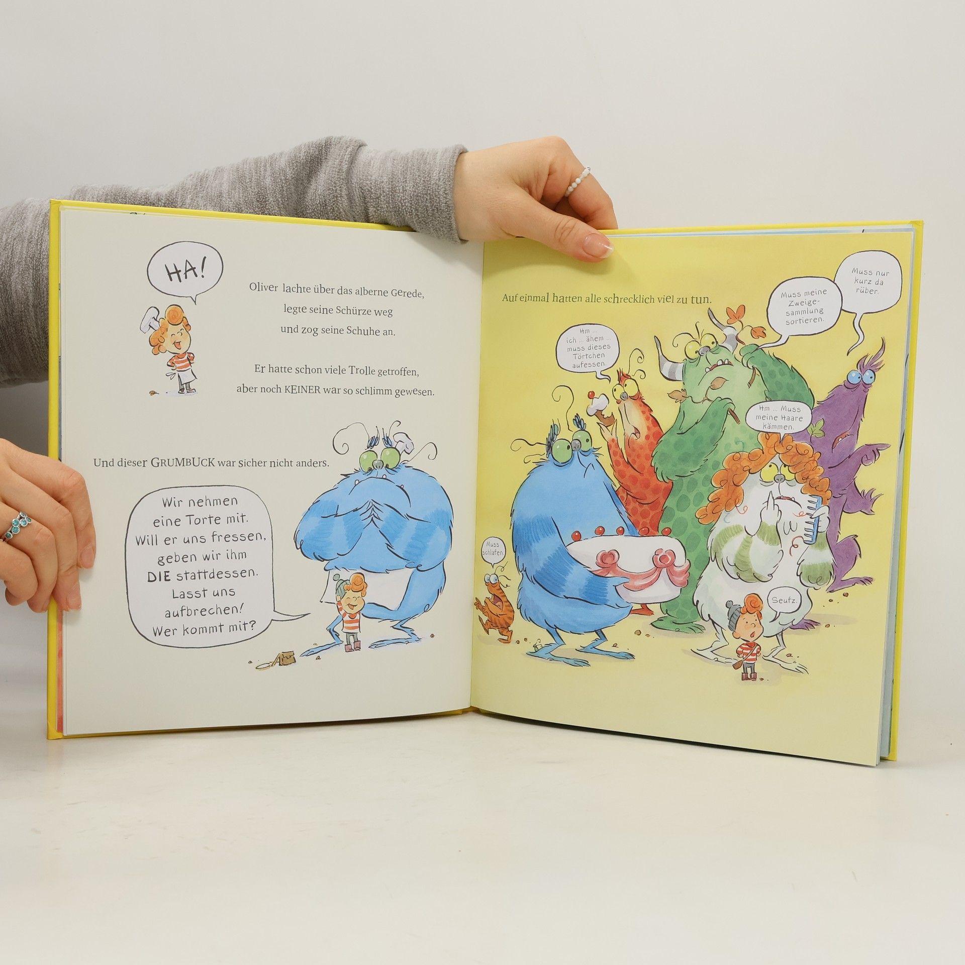 Oliver und sein bester Freund Troll führen ein Café. Hier gibt es die leckersten Torten weit und breit! Kein Wunder, sind alle Trolle der Umgebung Stammgäste. An einem besonders geschäftigen Tag verschwindet Molly, Olivers kleine Schwester. Oliver und sein Freund Troll machen sich auf die Suche, und ihr Weg führt sie zum gefürchteten Mampfberg. Dort wohnt der schreckliche, von allen gefürchtete Grumbuck! Grumbuck ist der größte, grünste, übellaunigste Troll von allen, er ist größer als zehn Bäume, isst Felsbrocken und trinkt ganze Flüsse leer. Oliver lässt sich von den Gerüchten nicht beeindrucken. Und sein Freund Troll? Der ist sich da nicht so sicher …