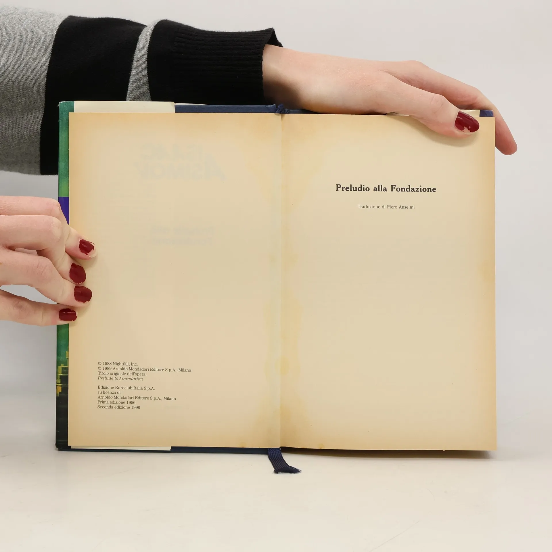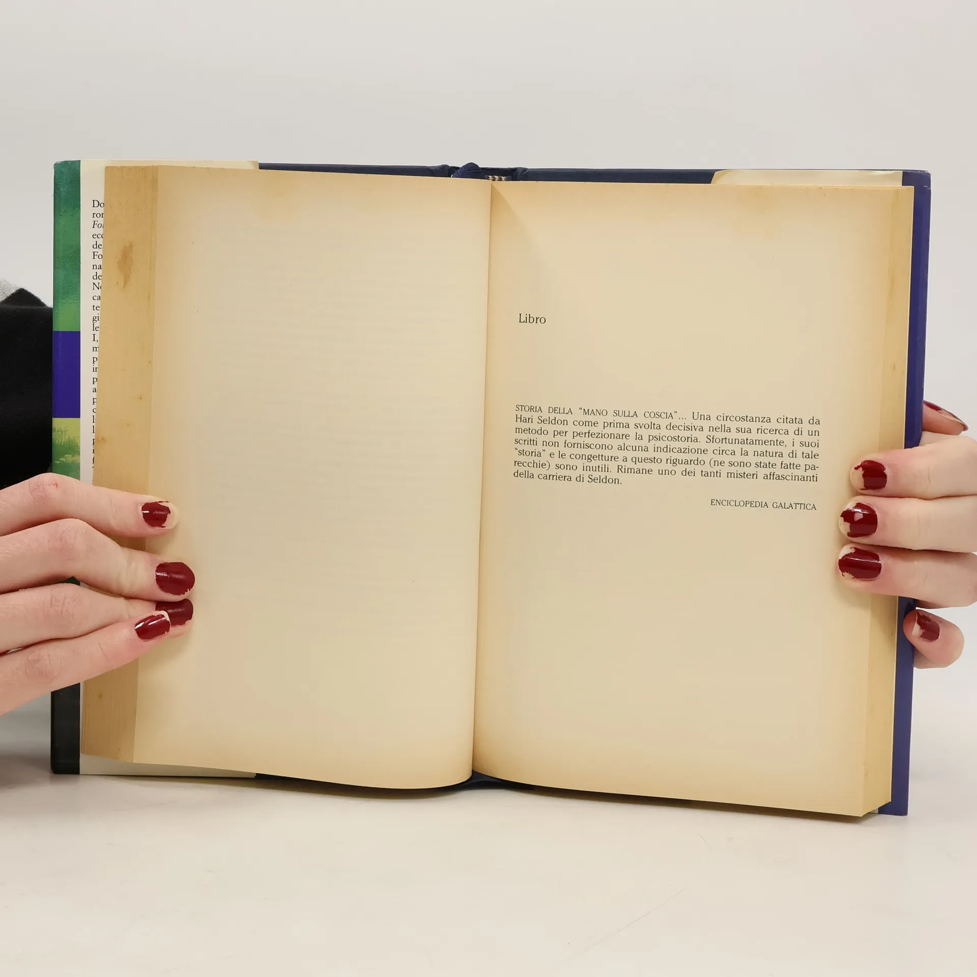 See alternate cover edition here Il libro racconta l'origine della straordinaria epopea della Fondazione, il più celebre ciclo narrativo della fantascienza moderna. Nell'anno 12020 dell'Era galattica Hari Seldon , un oscuro matematico originario di Helicon, giunge sul pianeta Trantor per presentare le teorie sperimentali di una nuova scienza in grado di prevedere il futuro: la psicostoria. L'ipotesi avanzata dallo scienziato accende subito l'interesse dell'imperatore e dei potenti personaggi che gravitano intorno a lui. Ma tra lusinghe, raggiri ed intrighi di palazzo, Seldon si trova presto in pericolo...Inizierà così una lunga ed avventurosa fuga per le gigantesche cupole di Trantor alla ricerca di quella misteriosa chiave che gli consentirà di capire l'intero passato del genere umano e di aprire le porte al suo futuro.
