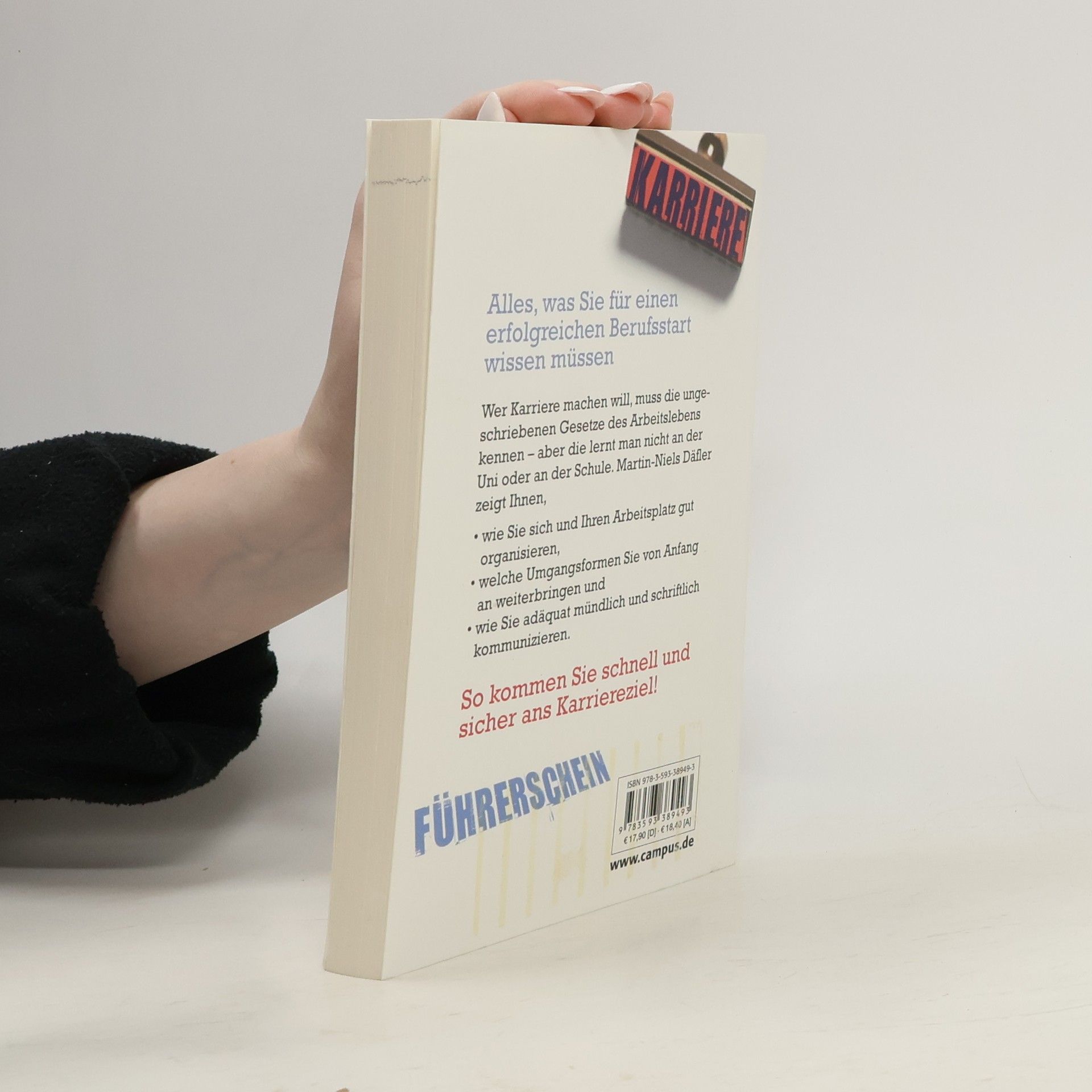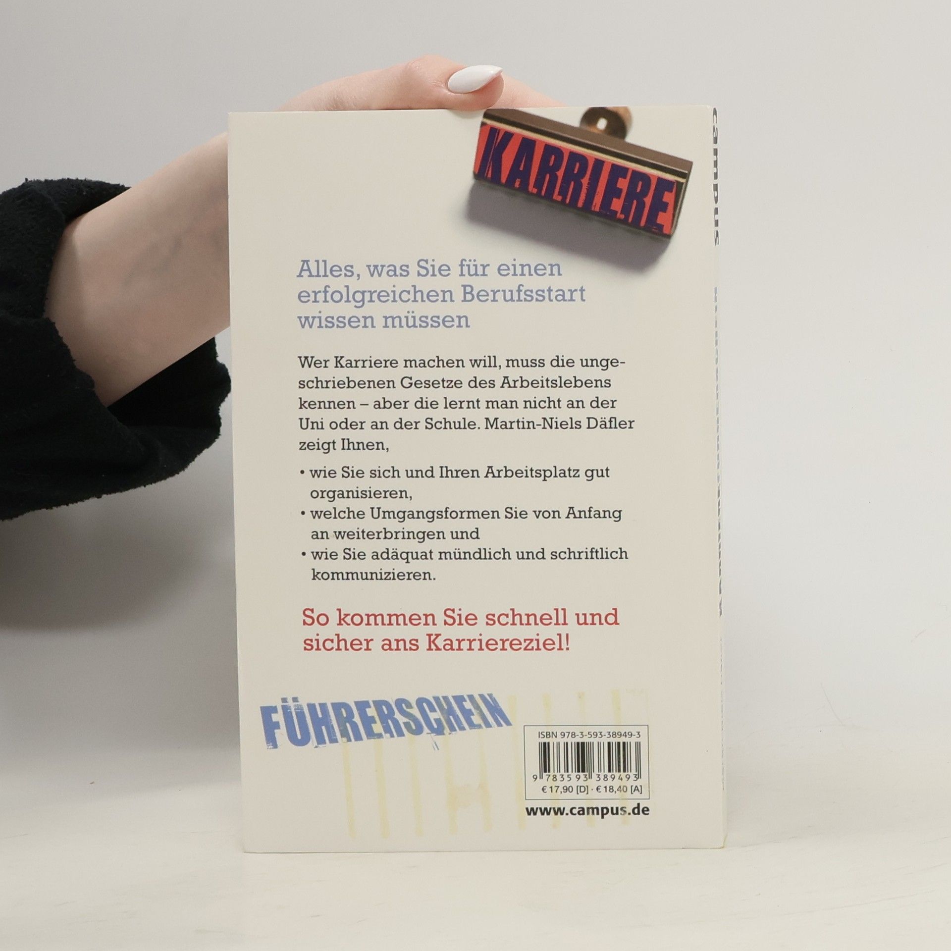 Wer Karriere machen will, muss die ungeschriebenen Gesetze des Arbeitslebens kennen – aber die lernt man nicht an der Schule oder Uni. Der Karrierefahrlehrer Martin-Niels Däfler zeigt in seinem praxistauglichen Ratgeber, • wie man sich und seinen Arbeitsplatz gut organisiert, • welche Umgangsformen einen von Anfang an weiterbringen und • wie man adäquat mündlich und schriftlich kommuniziert. Inklusive Karriereverbandskasten: mit Tipps für den richtigen Umgang mit beruflichen Pannen, schwierigen Chefs und anderen Herausforderungen.
