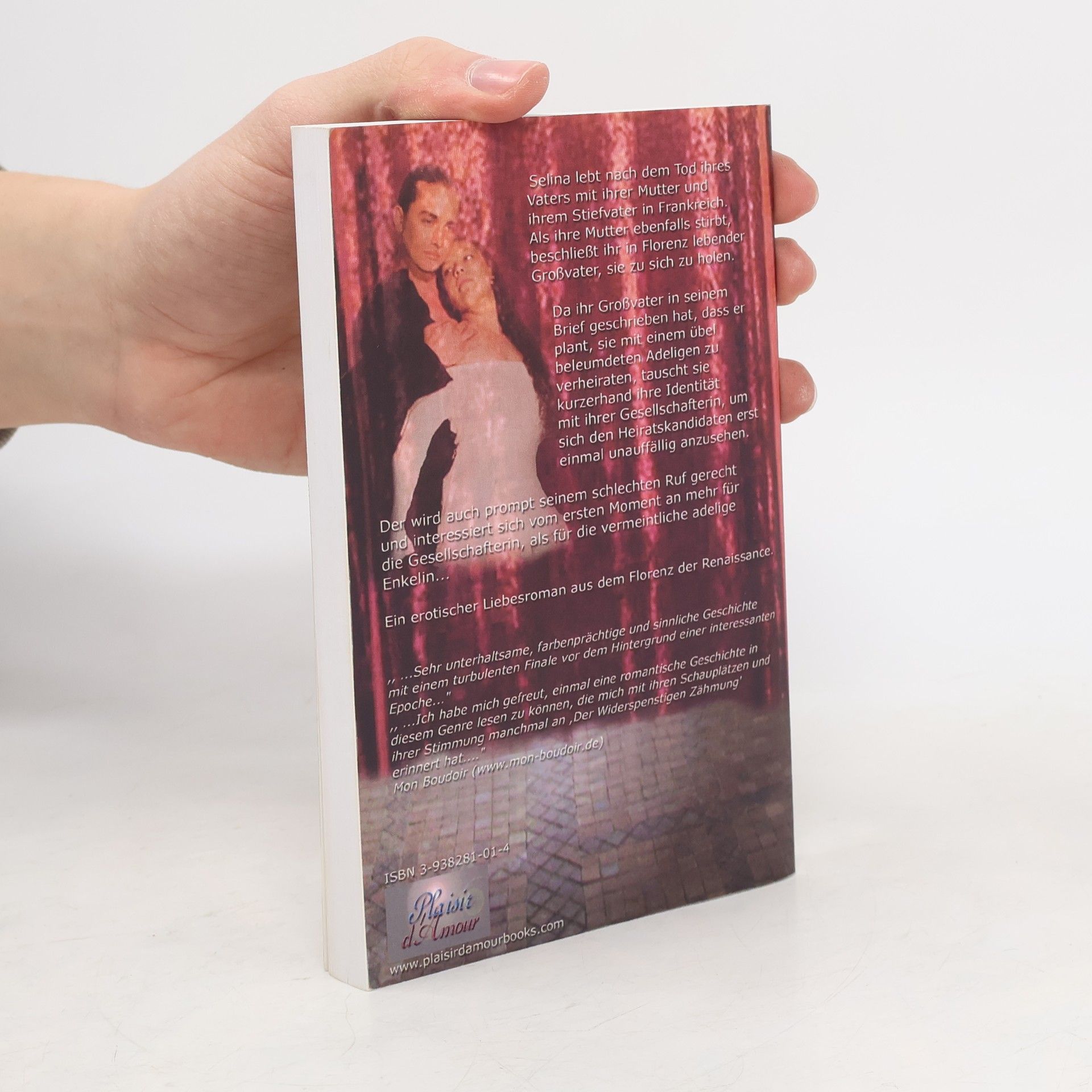 Selina hat nach dem Tod ihres Vaters mit ihrer Mutter und ihrem Stiefvater in Frankreich gelebt. Als ihre Mutter ebenfalls stirbt, beschließt ihr in Florenz lebender Großvater, sie zu sich zu holen. Da ihr Großvater in seinem Brief geschrieben hat, dass er plant, sie mit einem mittellosen Adeligen zu verheiraten, der eine reiche Frau sucht, tauscht sie kurzerhand ihre Identität mit ihrer Gesellschafterin, um sich den Heiratskandidaten erst einmal unauffällig anzusehen. Der wird auch prompt seinem schlechten Ruf gerecht und interessiert sich vom ersten Moment an mehr für die Gesellschafterin als für die vermeintliche adelige Enkelin. Ein erotischer Liebesroman aus dem Florenz der Renaissance