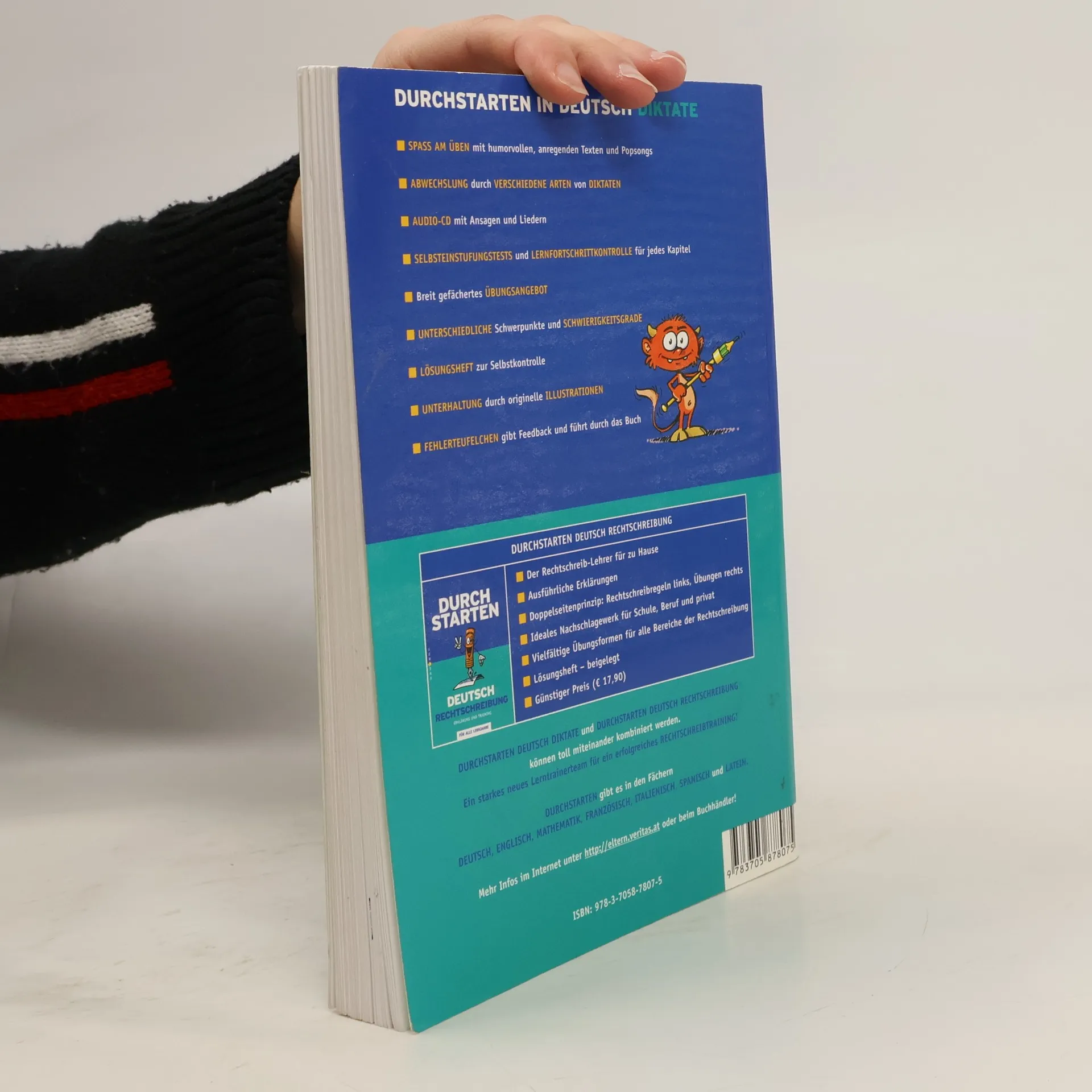 Die Lernhilfe aus der Reihe "Durchstarten Deutsch" enthält Diktate und Übungen zur Rechtschreibung von Klasse 5 bis Klasse 9, ist aber auch darüber hinaus zum Wiederholen und Üben geeignet. Gegliedert ist das Buch nach den einzelnen Themen der Rechtschreibung. Jedes Kapitel beginnt mit einem Test, mit dem der Schüler seine "Lieblingsfehler" herausfinden kann. In Kästen sind die jeweiligen Rechtschreibregeln eingestreut. Es folgen verschiedene, mit fantasievollen Namen benannte Diktatformen wie Lückendiktat, Tüfteldiktat, Schlangendiktat usw., mit Angabe des Schwierigkeitsgrades und der jeweiligen Klassenstufe. Zu den einzelnen Diktaten sind die Hörtexte und Lieder auf beiliegender CD enthalten. Ein ausführliches Lösungsheft liegt bei. Die Diktattexte und Übungen sind abwechslungsreich und z.T. witzig, insgesamt wirkt die Lernhilfe durch ihre spielerische Vorgehensweise motivierend und kann für die genannten Klassenstufen sehr empfohlen werden. Ideal ist auch die Kombination mit E. Cerwenka: "Deutsch Rechtschreibung" (BA 1/08). Neben den Lernhilfen von Duden, Klett u.a.