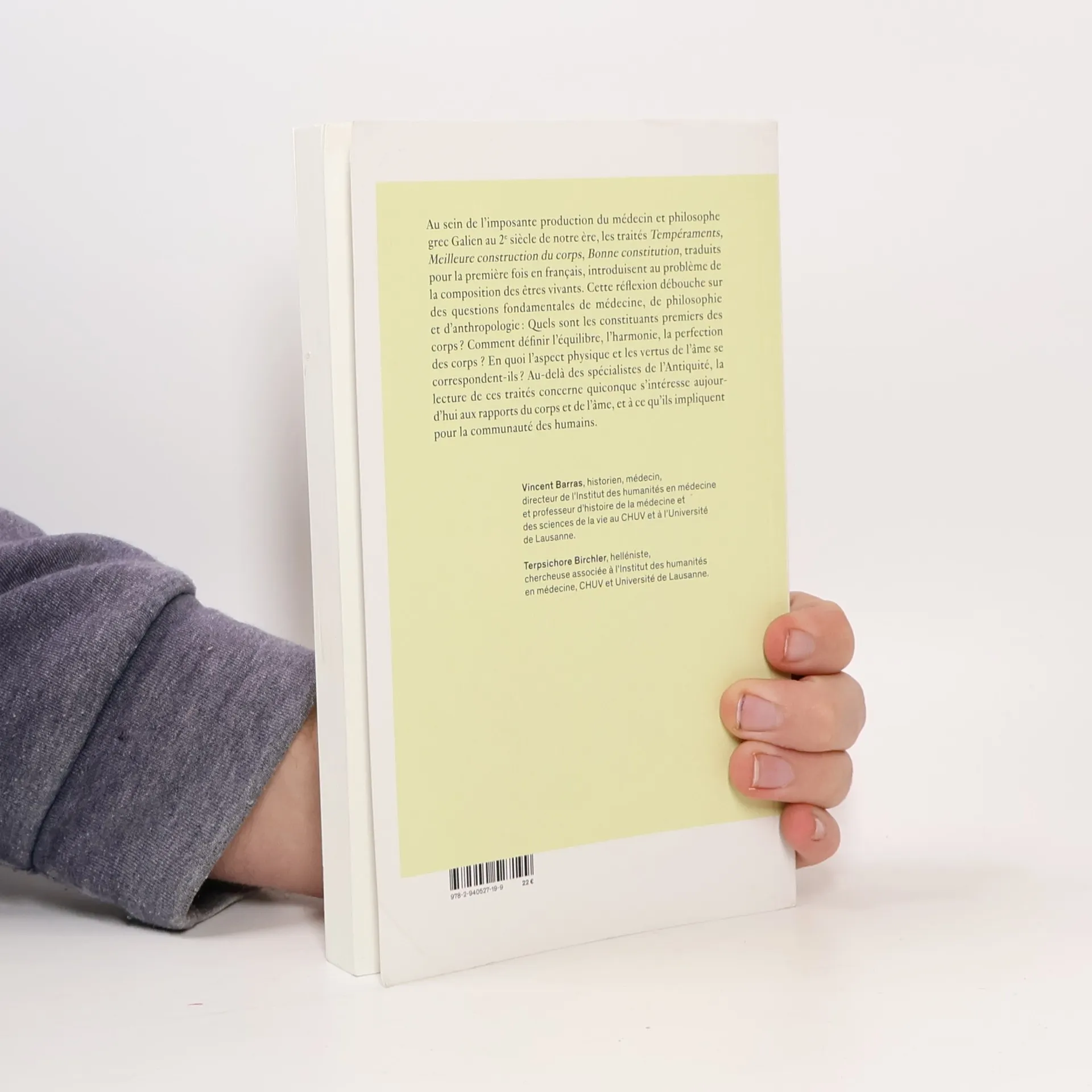 Au sein de l'imposante production du médecin et philosophe grec Galien au 2e siècle de notre ère, les traités Tempéraments, Meilleure construction du corps, Bonne constitution, traduits pour la première fois en français, introduisent au problème de la composition des corps vivants. Cette réflexion débouche sur des questions fondamentales de philosophie et d'anthropologie : Quels sont les constituants premiers des corps ? Comment en définir l'équilibre, l'harmonie, la perfection ? En quoi l'aspect physique et les vertus de l'âme se correspondent-ils ? Au-delà des spécialistes de l'Antiquité, la lecture de ces traités concerne quiconque s'intéresse aujourd'hui aux rapports du corps, de l'âme, et de la communauté humaine [Editeur].