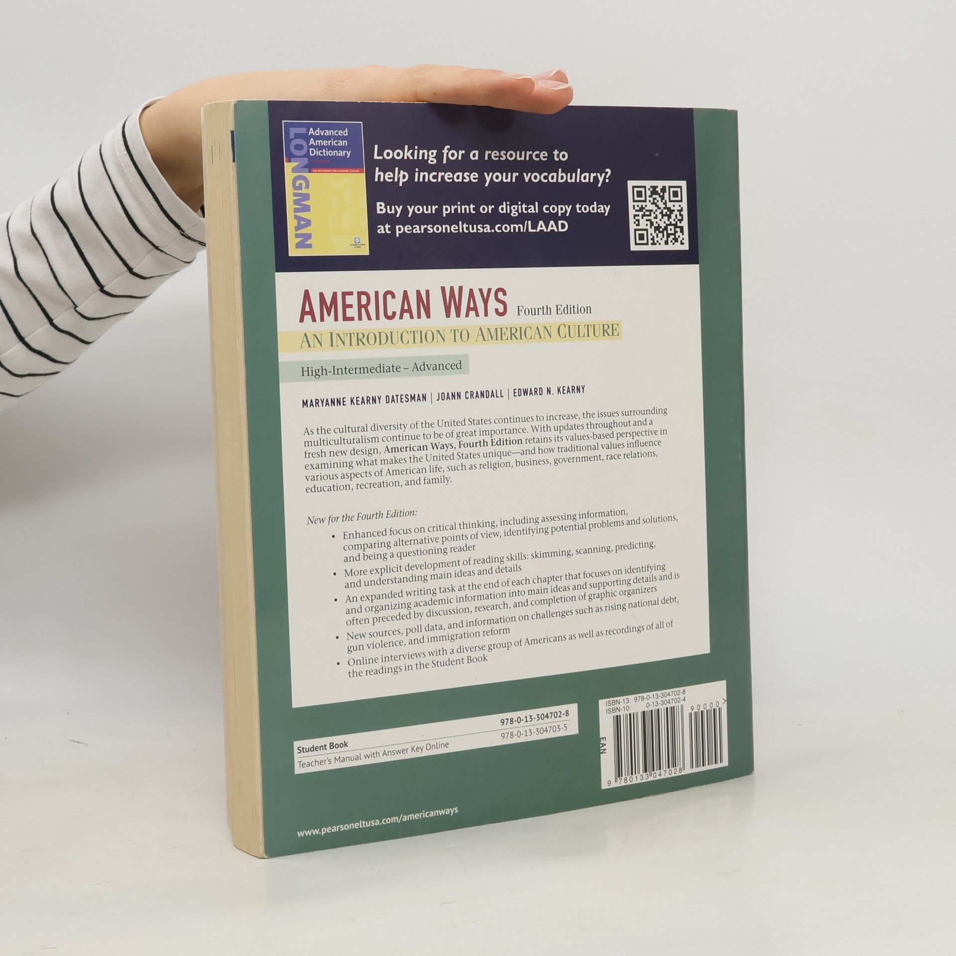 As the cultural diversity of the United States continues to increase, the issues surrounding multiculturalism continue to be of great importance. With updates throughout and a fresh, new design, the fourth edition of 'American Ways' retains its values-based perspective in examining what makes the US unique - and how traditional values influence various aspects of American life such as religion, business, government, race relations, education, recreation, and family.