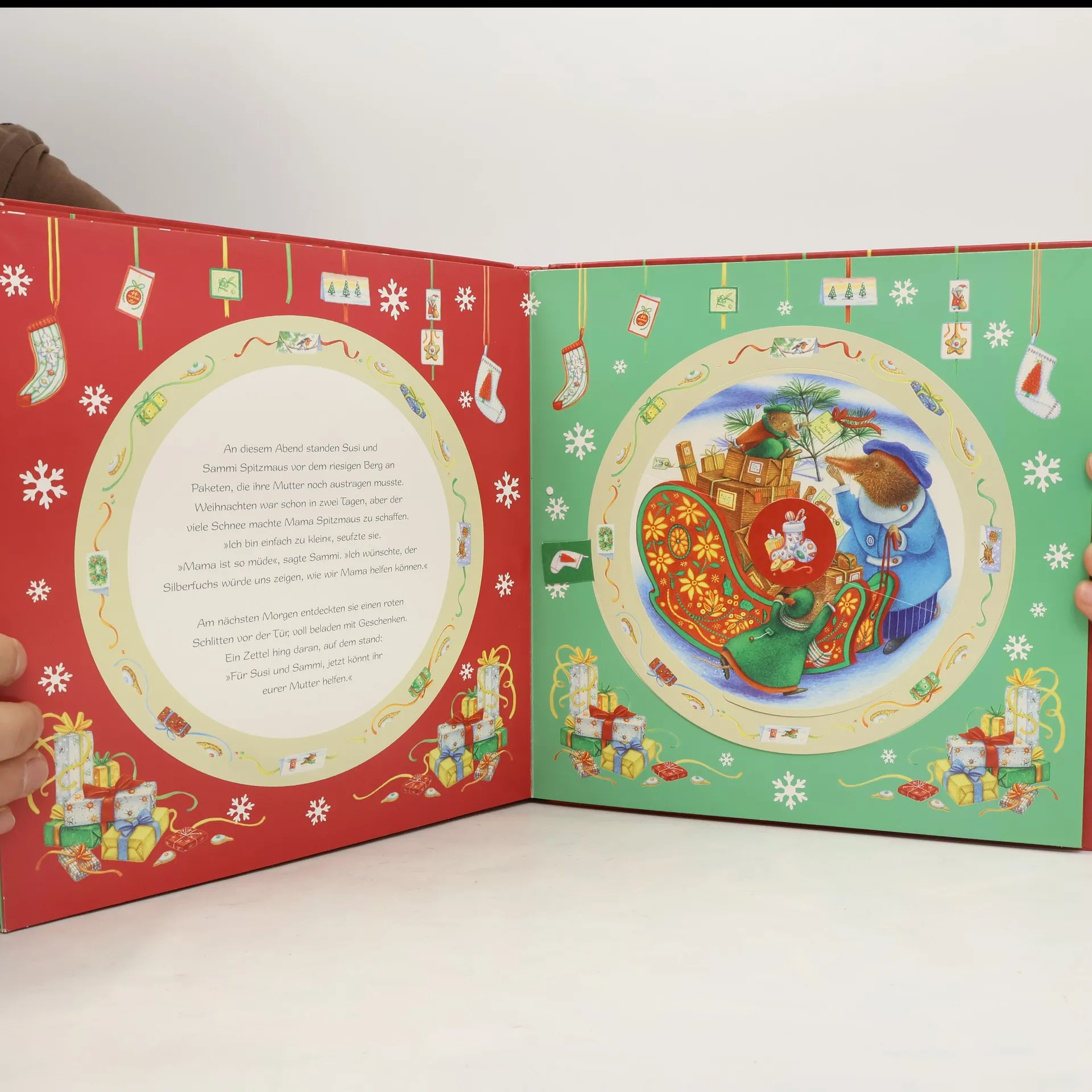Das erste Weihnachtsbuch, das Wünsche erfüllt! Zur Weihnachtszeit herrscht im kleinen Fuchswinkel reges Treiben: Alle Tiere sind unterwegs, um Geschenke einzukaufen und letzte Vorbereitungen zu treffen. Nur einer wacht über alle Aktivitäten: Der geheimnisvolle Silberfuchs. Wenn man immer schön brav ist und ihm einen Silberteller mit Süßigkeiten hinstellt, dann erfüllt er jeden Weihnachtswunsch – wie Elli Eichhörnchen, den kleinen Schneeschuhhasen-Geschwistern Krümel und Klecks oder Familie Biber. Was sich die Tiere wünschen? Das verrät die magische Drehscheibe, die auf jeder Seite einen Wunsch in Erfüllung gehen lässt.