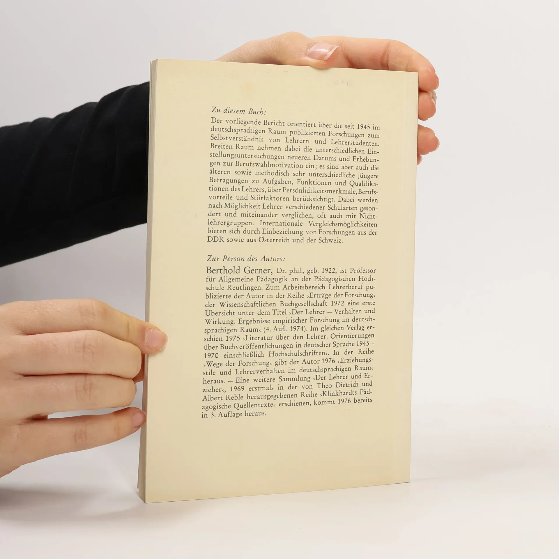 Erträge der Forschung - 45: Selbstverständnis von Lehrern, Berthold Gerner