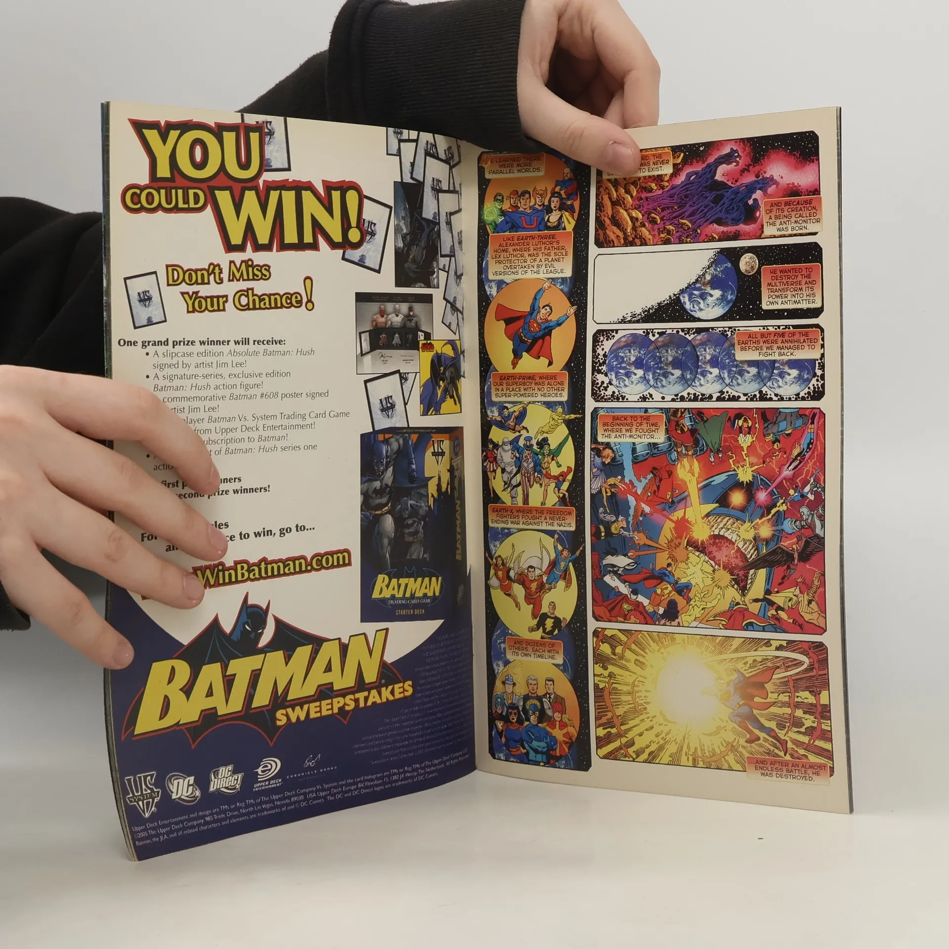 OMAC robots are rampaging, magic is dying, villains are uniting, and a war is raging in space. And in the middle of it all, a critical moment has divided Earth's three greatest heroes- Superman, Batman and Wonder Woman. It's the DCU's darkest day, and long-lost heroes from the past have returned to make things right in the universe...at any cost. Heroes will live, heroes will die, and the DCU will never be the same again! This re-issued hardcover collection includes the epic INFINITE CRISIS graphic novel, as well as its crossover stories from talents such as Bill Willingham (FABLES), Greg Rucka (WONDER WOMAN), Dave Gibbons (WATCHMEN) and more! Collects INFINITE CRISIS #1-6, ACTION COMICS #826, #829, ADVENTURES OF SUPERMAN #639, #642, COUNTDOWN TO INIFITE CRISIS #1, DAY OF VENGEANCE #1-6, DAY OF VENGEANCE- INFINITE CRISIS SPECIAL #1, JLA #115-119, INFINITE CRISIS SECRET FILES 2006, THE OMAC PROJECT #1-6, THE OMAC PROJECT- INFINITE CRISIS SPECIAL #1, RANN-THANAGAR WAR #1-6, RANN-THANAGER WAR- INFINITE CRISIS SPECIAL #1, SUPERMAN #216, #219, VILLIANS UNITED #1-6, VILLAINS UNITED- INFINITE CRISIS SPECIAL #1 and WONDER WOMAN #219.