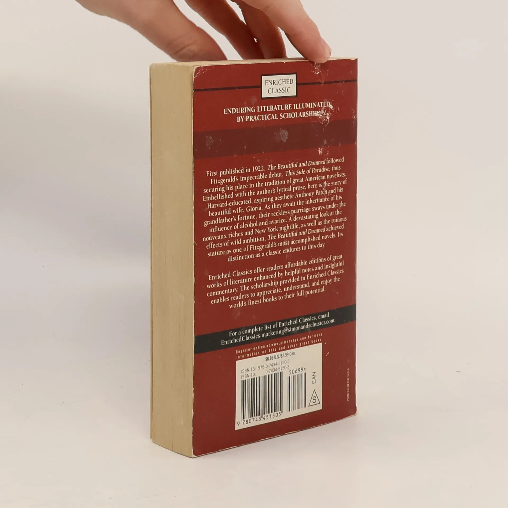 First published in 1922, The Beautiful and the Damned followed Fitzgerald's impeccable debut, This Side of Paradise, thus securing his place in the tradition of great American novelists. Embellished with the author's lyrical prose, here is the story of Harvard-educated, aspiring aeshete Anthony Patch and his beautiful wife, Gloria. As they await the inheritance of his grandfather's fortune, their reckless marriage sways under the influence of alcohol and avarice. A devastating look at the nouveaux riches and New York nightlife, as well as the ruinous effects wild ambiion, The Beautiful and the Damned achieved stature as one of Fitzgerzld's most accomplished novels. Its distinction as a classic endures to this day. Pocket Book's Enriched Classics present the great works of world literature enhaced for the contemporary reader. Special features include critical perspectives, suggestions for further read, and a unique visual essay composed of period photographs that help bring every word to life.