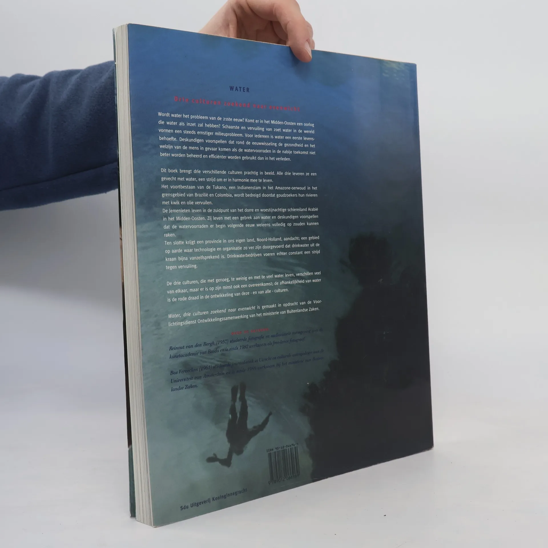 Fotoboek met begeleidende teksten waarin getoond wordt hoe de Indianen in het Amazone-gebied, de bewoners van Jemen en de Nederlanders in Noord-Holland met water omgaan.