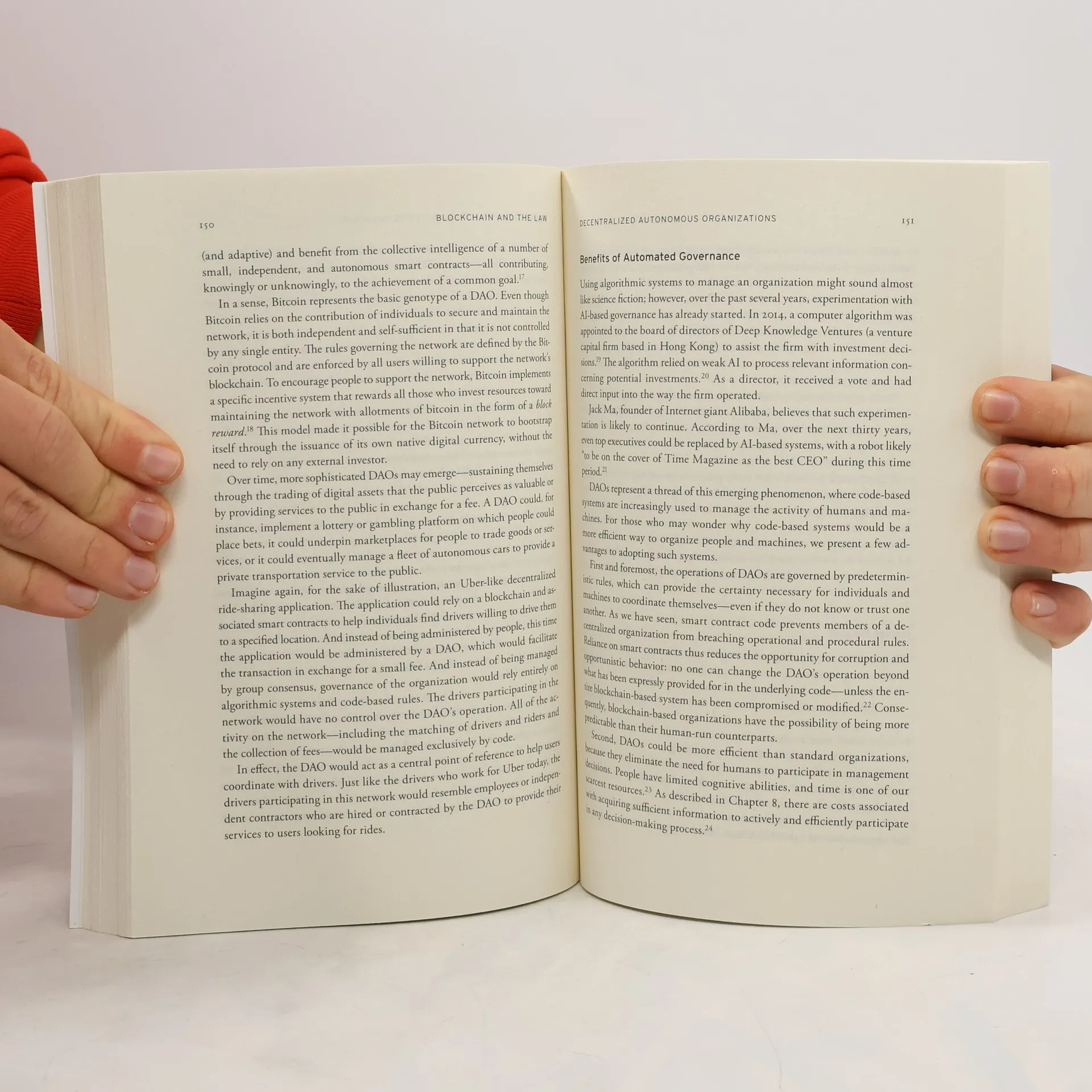 Blockchain technology enables the creation of decentralized currencies, decentralized applications powered by smart contracts, self-executing digital agreements, and intelligent assets that can be controlled over the Internet. Blockchains also enable the development of new governance systems with more democratic or participatory decision-making, and decentralized (autonomous) organizations that can operate over a network of computers without any human intervention. These applications have led many to compare the blockchain to the Internet, with accompanying predictions that this technology will shift the balance of power away from centralized authorities in the field of communications, business, and even politics or law. Blockchain and the Law explores the benefits and drawbacks of this emerging decentralized technology and argues that its widespread deployment will lead to expansion of what we term lex cryptographia: rules administered through self-executing smart contracts...