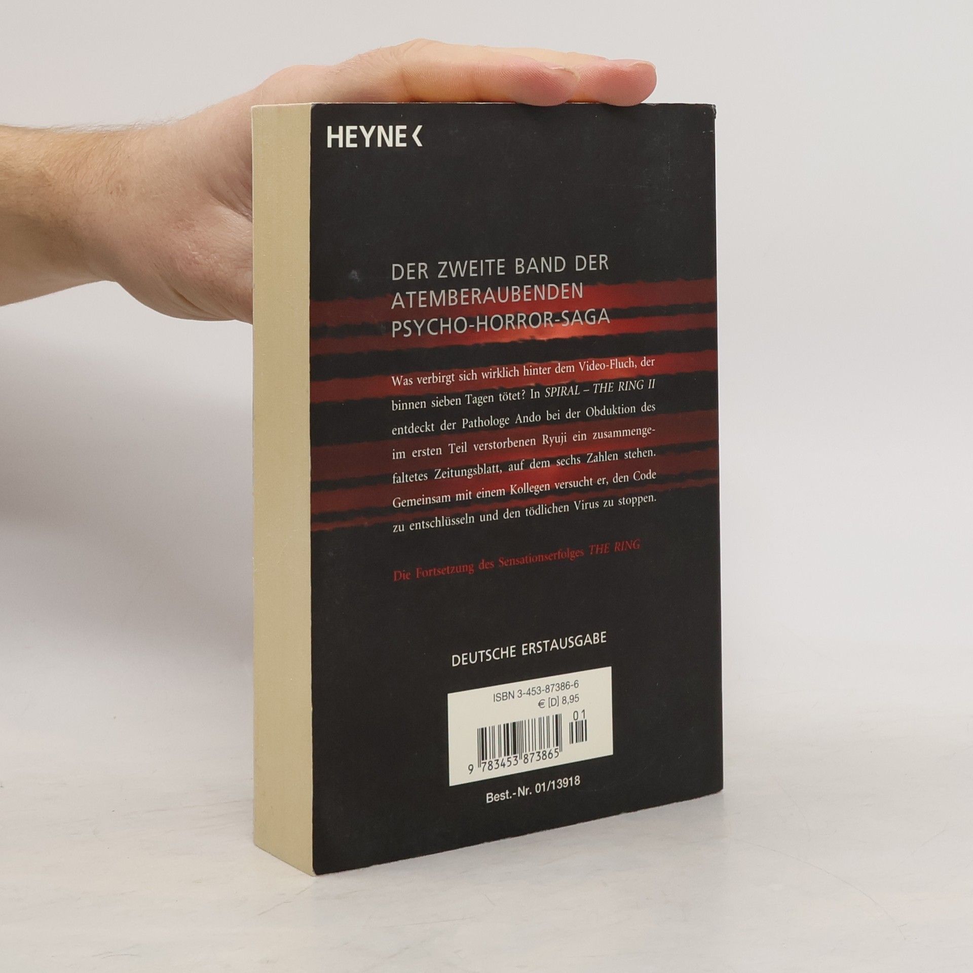 Was verbirgt sich wirklich hinter dem Video-Fluch, der binnen sieben Tagen tötet? In Spiral The Ring II entdeckt der Pathologe Ando bei der Obduktion des im ersten Teil verstorbenen Ryuji ein zusammengefaltetes Zeitungsblatt, auf dem sechs Zahlen stehen. Gemeinsam mit einem Kollegen versucht er den Code zu entschlüsseln. Der neue Meister der Spannung Japans Antwort auf Stephen King!
