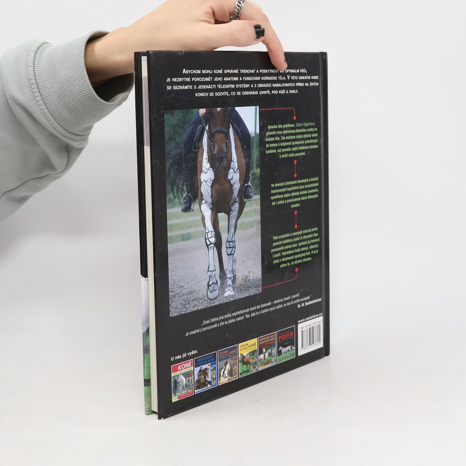 Rady pro trénink, ježdění i péči o koně, od autorky publikace Koně a jejich pohyb. Abychom mohli koně správně trénovat a poskytnout mu optimální péči, je nezbytné porozumět jeho anatomii a fungování koňského těla. V této unikátní knize se seznámíte s jedenácti tělesnými systémy a z obrázků namalovaných přímo na živých koních se dozvíte, co se odehrává uvnitř, pod kůží a svaly. Ve dvanácti přehledně členěných a bohatě ilustrovaných kapitolách jsou srozumitelně vysvětleny nejen základy koňské anatomie, ale i práce a provázanost všech tělesných soustav. Tato originální a nanejvýš názorná kniha pomůže každému jezdci či chovateli lépe porozumět svému koni, správně jej trénovat i jezdit. Výsledkem bude zdravý, výkonný, silný a všestranně spokojený kůň, který bude zpětně dělat radost zase svému majiteli.