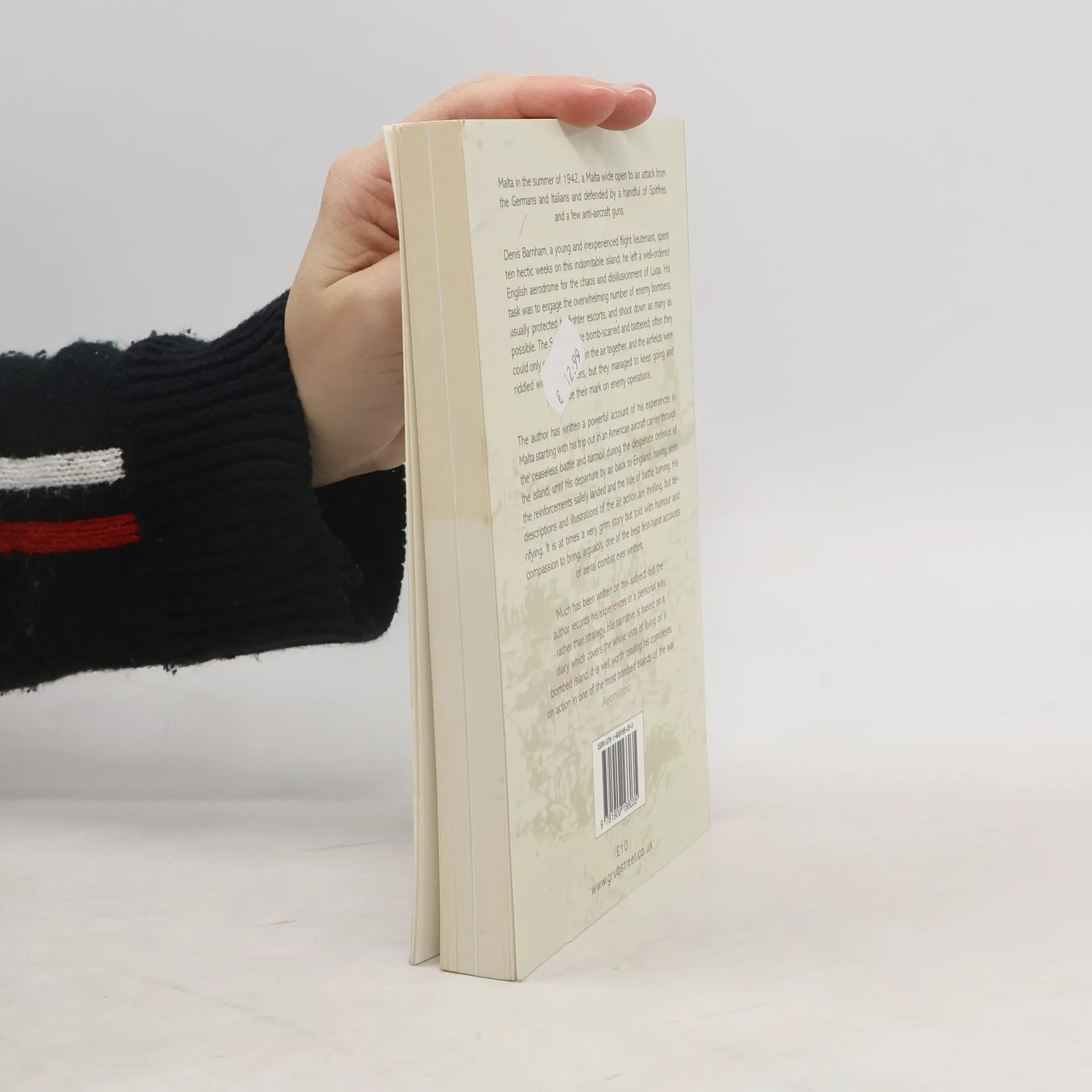 Malta in the summer of 1942, a Malta wide open to air attack from the Germans and Italians and defended by a handful of Spitfires and a few anti-aircraft guns. Denis Barnham, a young and inexperienced flight lieutenant, spent ten hectic weeks on this indomitable island; he left a well-ordered English aerodrome for the chaos and disillusionment of Luqa. His task was to engage the overwhelming number of enemy bombers, usually protected by fighter escorts, and shoot down as many as possible. The Spitfires were bomb-scarred and battered; often they could only get two or three in the air together and the airfields were riddled with bomb craters, but they managed to keep going and they made their mark on enemy operations. The author has written a powerful account of his experiences in Malta starting with his trip out in an American aircraft carrier through the ceaseless battle and turmoil during the desperate defense of the island, until his departure by air back to England, having seen the reinforcements safely landed and the tide of battle turning. His descriptions and illustrations of the air action are thrilling, but terrifying. It is at times a very grim story but told with humor and compassion to bring, arguably, one of the best firsthand accounts of aerial combat ever written.