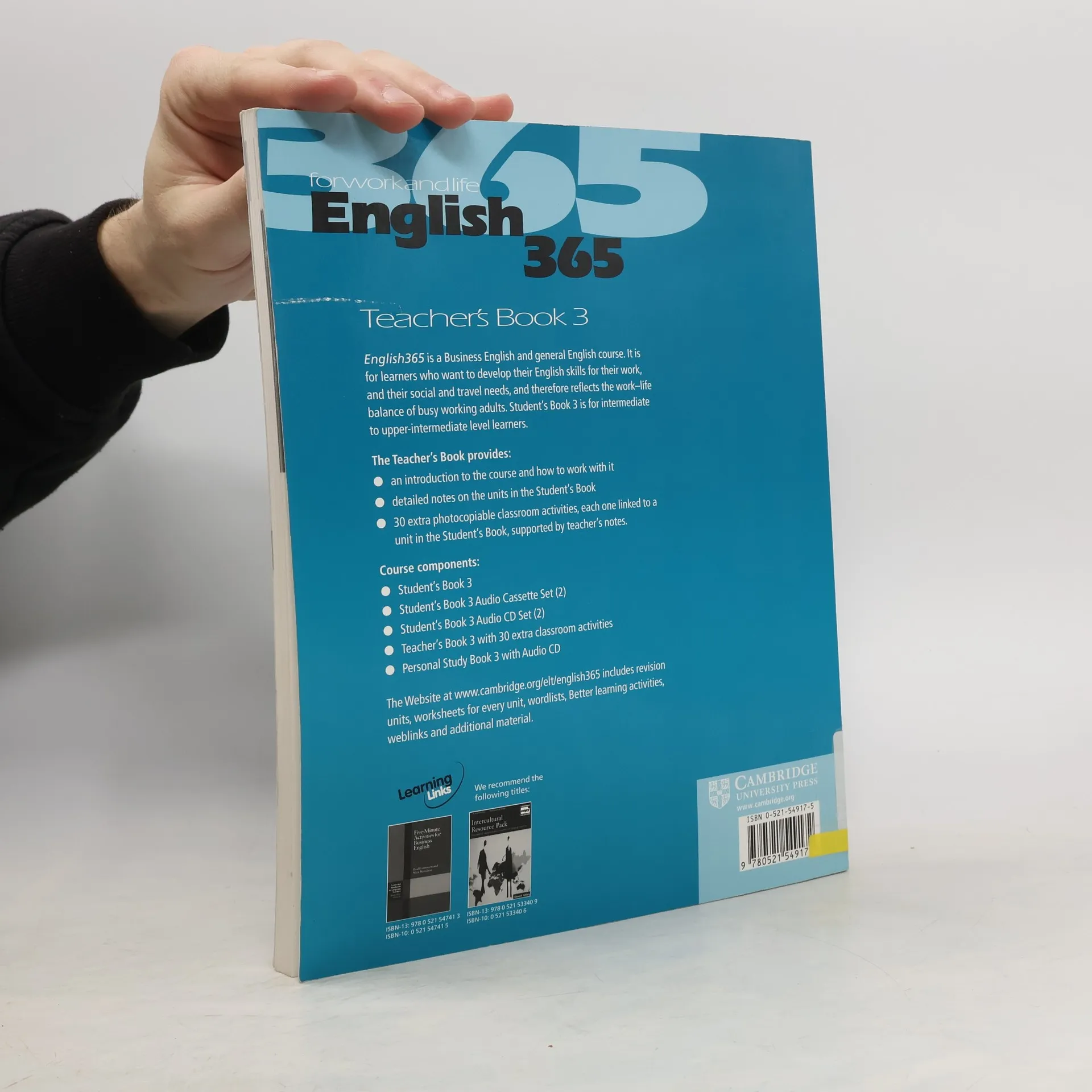 English365 is a three-level course in Business and general English. The Teacher's Book provides an introduction to the course and how to work with it as well as detailed notes on each Student's Book unit. It also includes photocopiable learner-training activities designed to improve the effectiveness of students' learning and encourage learner-autonomy, plus 30 extra photocopiable class activities.