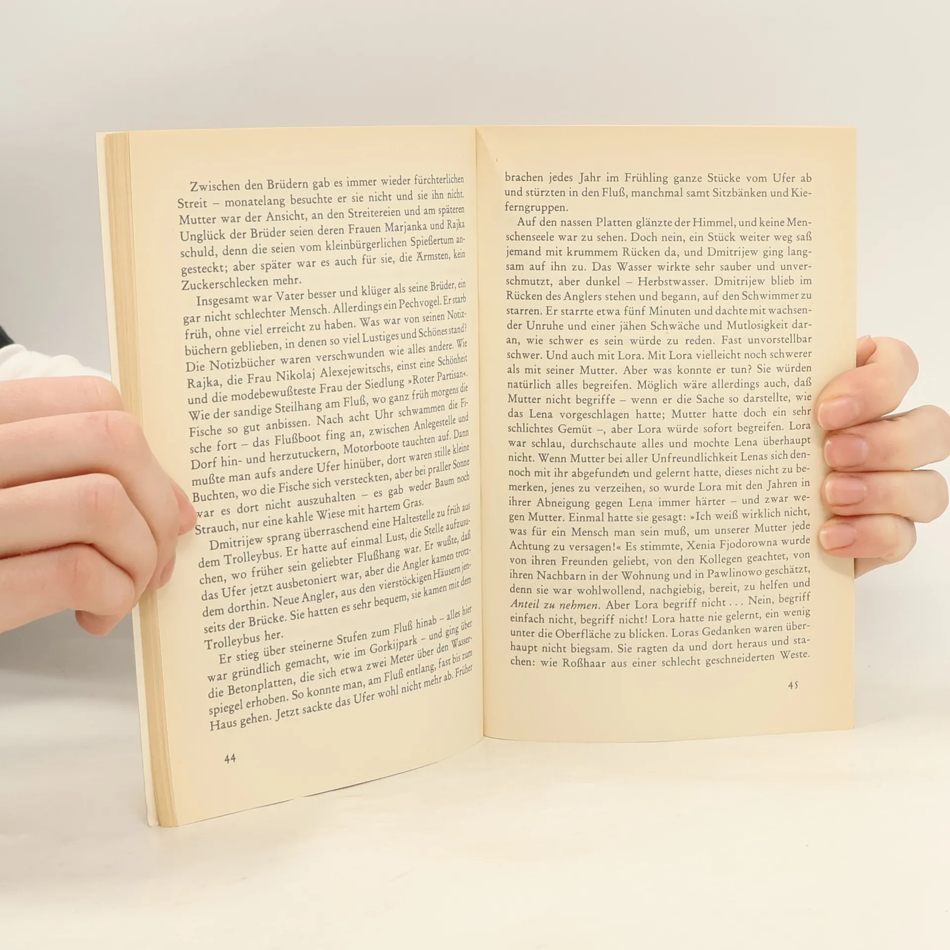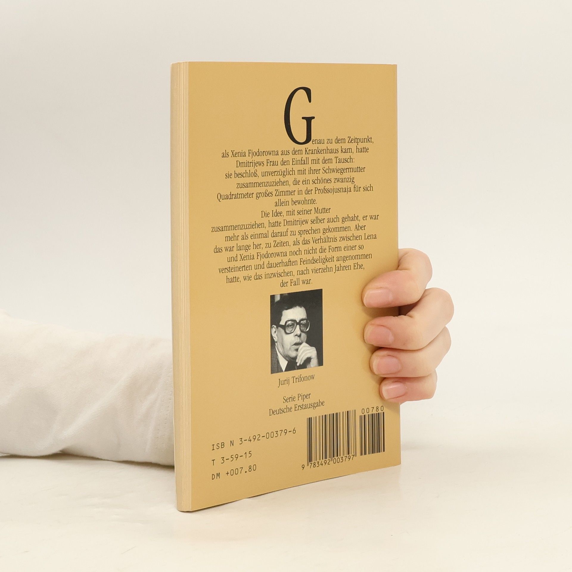 Genau zu dem Zeitpunkt, als Xenia Fjodorowna aus dem Krankenhaus kam, hatte Dmitrijews Frau den Einfall mit dem Tausch: sie beschloß, unverzüglich mit ihrer Schwiegermutter zusammenzuziehen, die ein schönes zwanzig Quadratmeter großes Zimmer in der Profssojusnaja für sich allein bewohnte. Die Idee, mit seiner Mutter zusammenzuziehen, hatte Dmitrijew selber auch gehabt, er war mehr als einmal darauf zu sprechen gekommen. Aber das war lange her, zu Zeiten, als das Verhältnis zwischen Lena und Xenia Fjodorowna noch nicht die Form einer so versteinerten und dauerhaften Feindseligkeit angenommen hatte, wie das inzwischen, nach vierzehn Jahren Ehe, der Fall war.