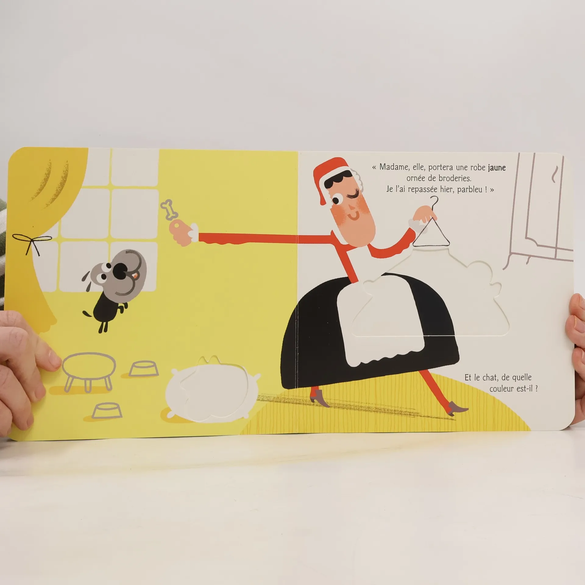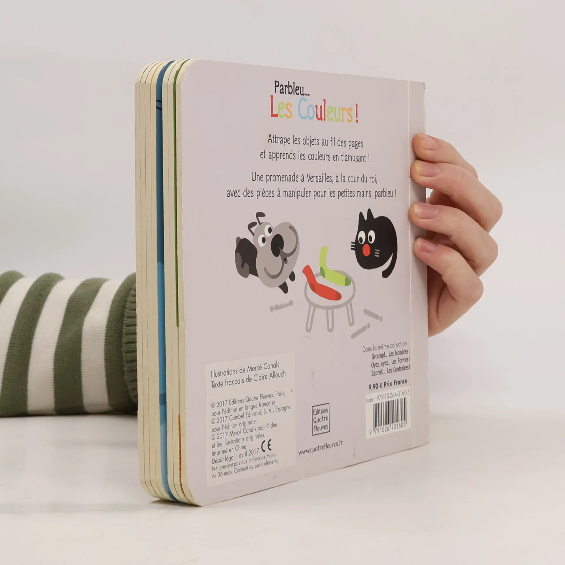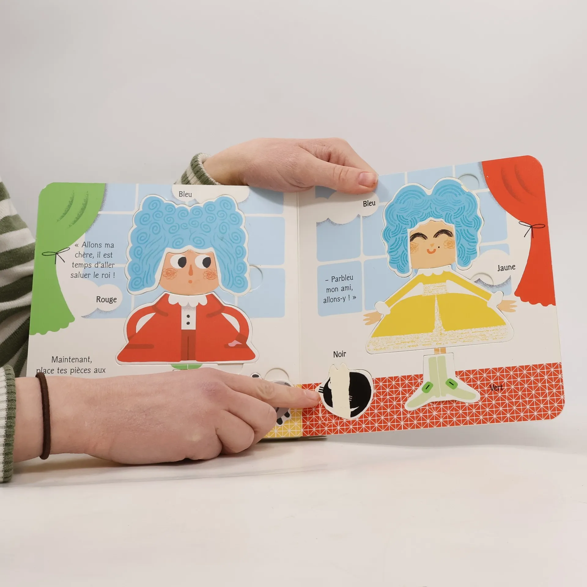 Attrape les objets au fil des pages et apprends les couleurs en t'amusant ! Une promenade à Versailles, à la cour du roi, avec des pièces à manipuler pour les petites mains, parbleu !