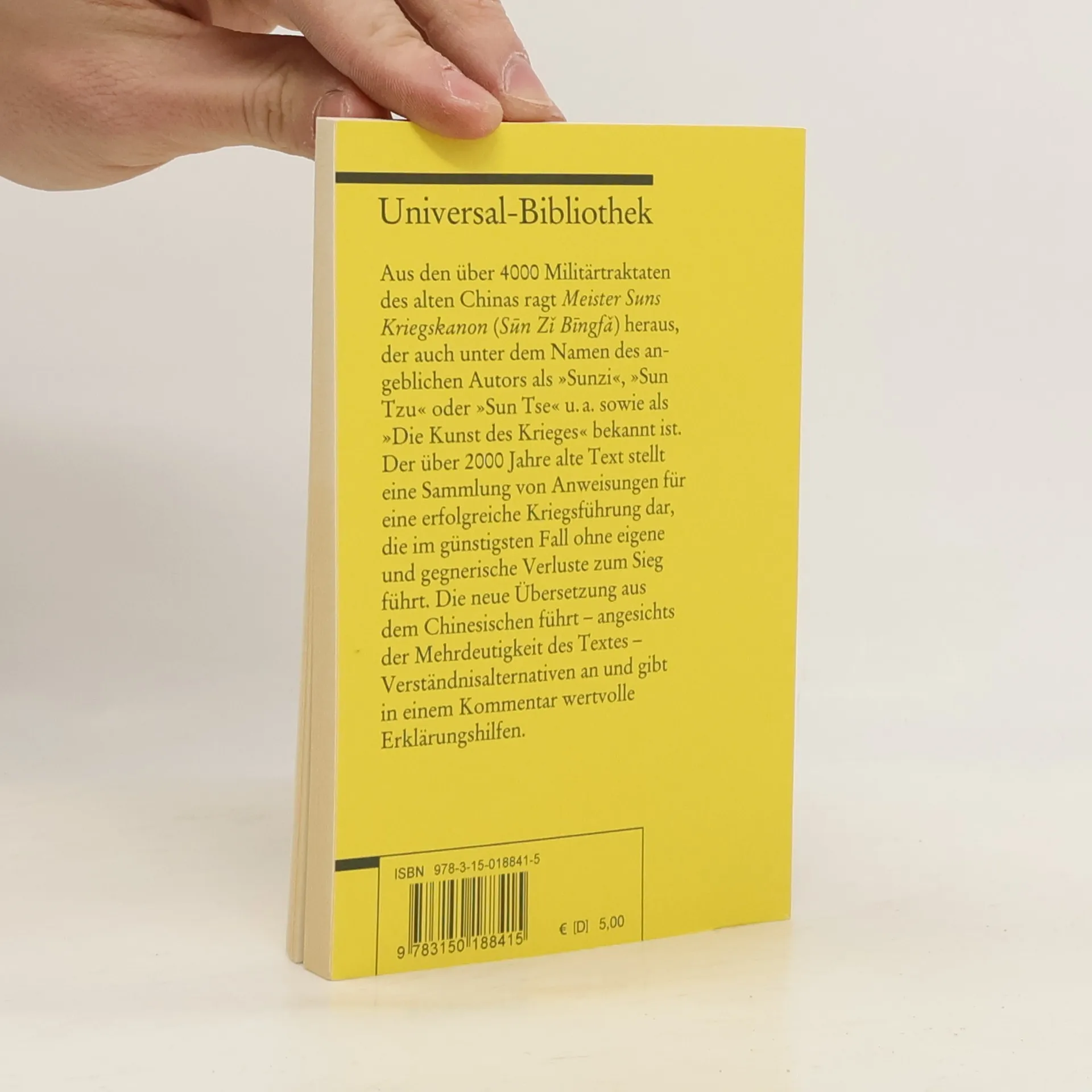 Aus den über 4000 Militärtraktaten des alten Chinas ragt »Meister Suns Kriegskanon« (»Sūn Zǐ Bīngfá«) heraus, der auch unter dem Namen des angeblichen Autors als »Sunzi«, »Sun Tzu« oder »Sun Tse« u. a. sowie als »Die Kunst des Krieges« bekannt ist. Der über 2000 Jahre alte Text stellt eine Sammlung von Anweisungen für eine erfolgreiche Kriegsführung dar, die im günstigsten Fall ohne eigene und gegnerische Verluste zum Sieg führt. Die neue Übersetzung aus dem Chinesischen führt – angesichts der Mehrdeutigkeit des Textes – Verständnisalternativen an und gibt in einem Kommentar wertvolle Erklärungshilfen.