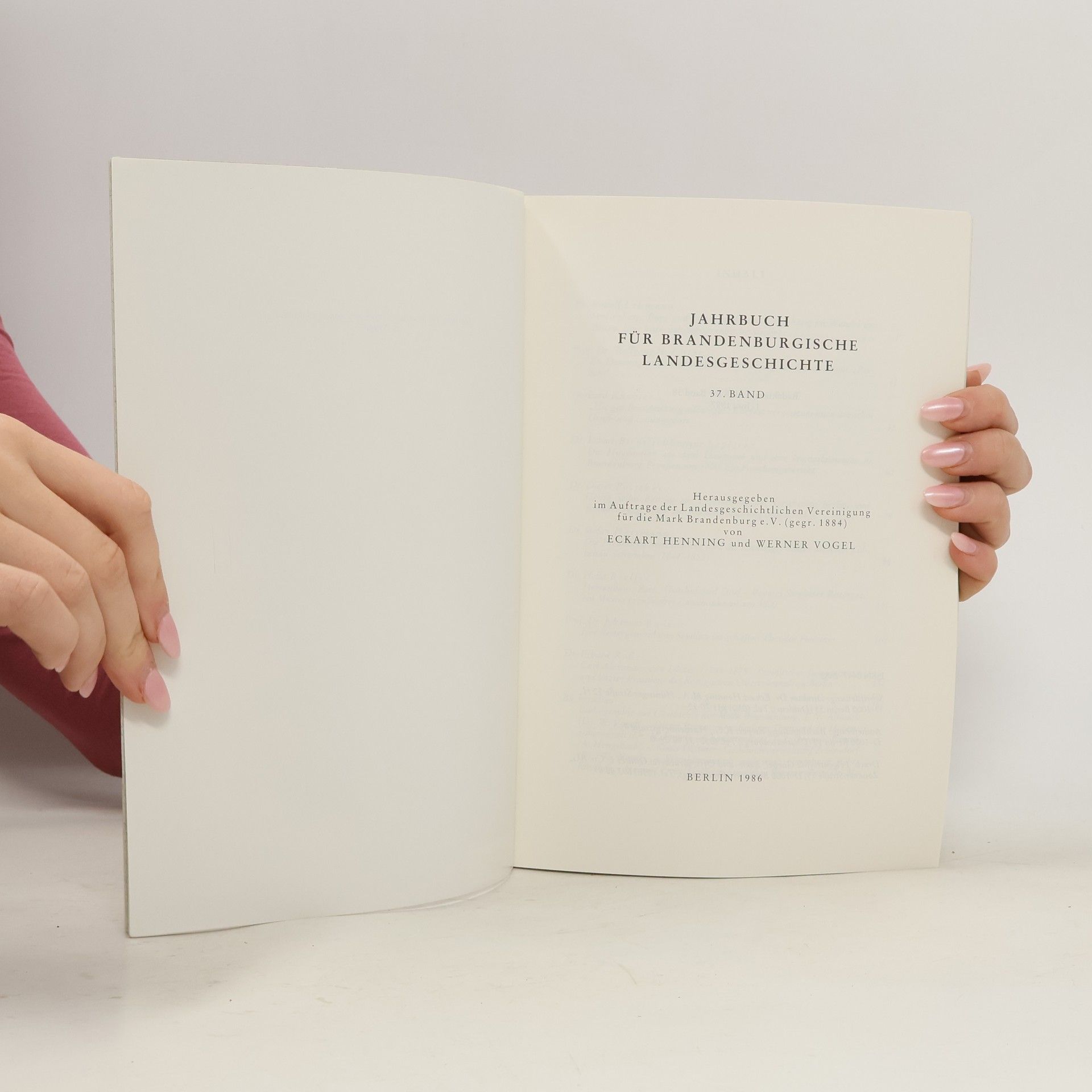 Jahrbuch für brandenburgische Landesgeschichte. 37. Band, Eckart Henning, Werner Vogel
