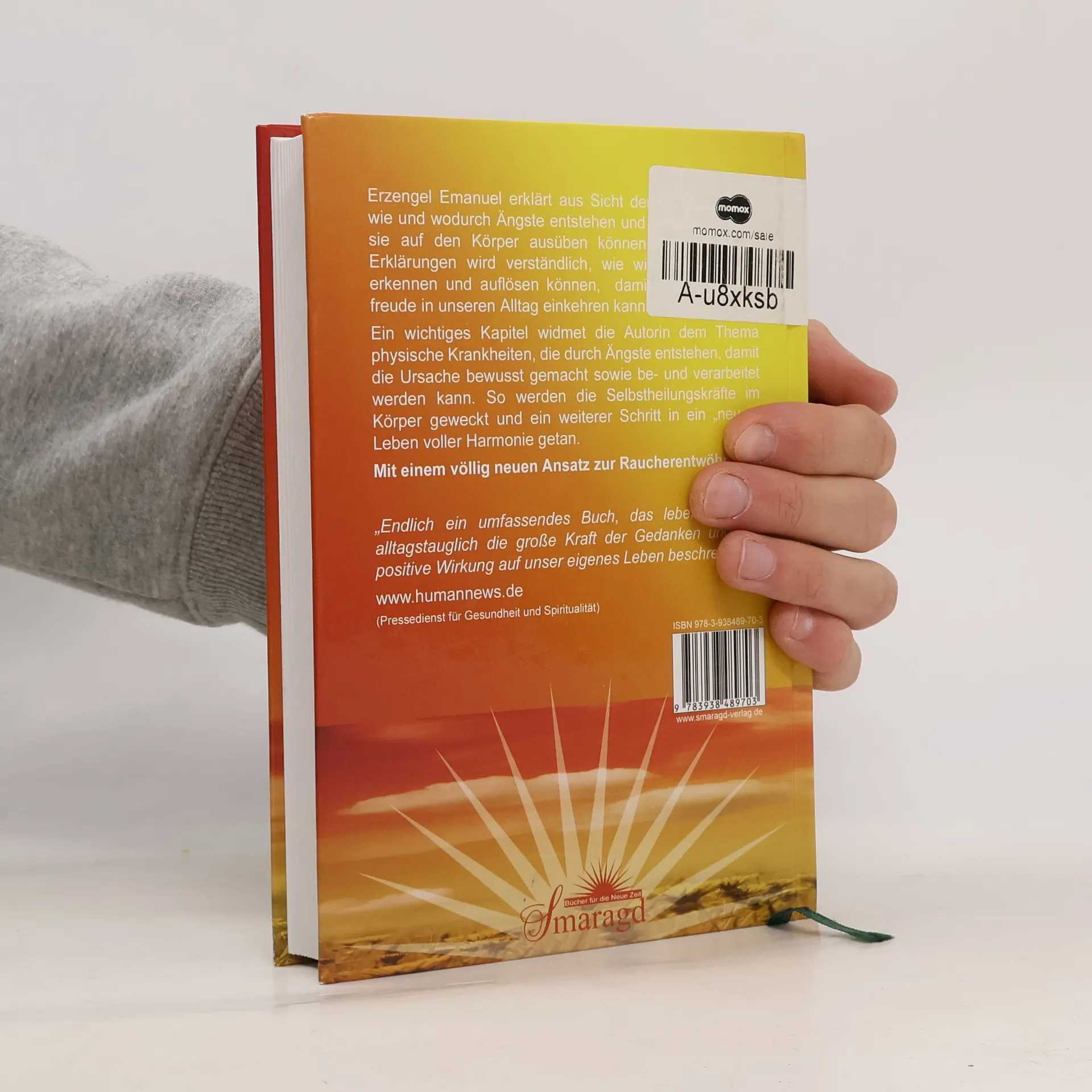 Erzengel Emanuel erklärt aus Sicht der Geistigen Welt, wie und wodurch Ängste entstehen und welchen Einfluss sie auf den Körper ausüben können. Anhand dieser Erklärungen wird verständlich, wie wir unsere Ängste erkennen und auflösen können, damit wieder Lebensfreude in unseren Alltag einkehren kann. Ein wichtiges Kapitel widmet die Autorin dem Thema physische Krankheiten, die durch Ängste entstehen, damit die Ursache bewusst gemacht sowie be- und verarbeitet werden kann. So werden die Selbstheilungskräfte im Körper geweckt und ein weiterer Schritt in ein „neues“ Leben voller Harmonie getan. Konkrete Lösungsvorschläge und -beispiele helfen aus der Spirale der Angst heraus, damit Menschen, deren Leben bisher von Angst bestimmt war, wieder in die Leichtigkeit des Seins finden können. Mit einem völlig neuen Ansatz zur Raucherentwöhnung. „Endlich ein umfassendes Buch, das lebensnah und alltagstauglich die große Kraft der Gedanken und ihre positive Wirkung auf unser eigenes Leben beschreibt.“ humannews. de (Pressedienst für Gesundheit und Spiritualität)