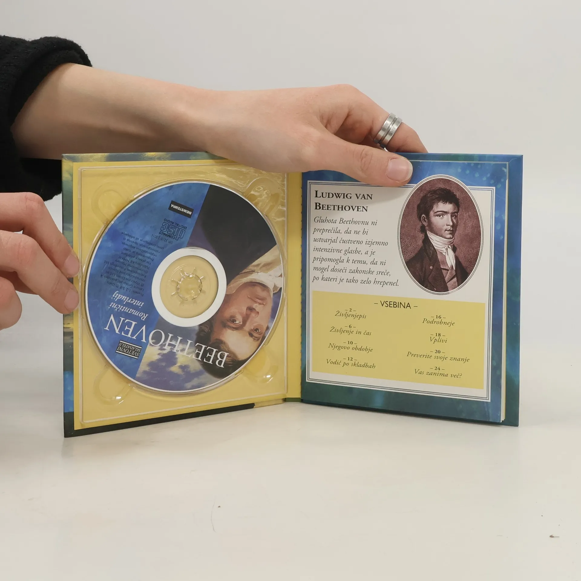 V knjižici je kratek zapis o skladatelju in obdobju njegovega življenja. Tekstovno gradivo je skromno. Poudarek je na glasbenih zapisih na CD plošči.