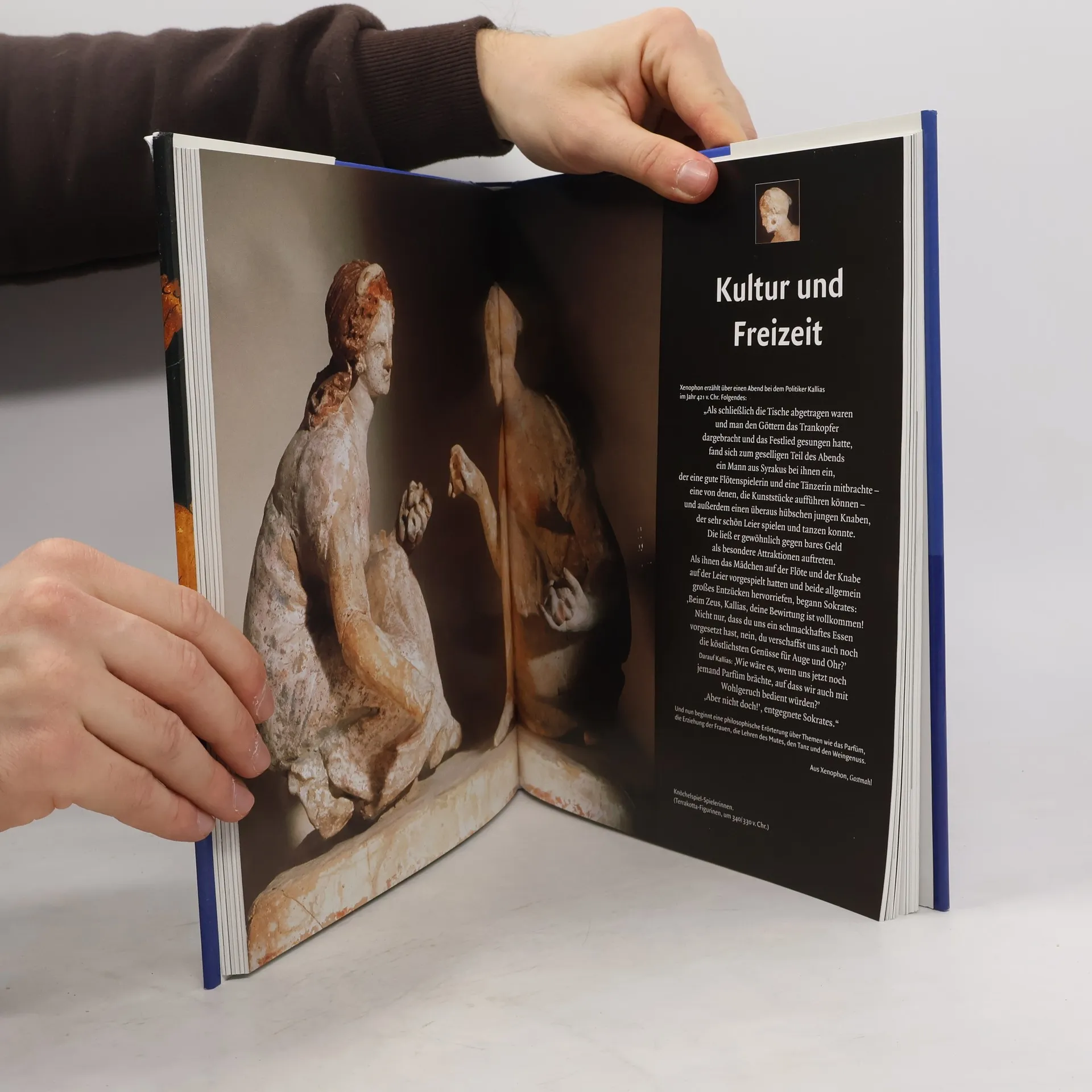 Wie wohnte man in Sparta und was aßen die Priesterinnen der Athene? Wie erzog der Tempeldiener von Delphi seine Kinder? Welche Kleider trug Helena und worüber lachte Alexander der Große? Mit spannenden, informativen Texten und erstklassigen Abbildungen erzählen die Autoren vom Wohnen und Genießen, von Kleidung und Mode, Liebe und Erotik, Arbeit und Handel, Religion und Glauben bis hin zu Bildung, Kunst und Unterhaltung. Erstmals wird so Kultur- und Alltagsleben des alten Griechenland in einem populären Sachbildband präsentiert. Historische Gestalten werden menschlich und öffnen dem Leser einen ganz neuen Blick auf die Vergangenheit dieser antiken Hochkultur.