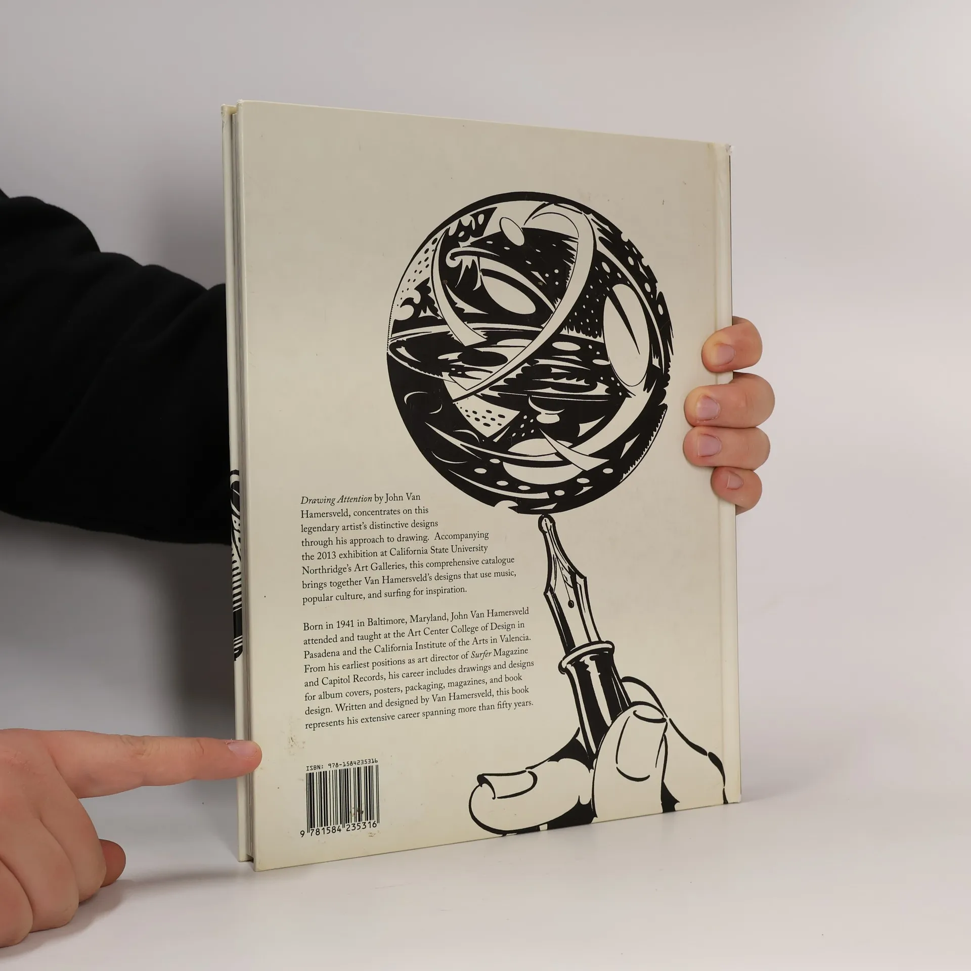 'Drawing Attention' concentrates on this artist's distinctive designs through this approach to drawing. It brings together his designs that use music, popular culture, and surfing as inspiration.