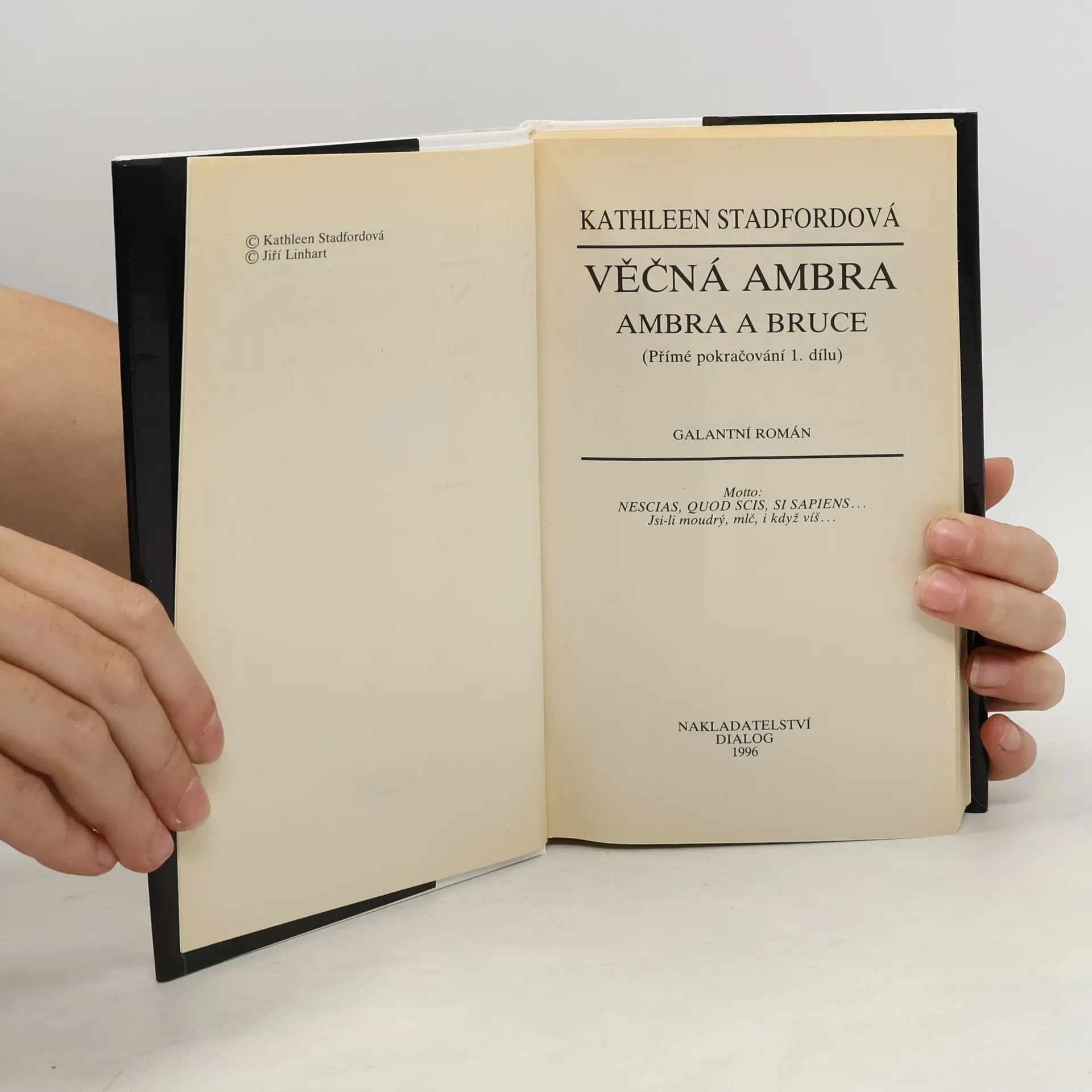 Podtitul: Přímé pokračování 1. dílu Věčná Ambra, proslulý román angličanky Kathleen Winsorové, již několik desetiletí okouzluje čtenáře po celém světě. Muži i ženy, mladí i zkušení čtenáři, všichni propadají strhujícímu ději i romantické atmosféře a s napětím sledují osudy venkovské dívky, která se díky svým půvabům a chytrosti dokáže vymanit z chudoby a jednotvárnosti a vystoupat po společenském žebříčku mezi anglickou dvorní smetánku. Veleslavný román ale také přitahoval spisovatele, kteří chtěli k slavnému bestselleru připojit své vlastní pokračování. Dvě napsala Joan Seymourová, ale málokdo ví, že první přímé pokračování nesmrtelného milostného příběhu pochází z pera neznámé anglické spisovatelky Kathleen Stadfordové. Ta k proslulé literární epopeji připojila svou originální verzi Ambra a Bruce, v níž rozvíjí děj právě v okamžiku, kde první původní kniha končí. Bruce odjíždí za moře a zoufalá, milující a nezlomná Ambra se vydává za svou vidinou lásky. Děje a příběhy, které prožívá, budete číst a rozkoší a radostí - příběh nekončí, nesmrtelná Ambra žije dál...