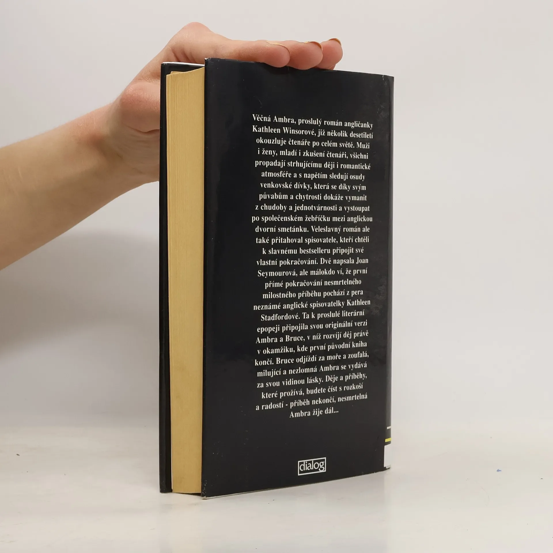 Podtitul: Přímé pokračování 1. dílu Věčná Ambra, proslulý román angličanky Kathleen Winsorové, již několik desetiletí okouzluje čtenáře po celém světě. Muži i ženy, mladí i zkušení čtenáři, všichni propadají strhujícímu ději i romantické atmosféře a s napětím sledují osudy venkovské dívky, která se díky svým půvabům a chytrosti dokáže vymanit z chudoby a jednotvárnosti a vystoupat po společenském žebříčku mezi anglickou dvorní smetánku. Veleslavný román ale také přitahoval spisovatele, kteří chtěli k slavnému bestselleru připojit své vlastní pokračování. Dvě napsala Joan Seymourová, ale málokdo ví, že první přímé pokračování nesmrtelného milostného příběhu pochází z pera neznámé anglické spisovatelky Kathleen Stadfordové. Ta k proslulé literární epopeji připojila svou originální verzi Ambra a Bruce, v níž rozvíjí děj právě v okamžiku, kde první původní kniha končí. Bruce odjíždí za moře a zoufalá, milující a nezlomná Ambra se vydává za svou vidinou lásky. Děje a příběhy, které prožívá, budete číst a rozkoší a radostí - příběh nekončí, nesmrtelná Ambra žije dál...