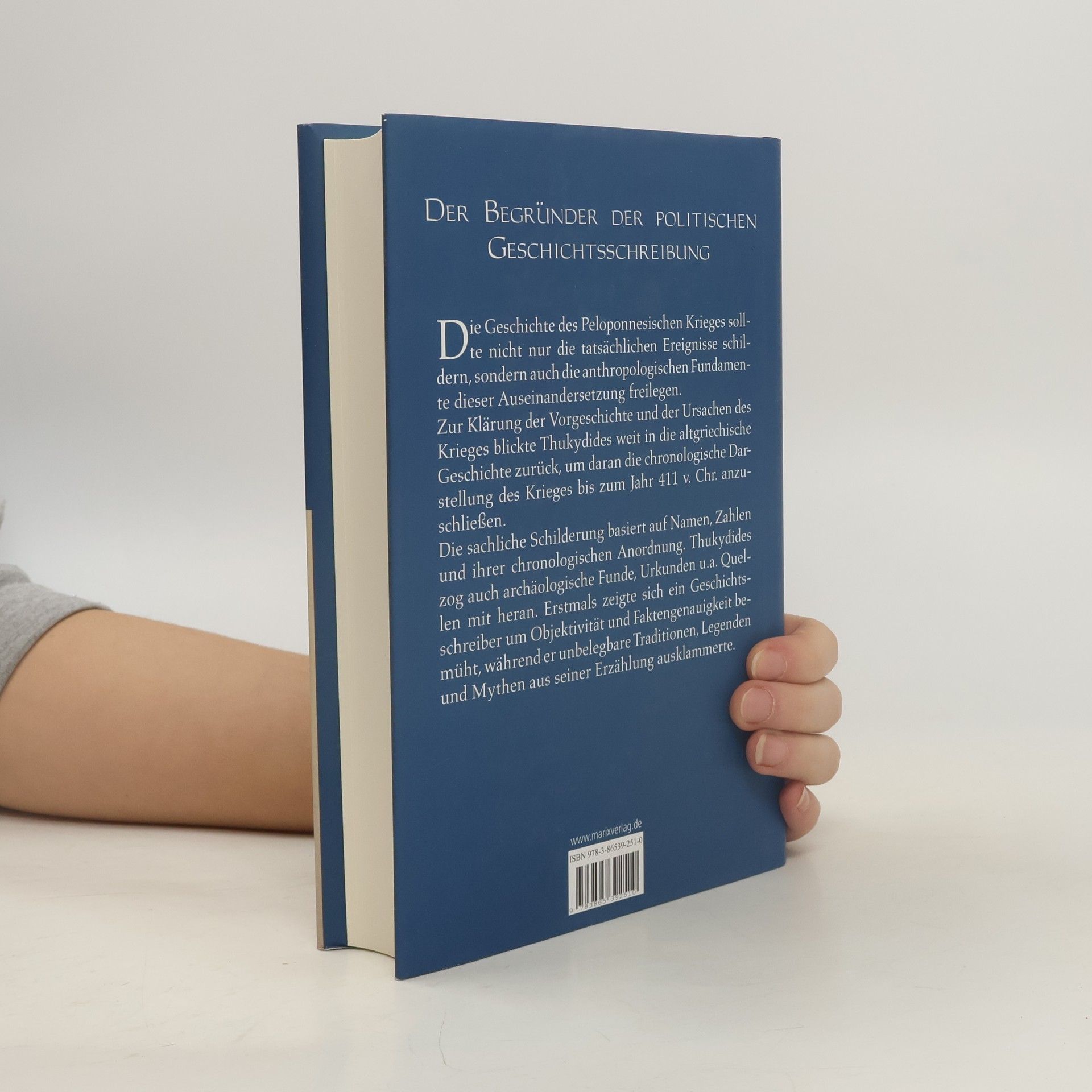„Die Tatsachen dagegen von dem, was im Lauf des Krieges vor sich ging, glaubte ich nicht nach Auskünften zufälliger Gewährsmänner, auch nicht nach eigenem Ermessen schildern zu dürfen, sondern indem ich alles, was ich teils selbst miterlebte, teils von anderen erfuhr, mit möglichster Genauigkeit im Einzelnen nachgeprüft habe. (…), aber wenn diejenigen, die das Vergangene genau erkennen wollen und das Zukünftige, wie es wohl gemäß der menschlichen Natur so oder ähnlich sich wiederholen wird, mein Werk nützlich finden, so wird das genügen. Als einen Besitz von dauerndem Wert, nicht für den Augenblickssieg in einem Vortragswettkampf habe ich es geschrieben.“ (1,22)Damit hat Thukydides das Credo seiner "Geschichte des Peloponnesischen Krieges" bereits genauestens umrissen: zu schildern, was „tatsächlich geschah“, und zugleich Ursachenforschung zu betreiben. Neben der Faktenchronik, die von der altgriechischen Antike bis zum Jahr 411 v. Chr. reicht, gelang ihm eine geschichtsphilosophische Reflexion, die in ihren wesentlichen Zügen noch in die heutige Zeit gespiegelt werden kann. Denn in der menschlichen Natur und den politischen Gesetzmäßigkeiten gründen die Mechanismen des Krieges – damals wie heute – und der Zweifel des Thukydides an der sittlichen Entwicklungsfähigkeit des Menschen ist noch immer nicht ausgeräumt.